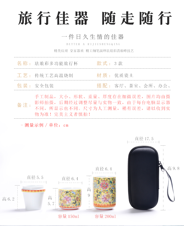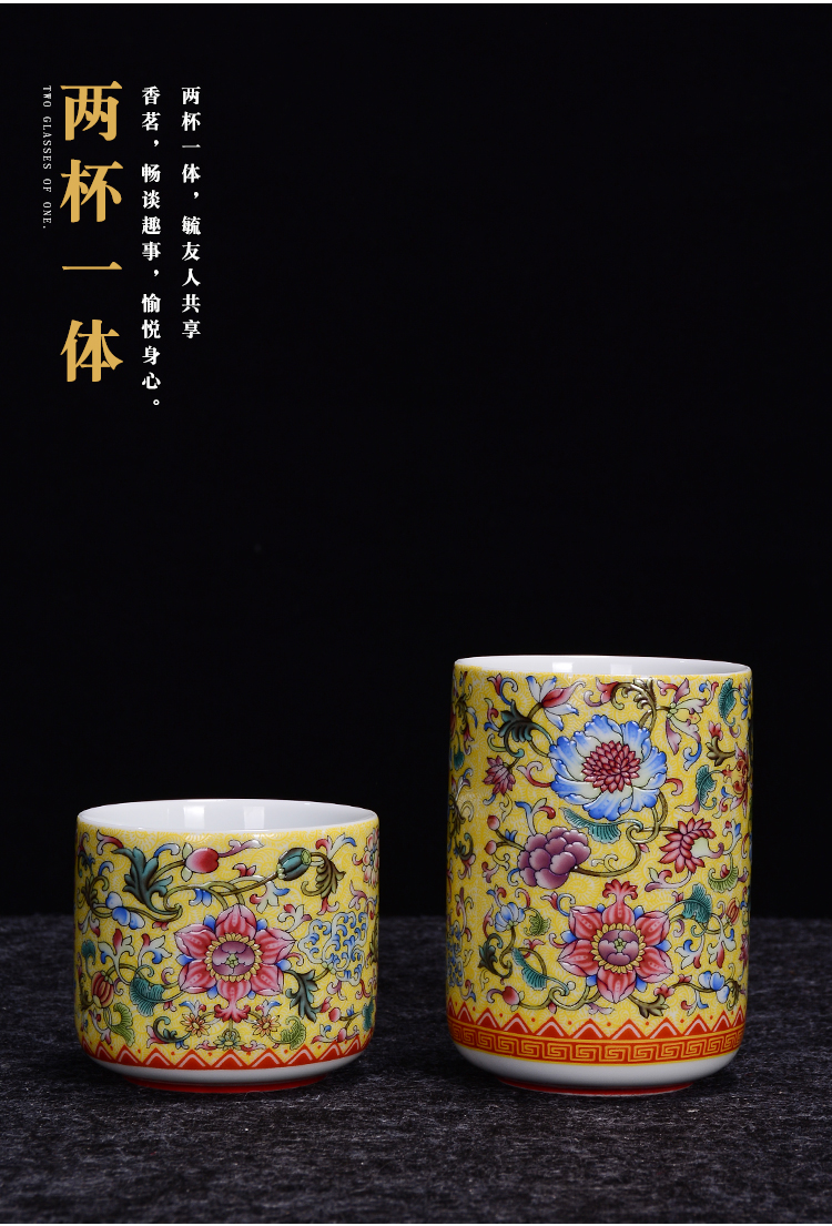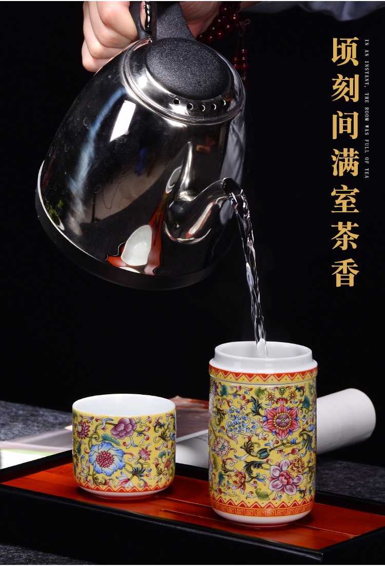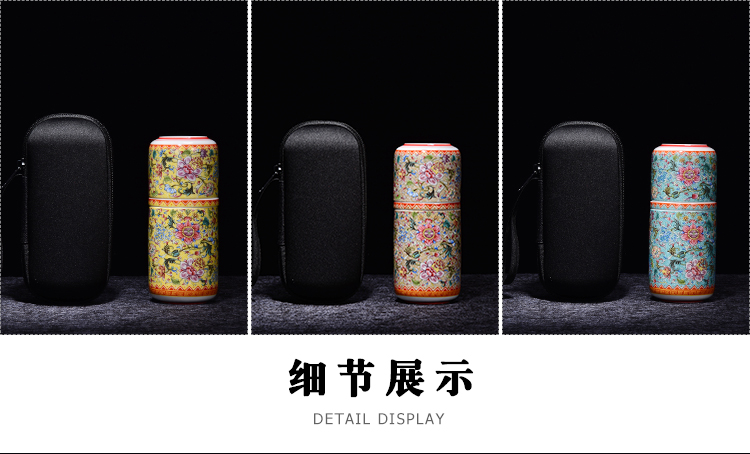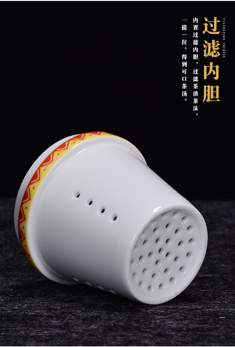 陶生活琺瑯彩便攜旅行功夫茶具陶瓷過濾帶蓋快客杯整套泡茶杯套裝1入