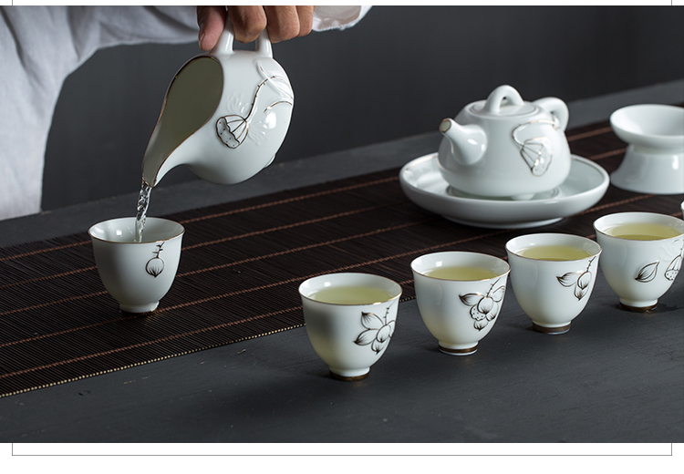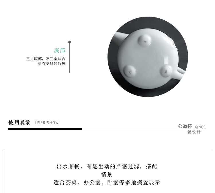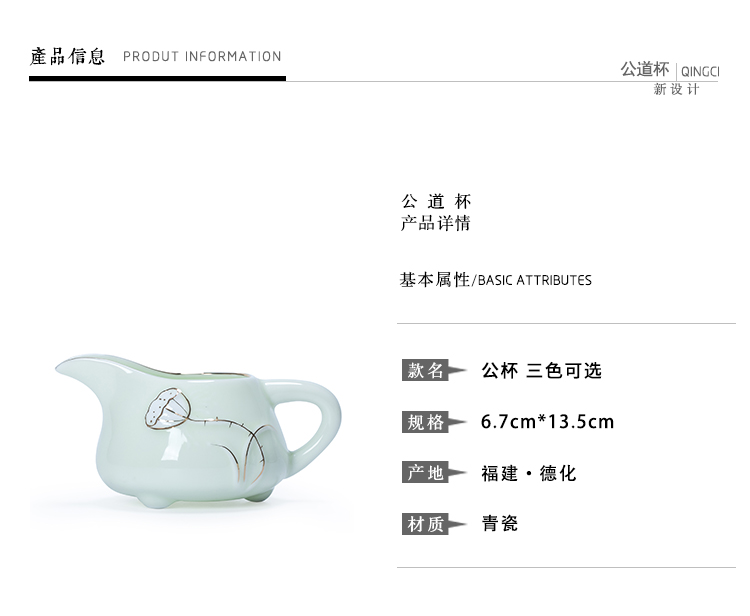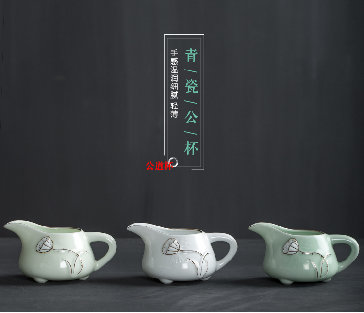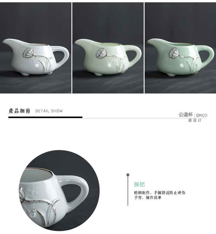 陶生活 陶瓷影青瓷手繪描金公道杯功夫茶具茶海分茶器公杯勻杯器1入