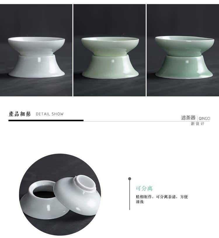 陶生活 青瓷茶葉茶漏 茶濾過濾器 功夫茶具濾網 配件茶器陶瓷隔器1入