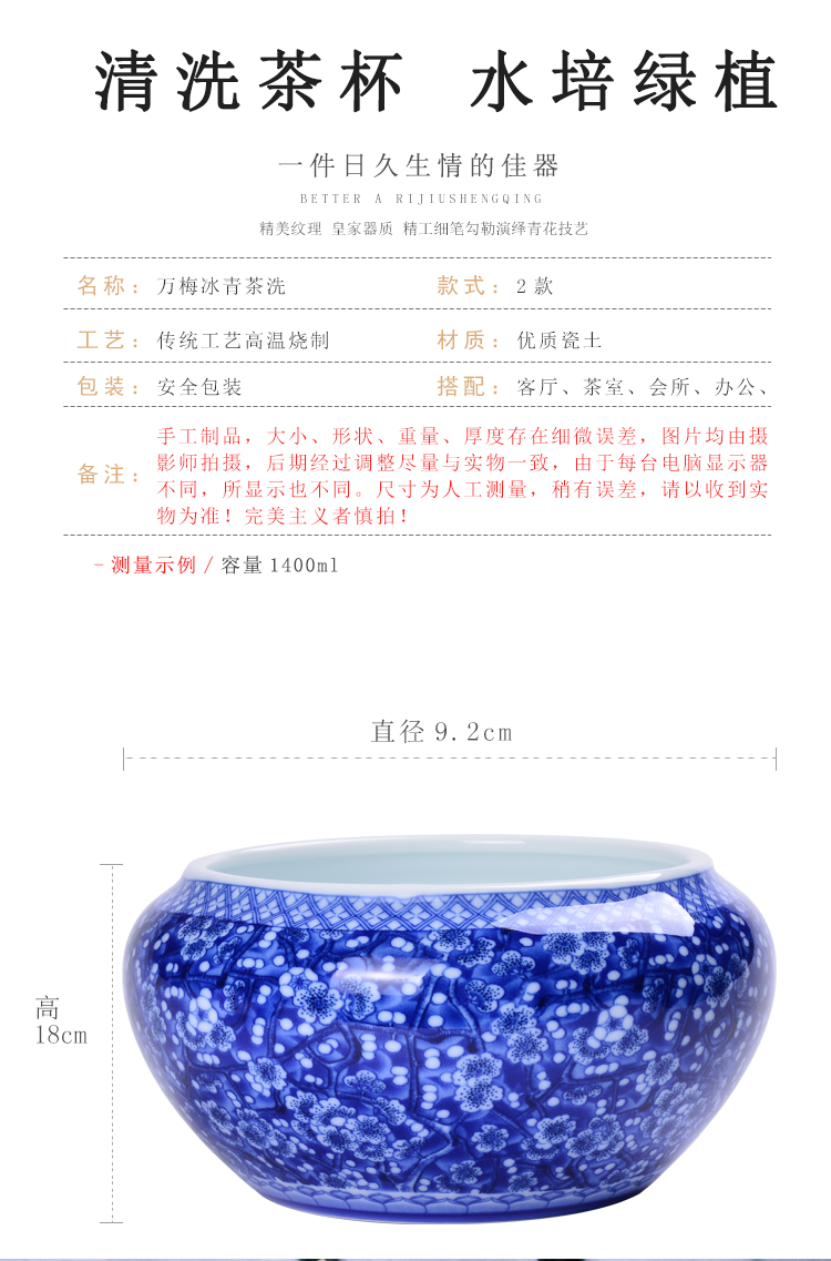 陶生活大號茶洗景德鎮青花滿彩陶瓷水盂茶具茶道杯洗水洗筆洗茶洗1入