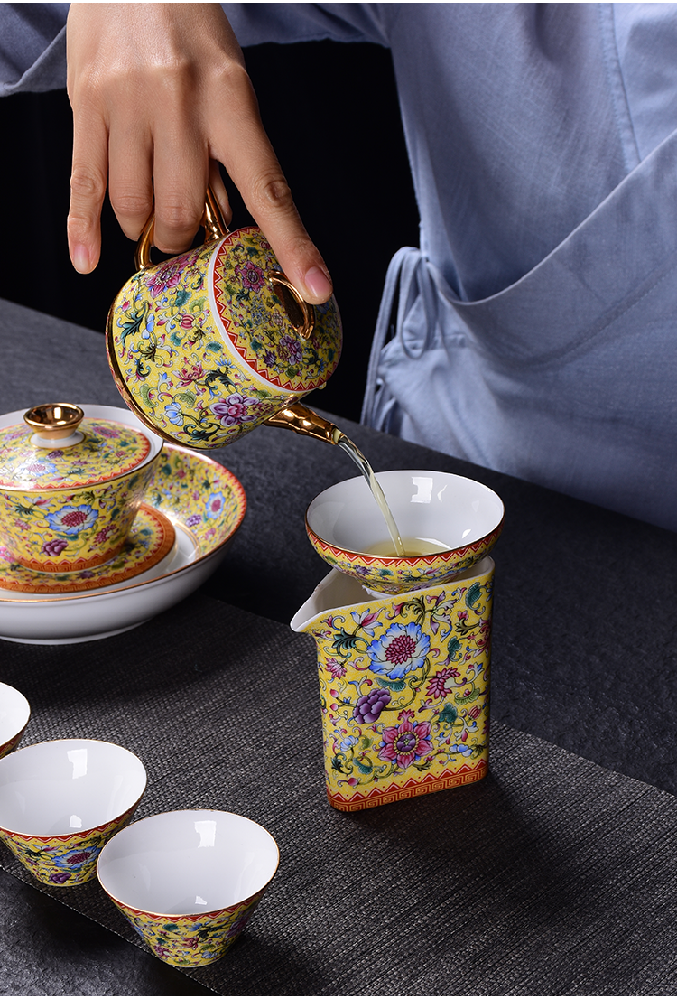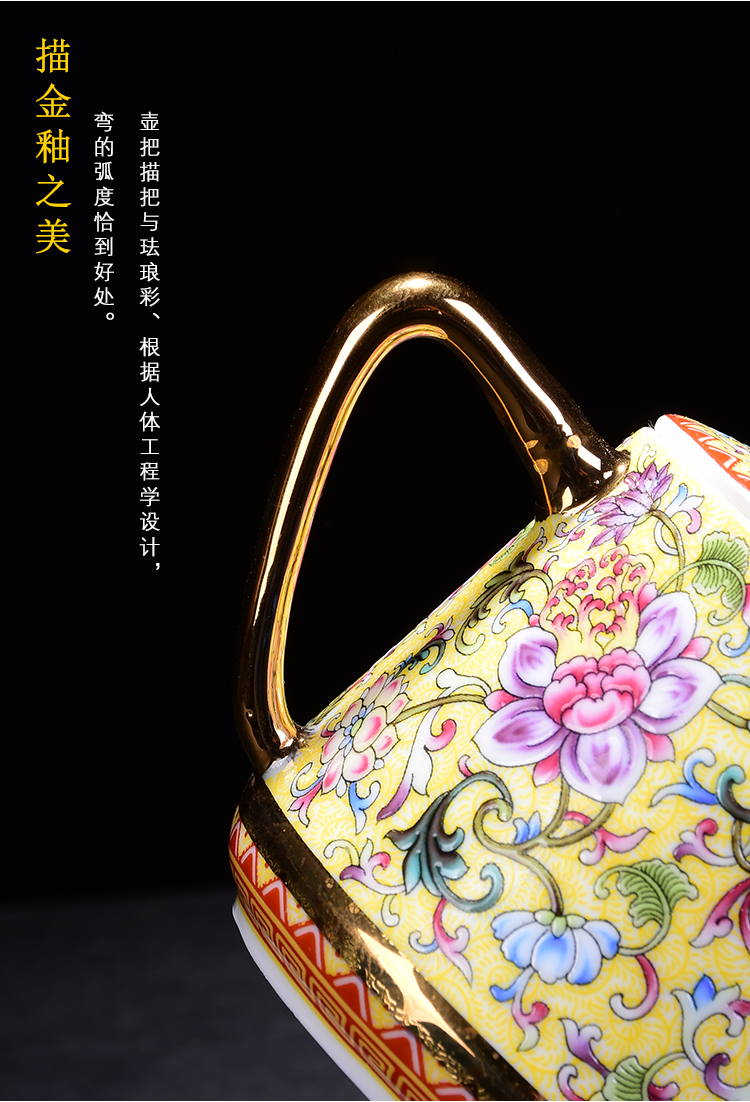 陶生活 琺瑯彩茶具 功夫茶壺陶瓷手繪藍地琺瑯彩描金纏枝蓮泡茶壺1入