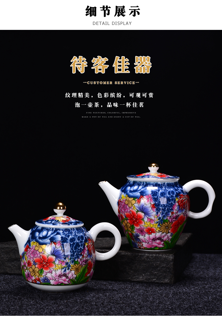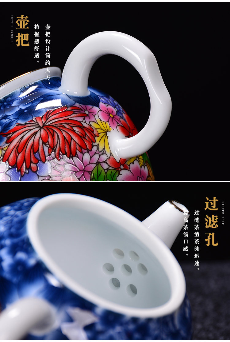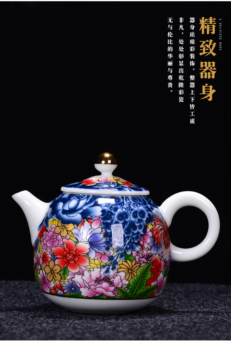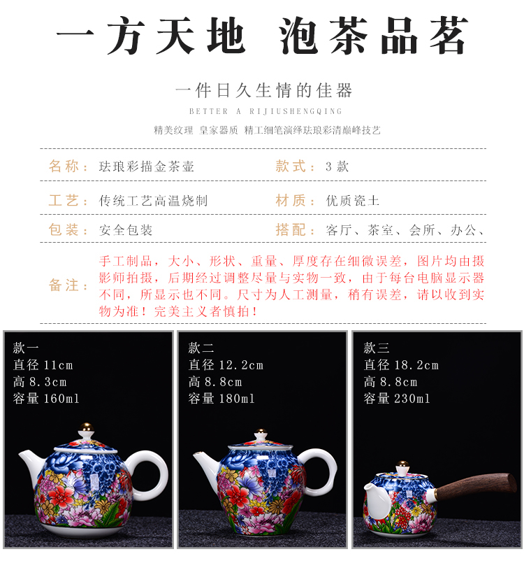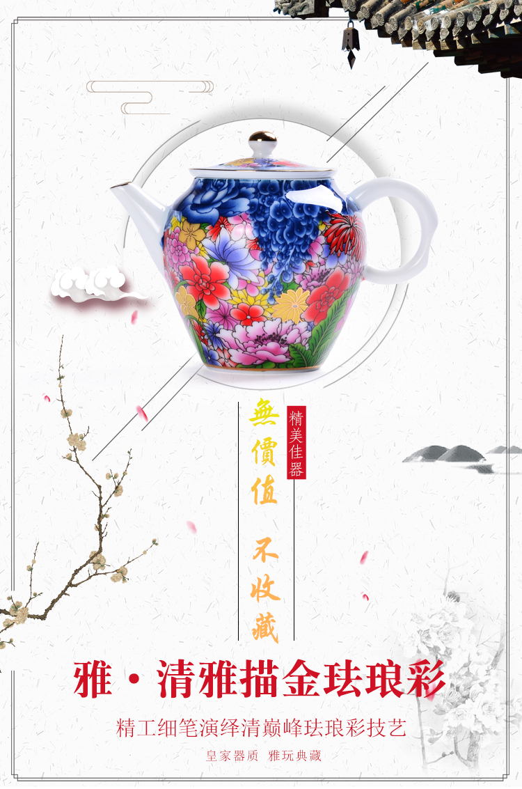 陶生活手繪真金琺瑯彩萬花茶壺景德鎮陶瓷功夫茶具泡茶壺單壺收藏1入