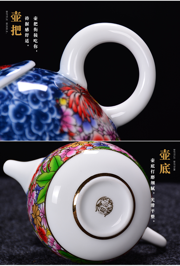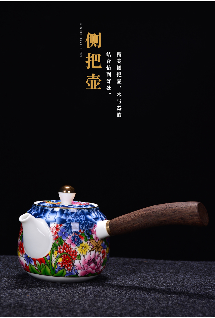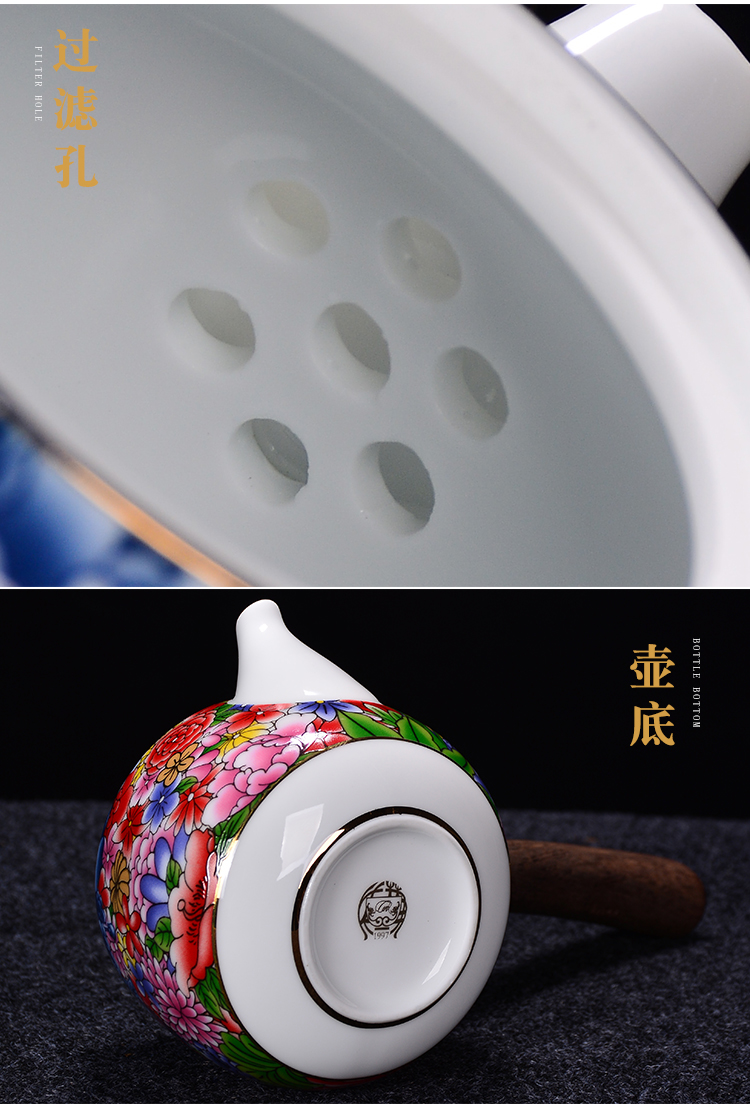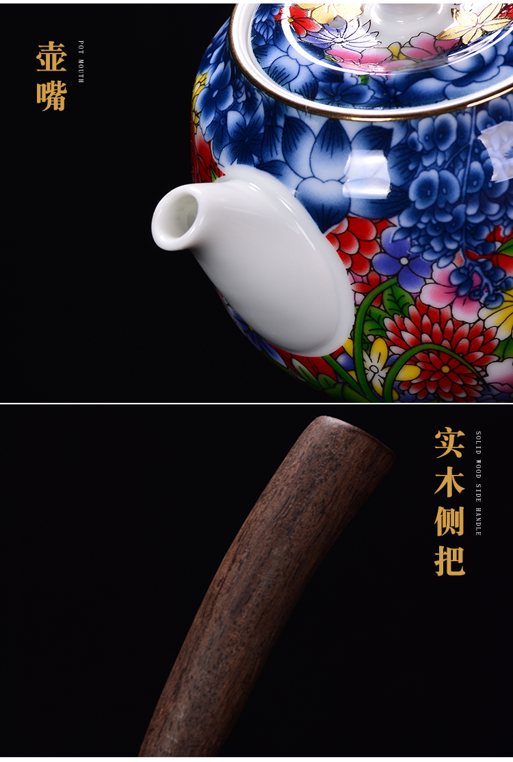 陶生活手繪真金琺瑯彩萬花茶壺景德鎮陶瓷功夫茶具泡茶壺單壺收藏1入