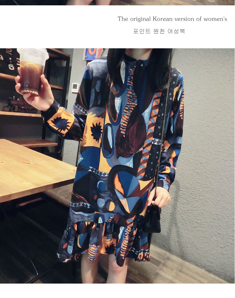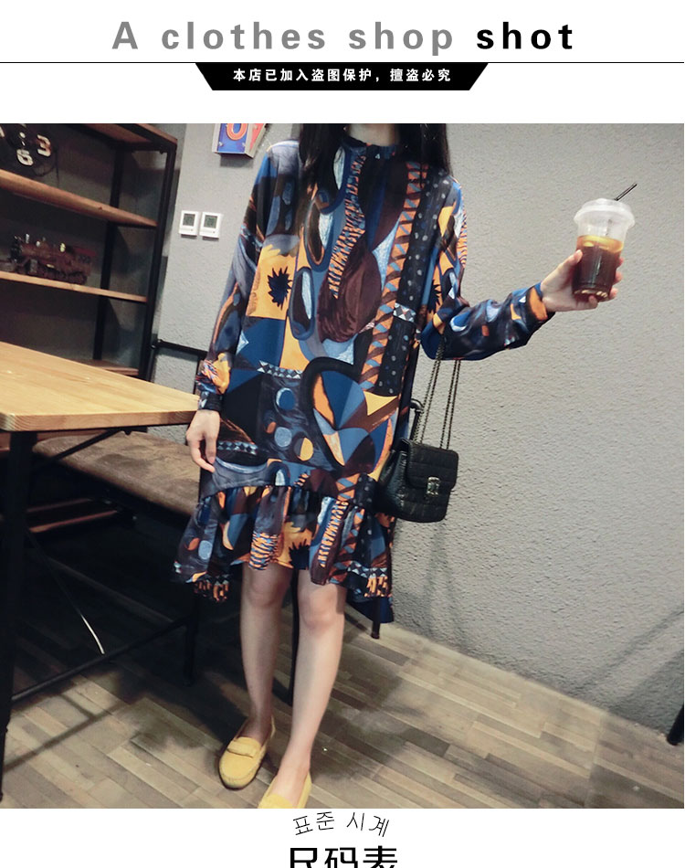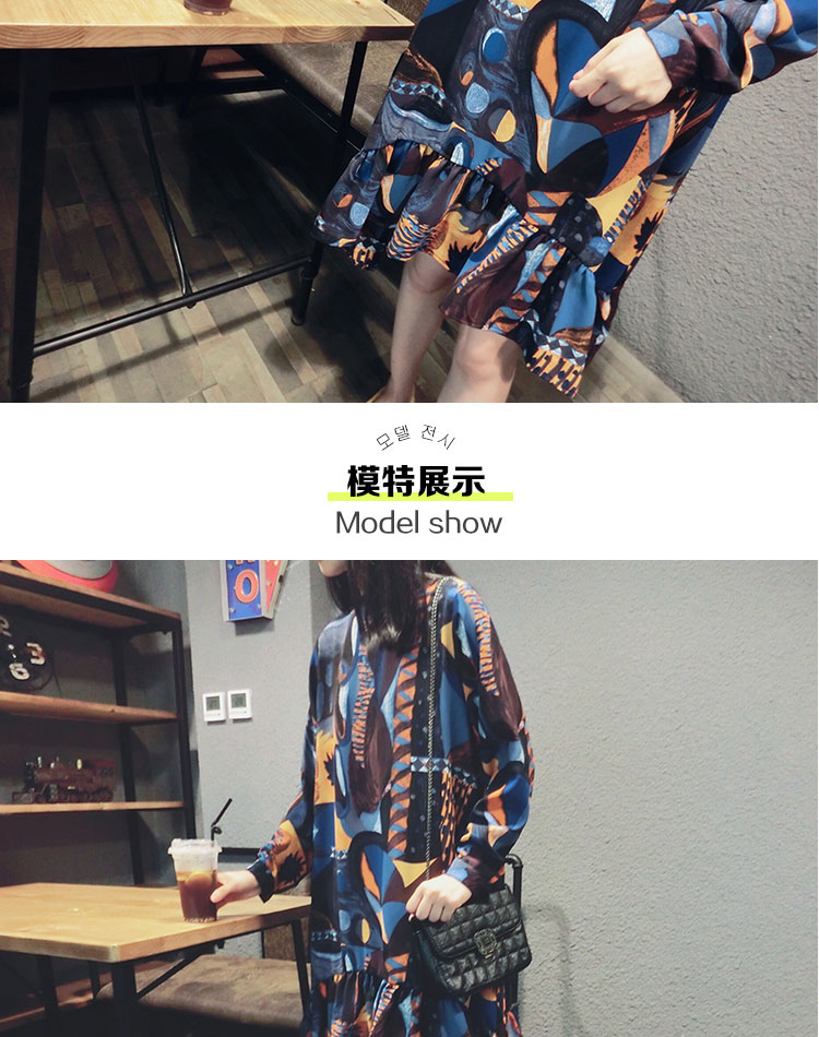 2019春季新款女裝連衣裙中長款寬松顯瘦長袖前短后長打底裙1入
