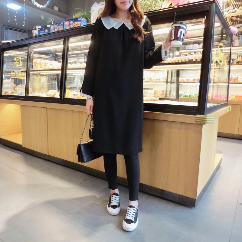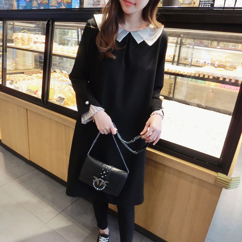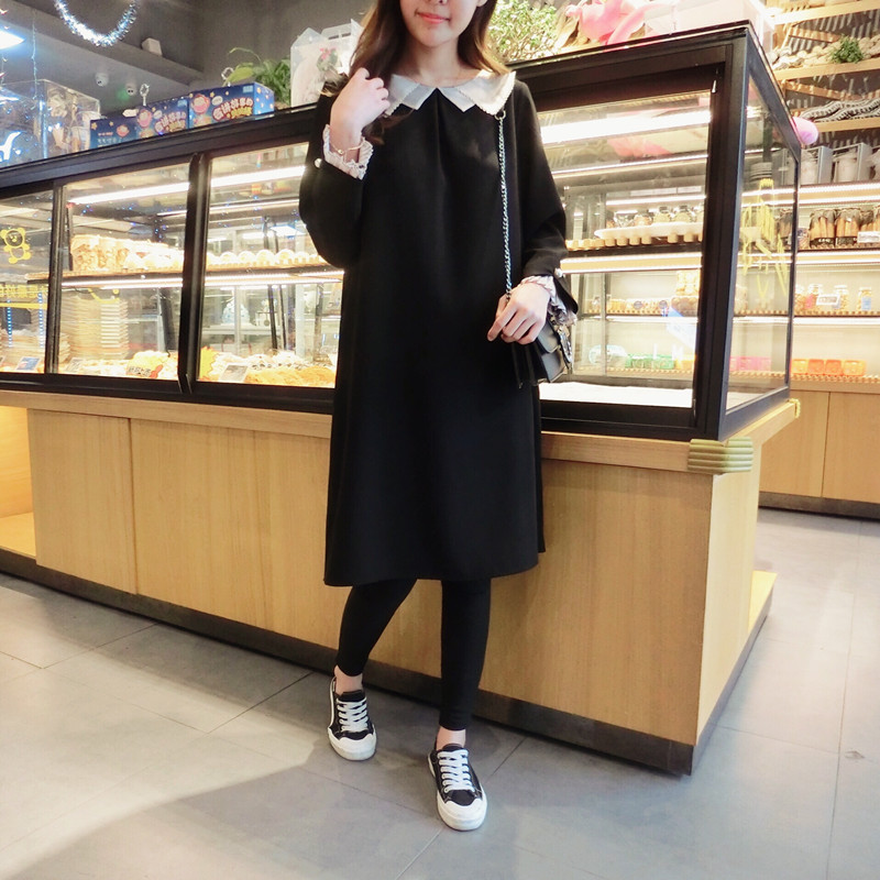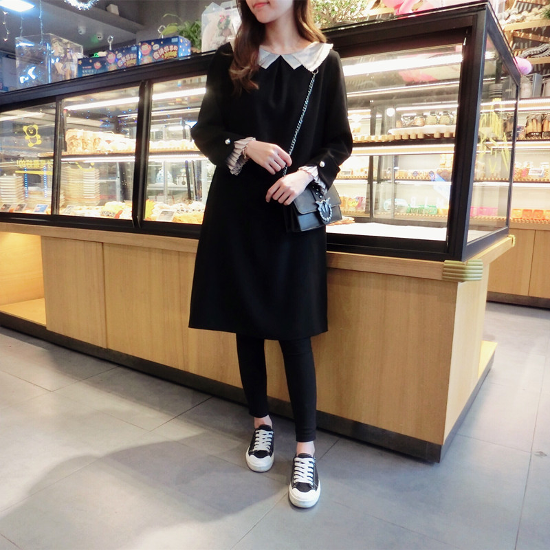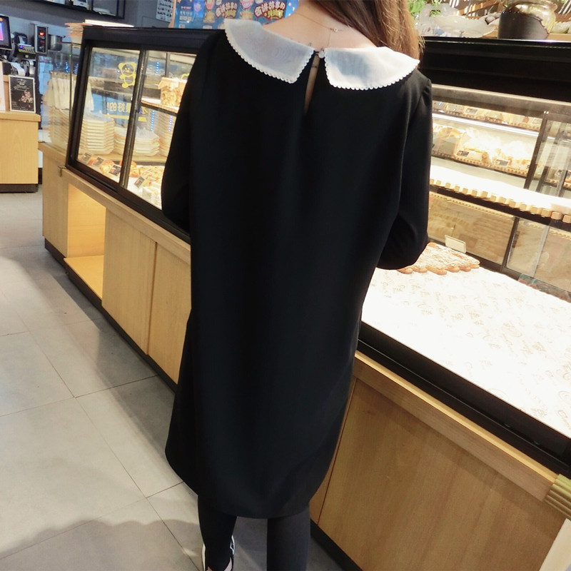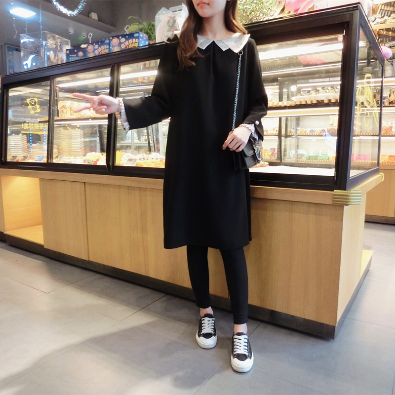 韓版2019春季新款女寬松歐根紗拼接中長款韓版大碼連衣裙女百搭1入