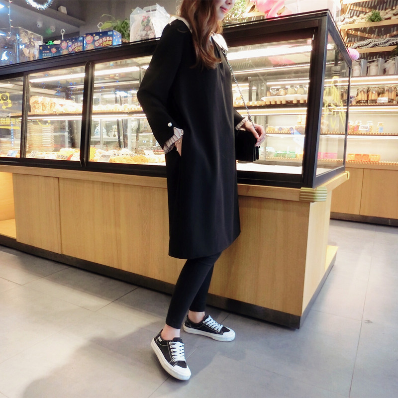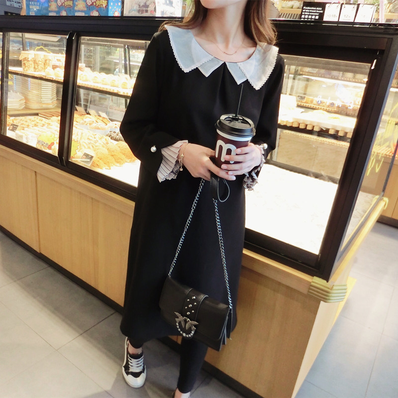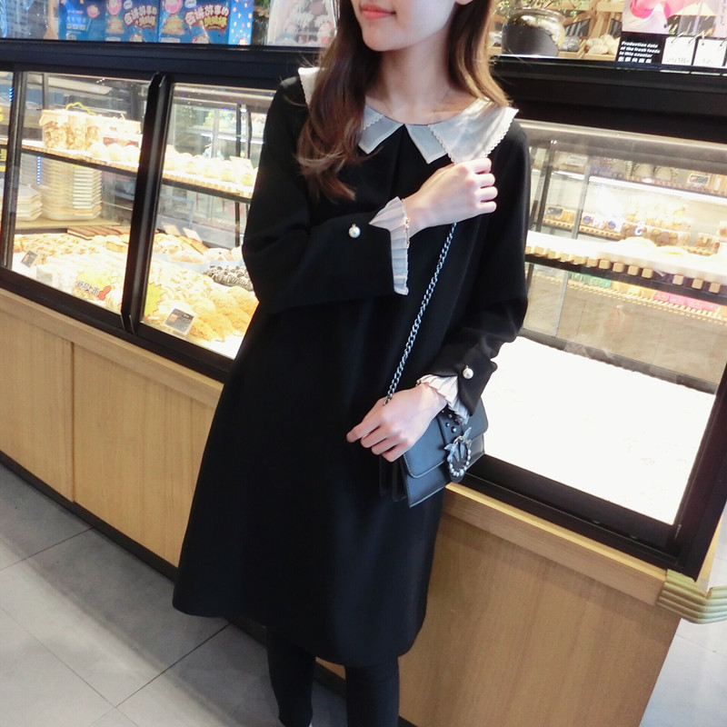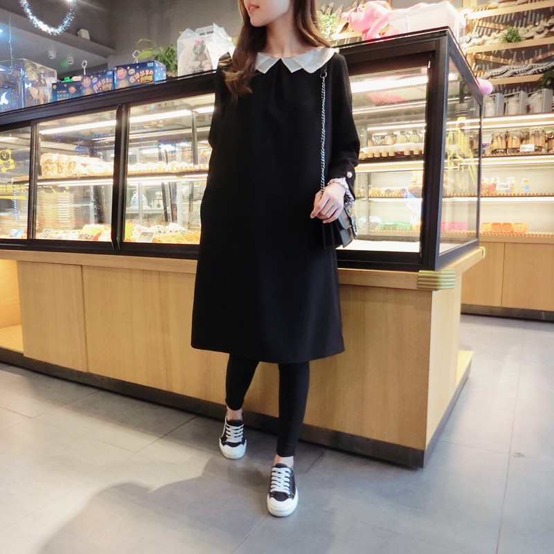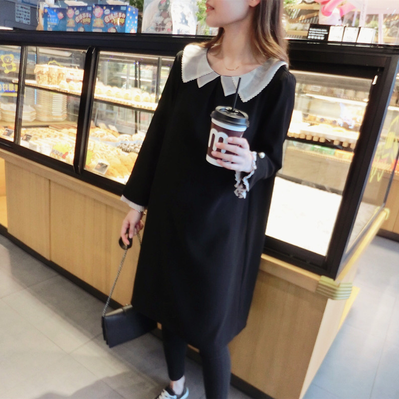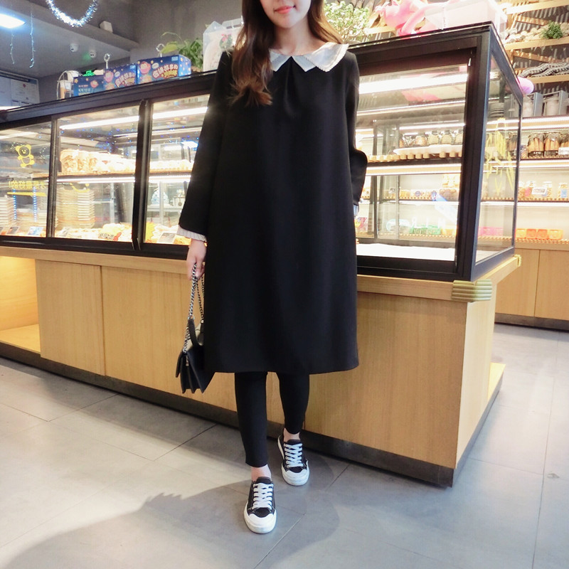 韓版2019春季新款女寬松歐根紗拼接中長款韓版大碼連衣裙女百搭1入