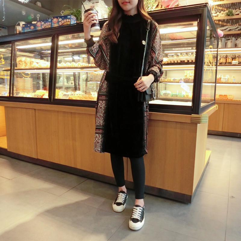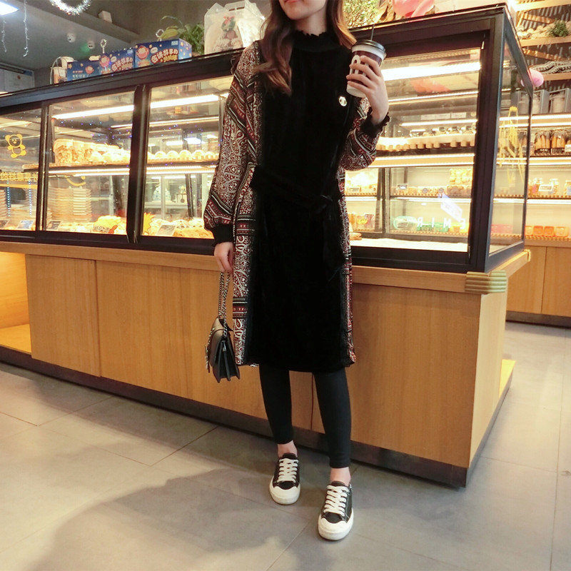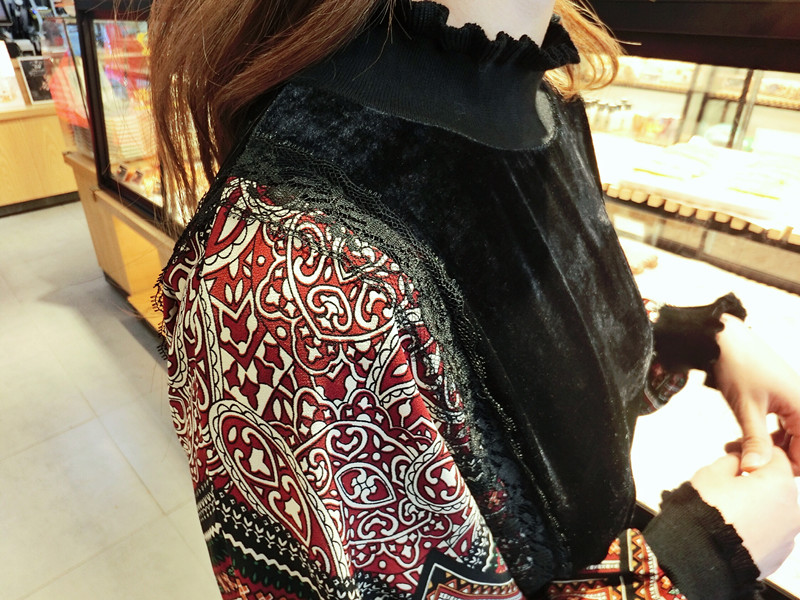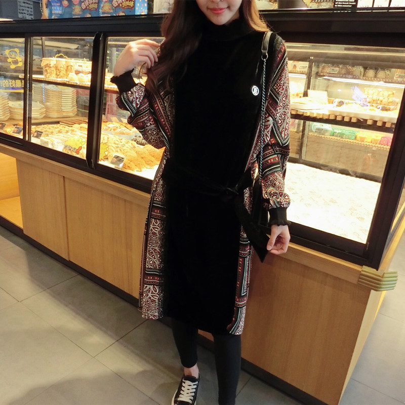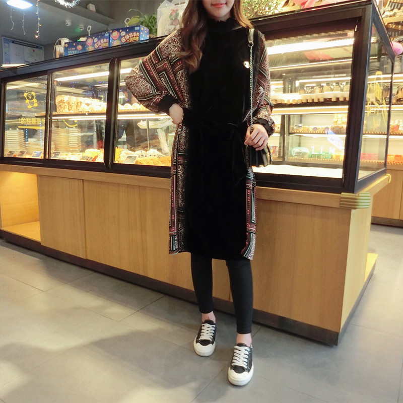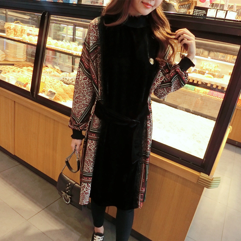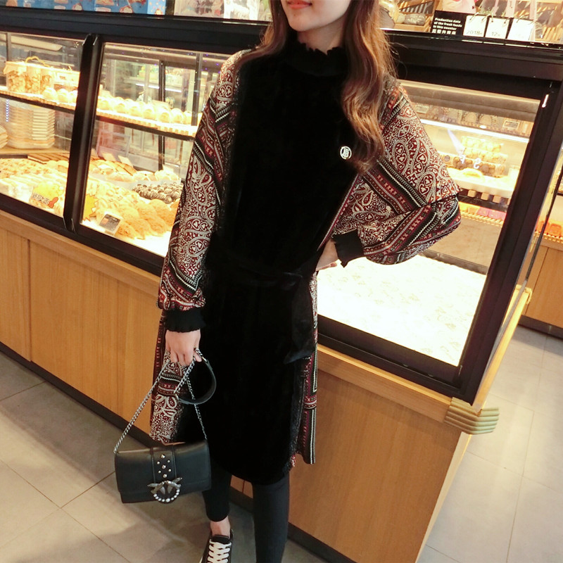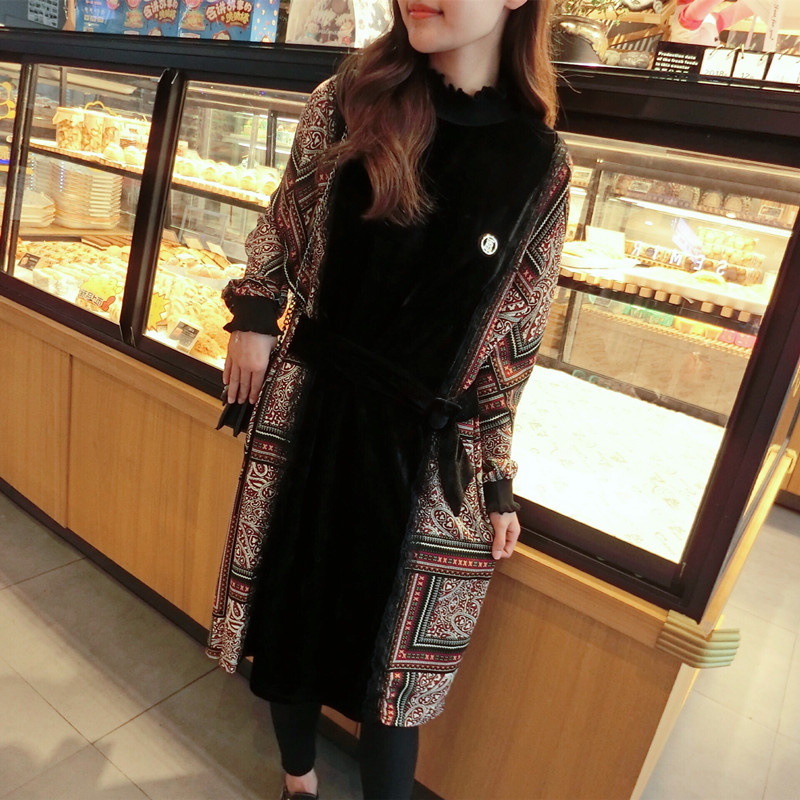 2019秋冬新品中長款韓版大碼女裝顯瘦百搭碎花拼接連衣裙打底裙1入