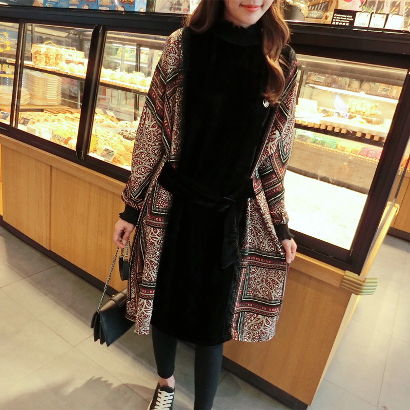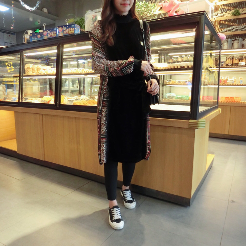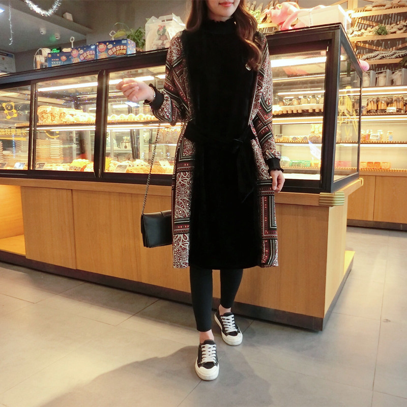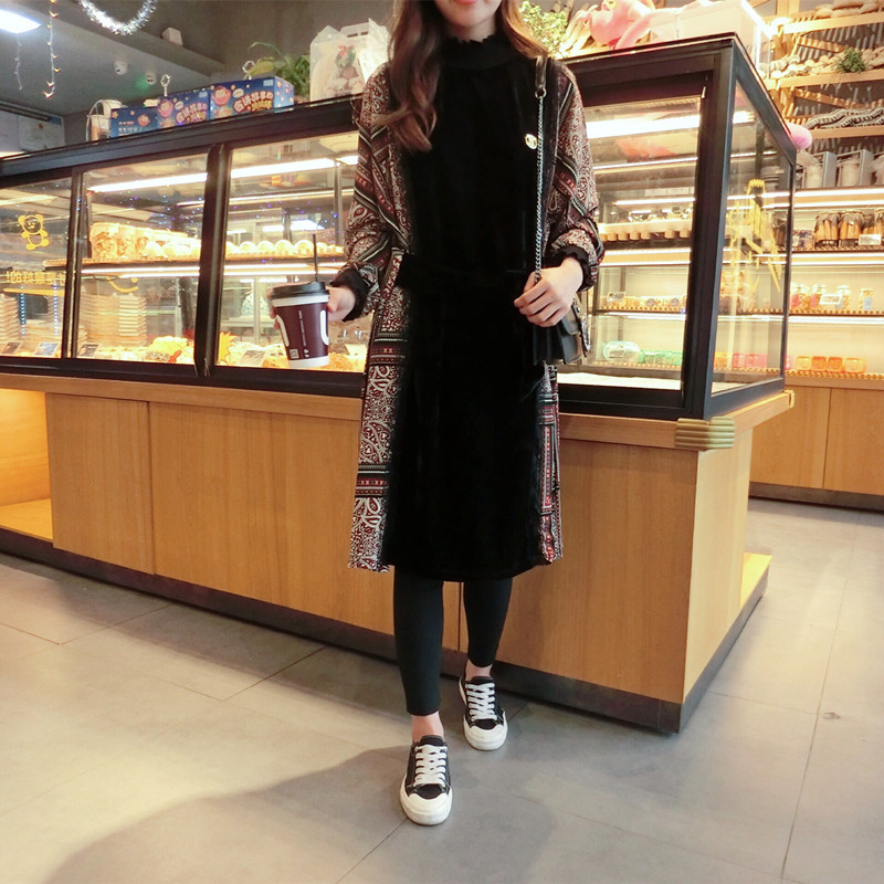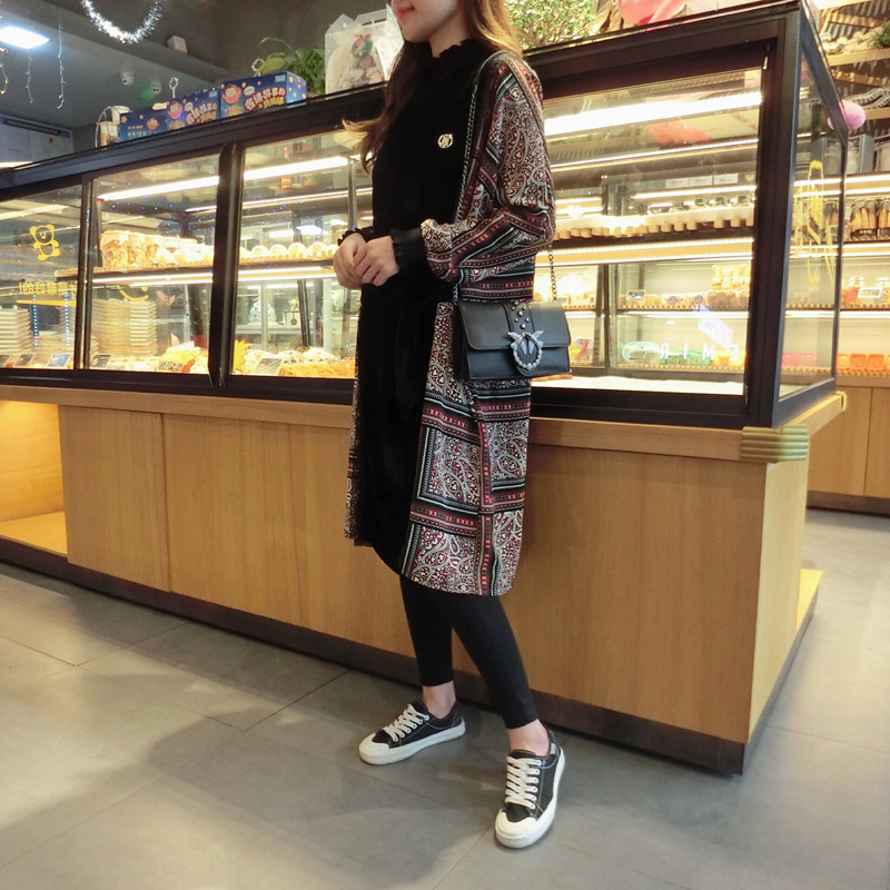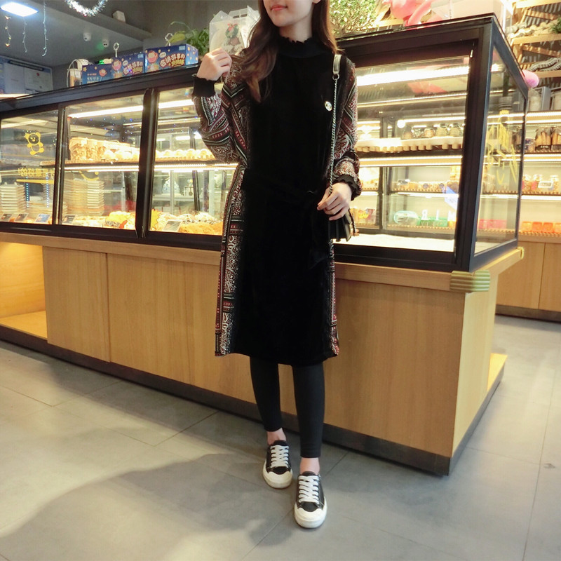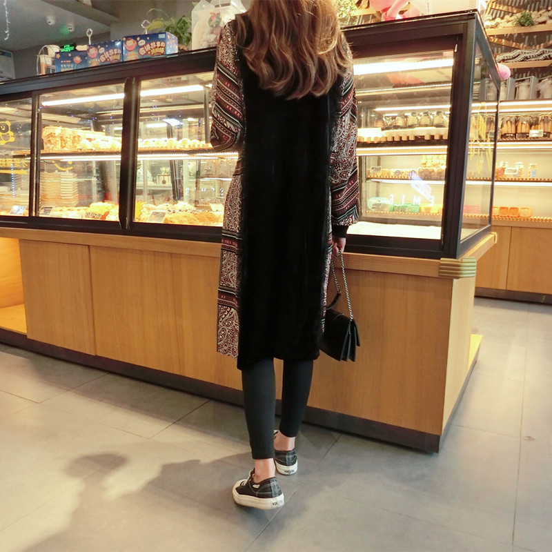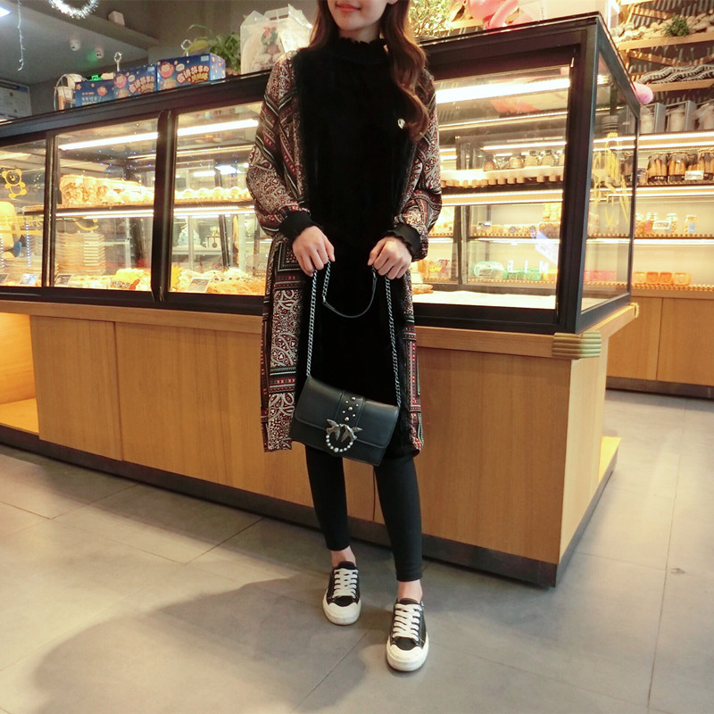2019秋冬新品中長款韓版大碼女裝顯瘦百搭碎花拼接連衣裙打底裙1入