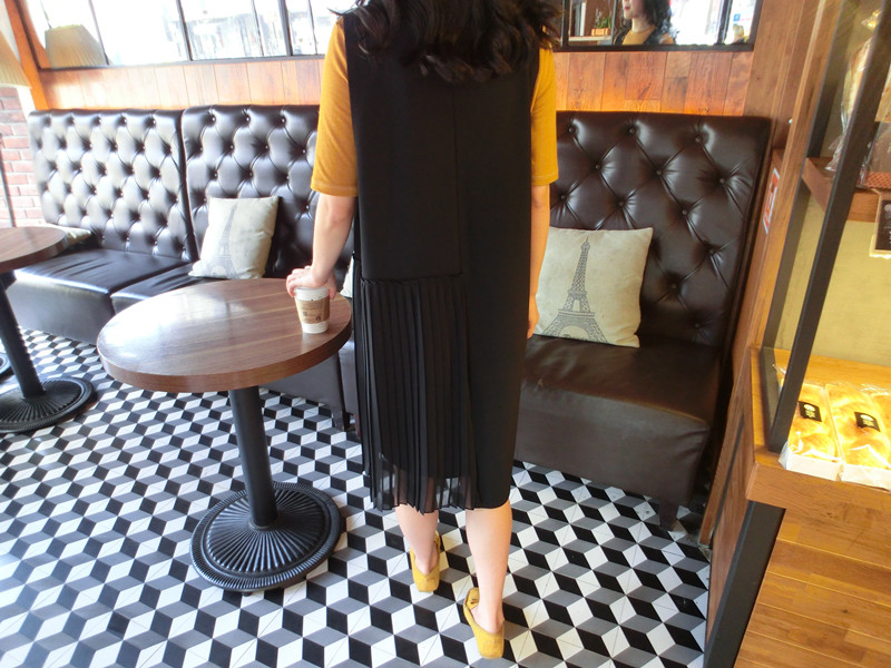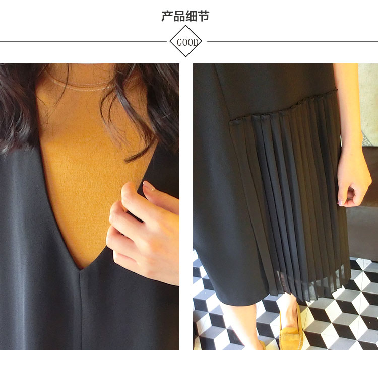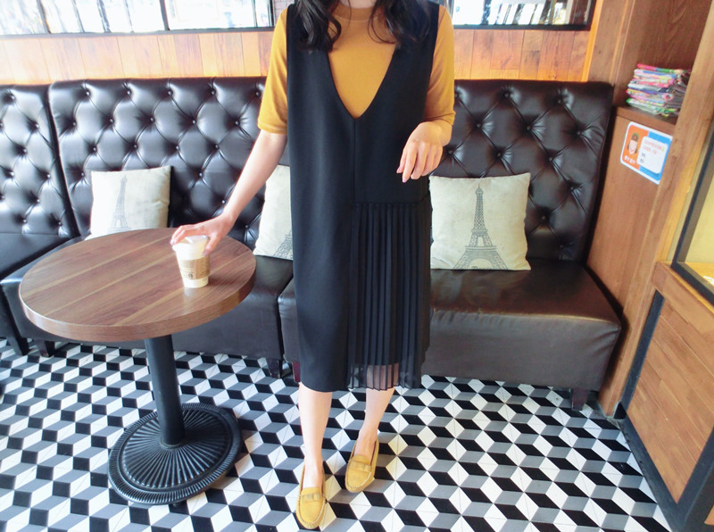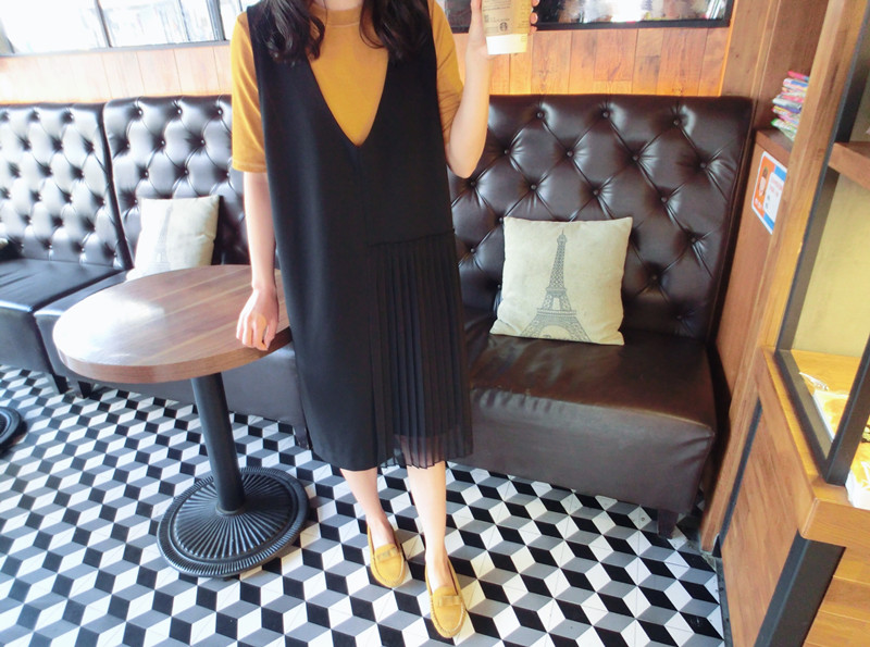 2019春季新品女裝中長款韓版寬松百褶擺雪紡大碼背心連衣裙1入