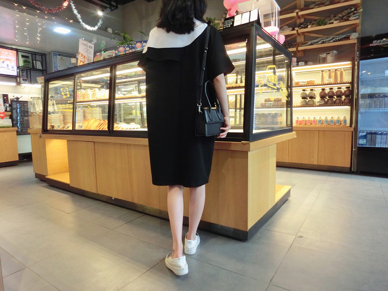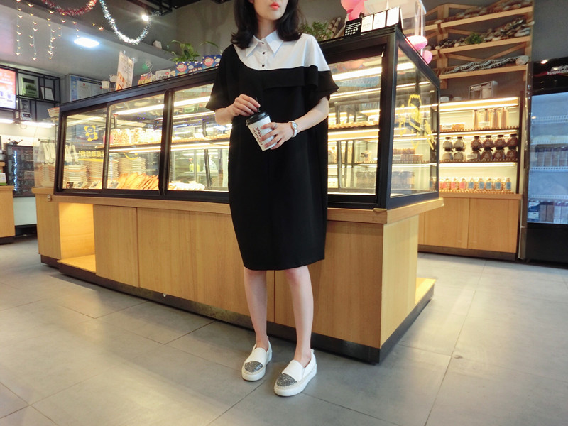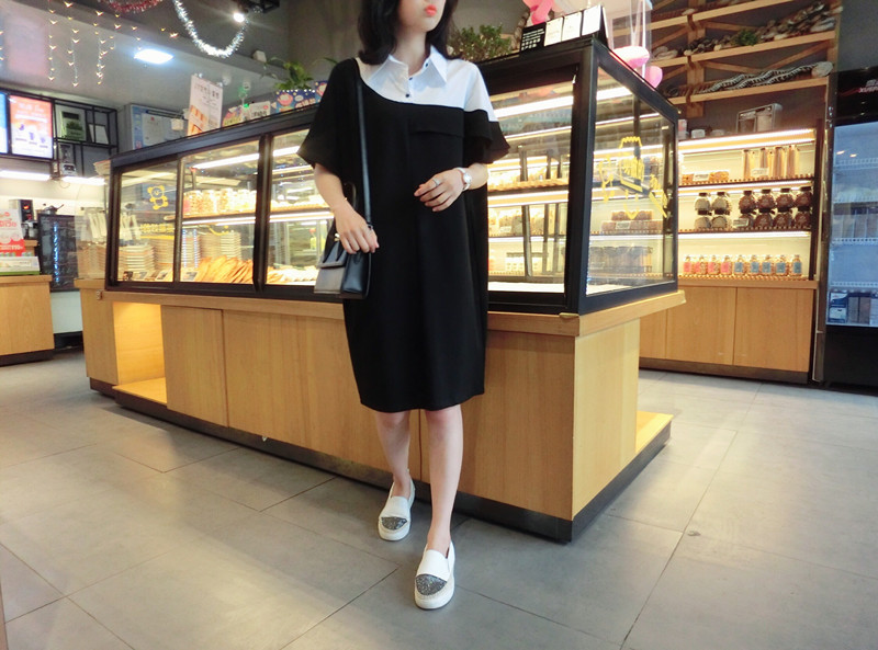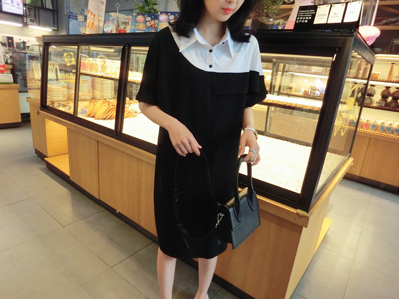 2019夏季新款女裝中長款韓版減齡時尚假兩件中長款休閑寬松連衣裙1入