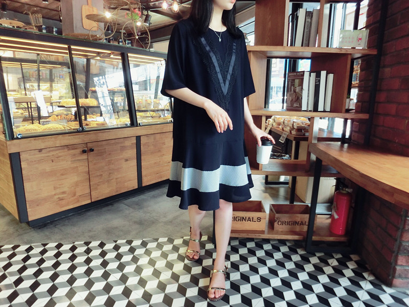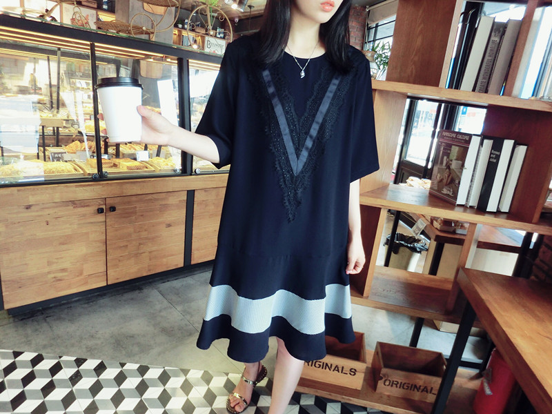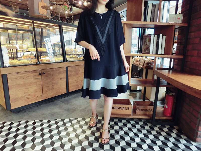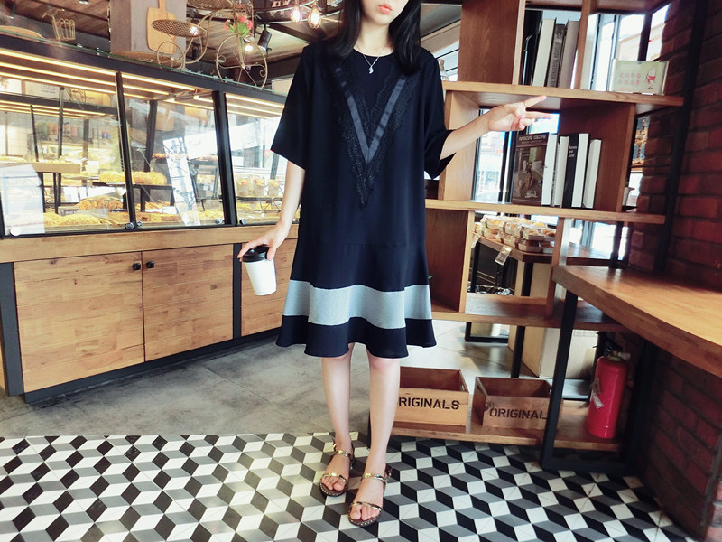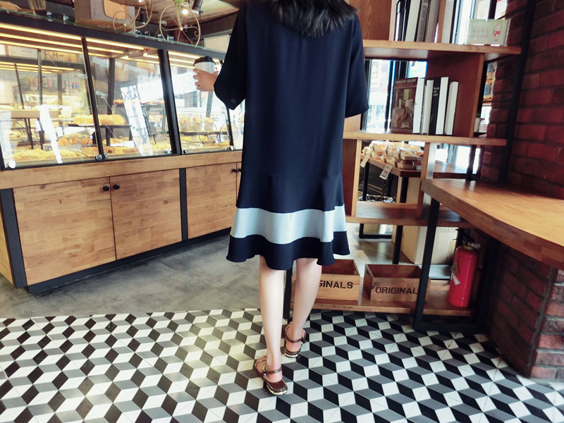 2019夏季新款 中長款韓版荷葉邊下擺格子垂感顯瘦雪紡連衣裙 女1入