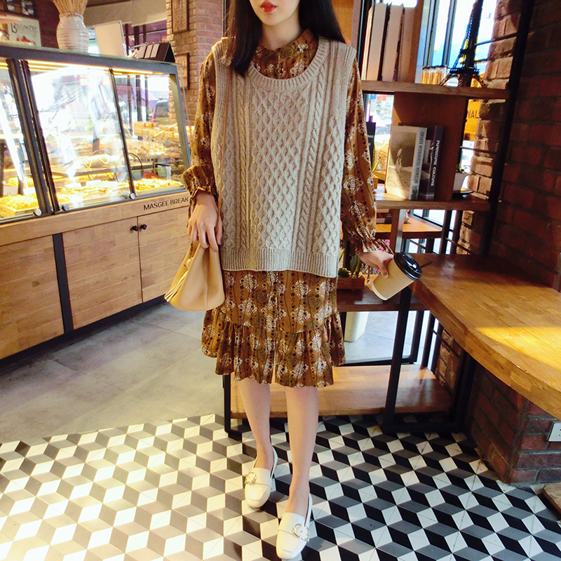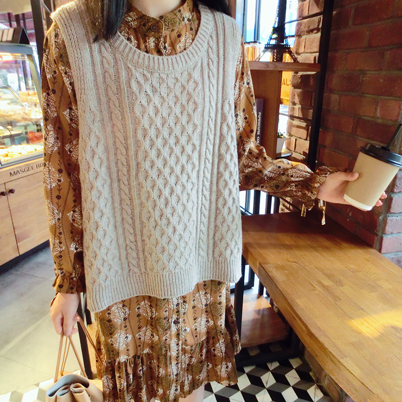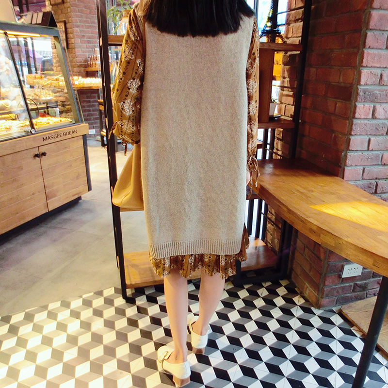 韓版2017秋季新款女裝前短后長寬松顯瘦毛衣背心馬甲氣質百搭外套1入