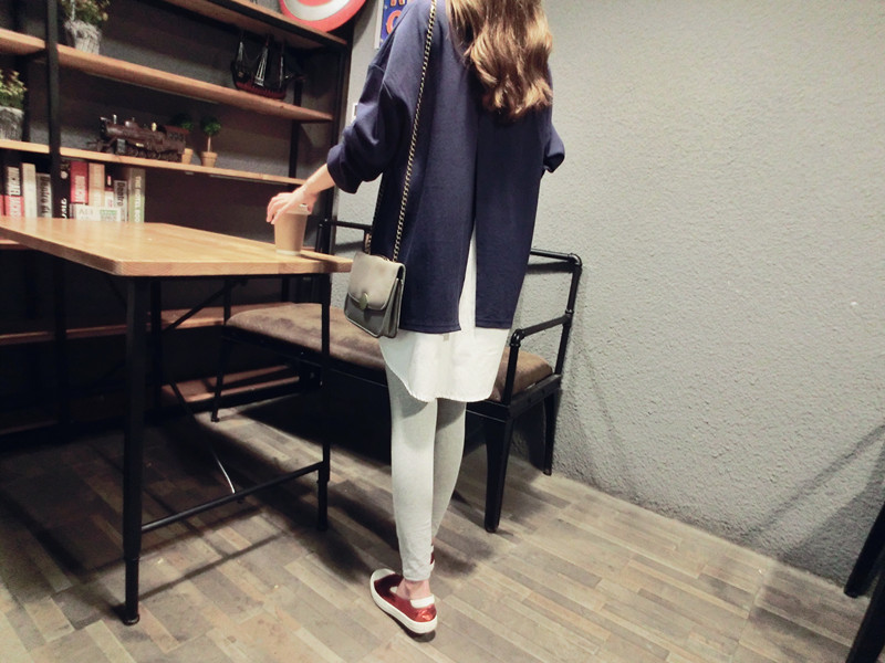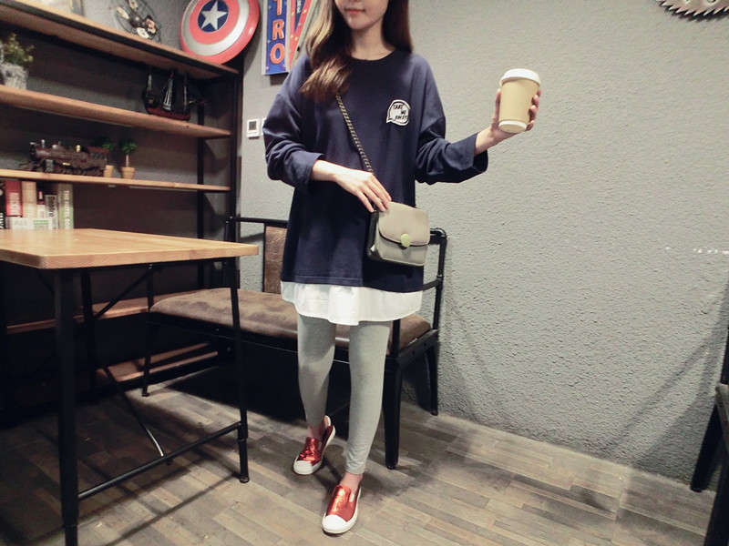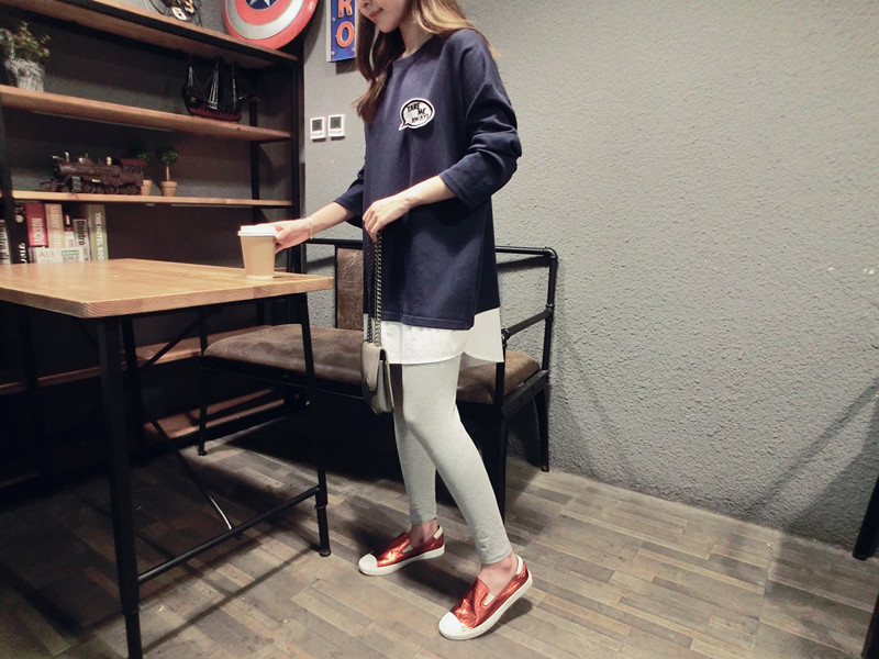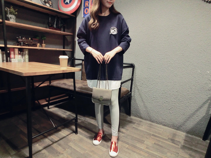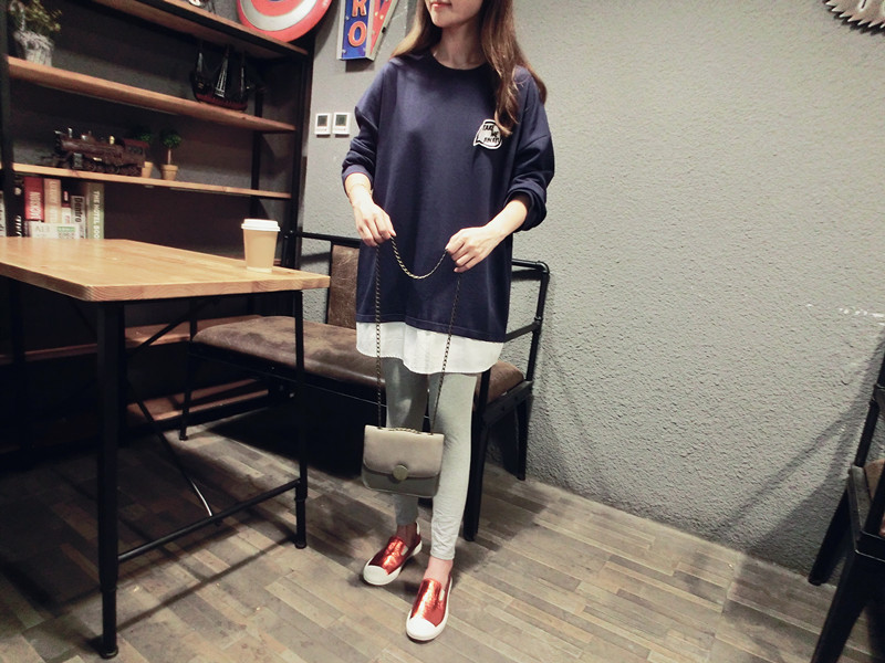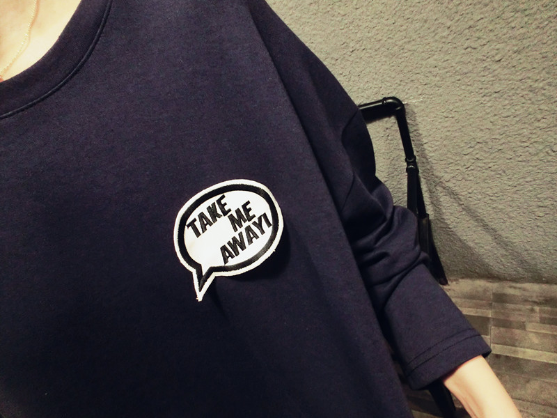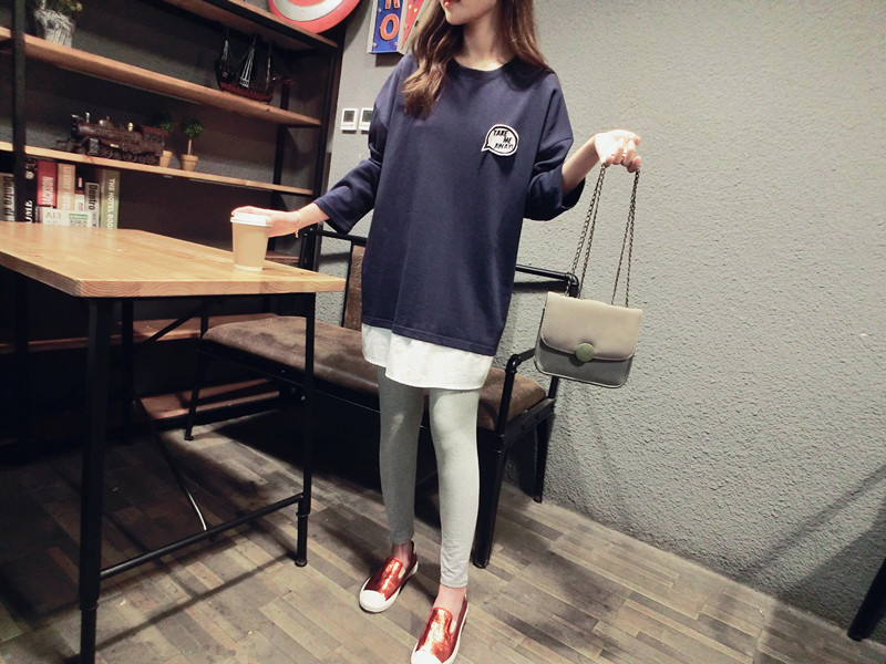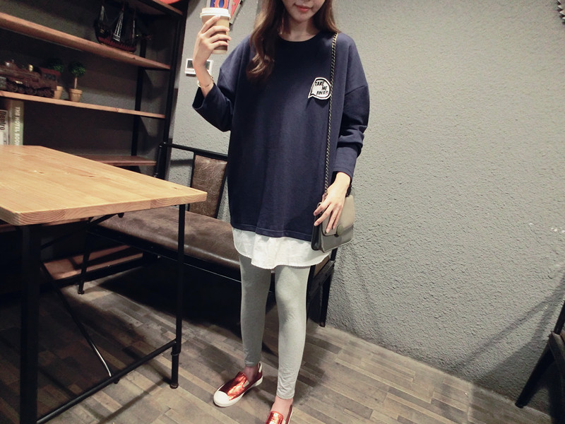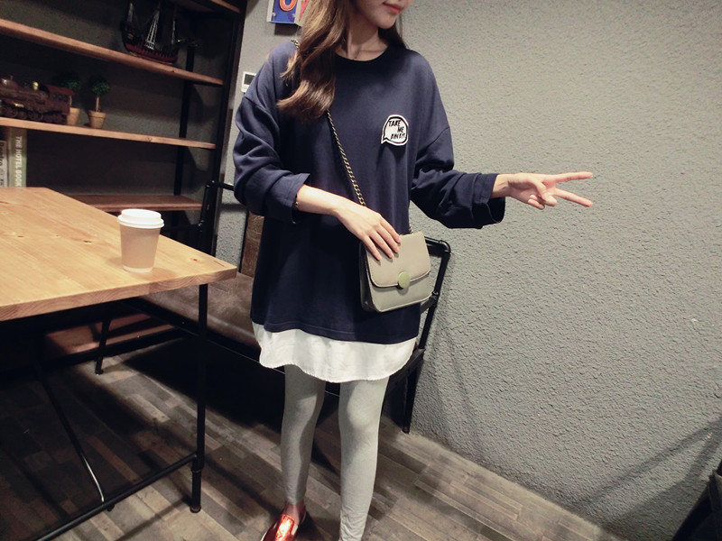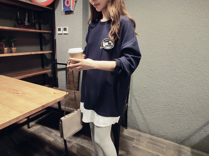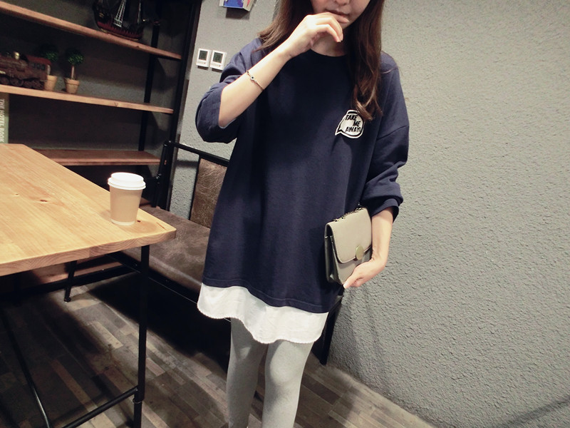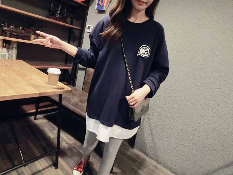 2019秋季新款女裝中長款韓版經典字母胸針拼接假兩件衛衣連衣裙1入