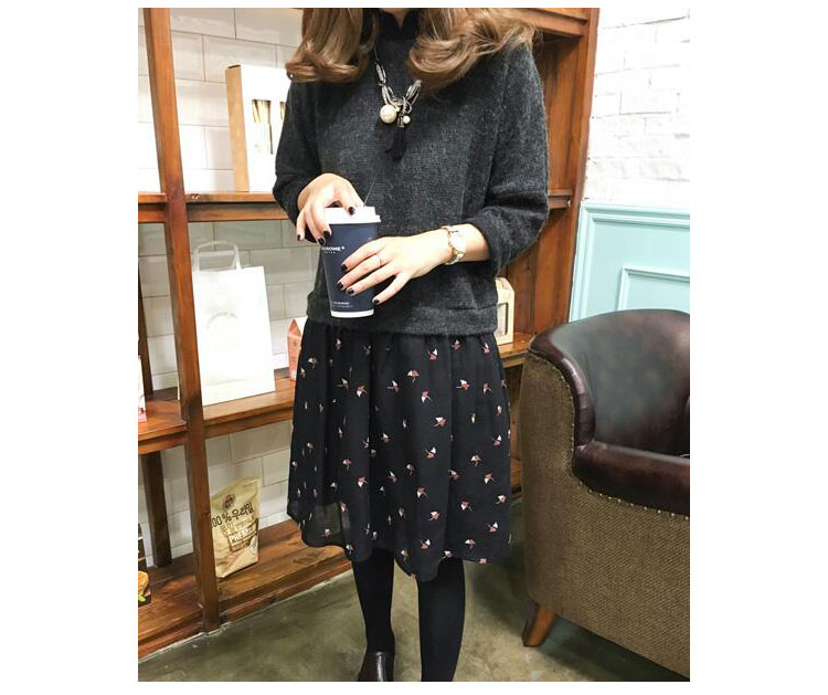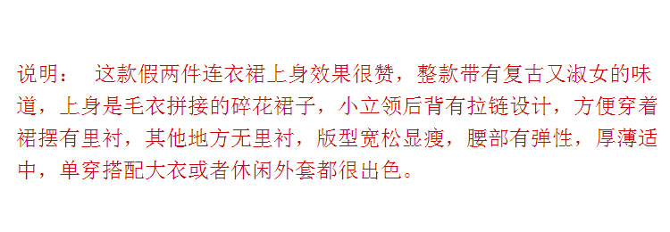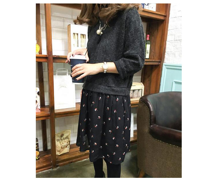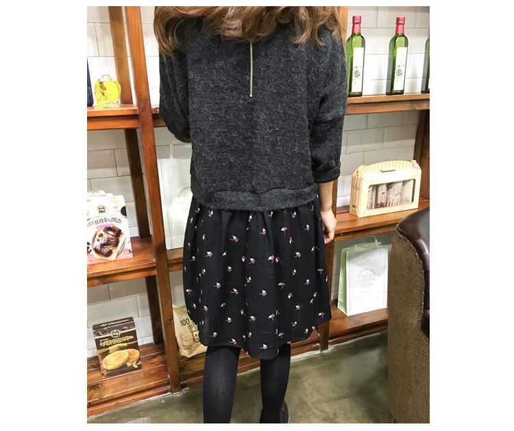 2018春季新品打底衫韓版碎花拼接大碼百搭打底裙針織連衣裙1入