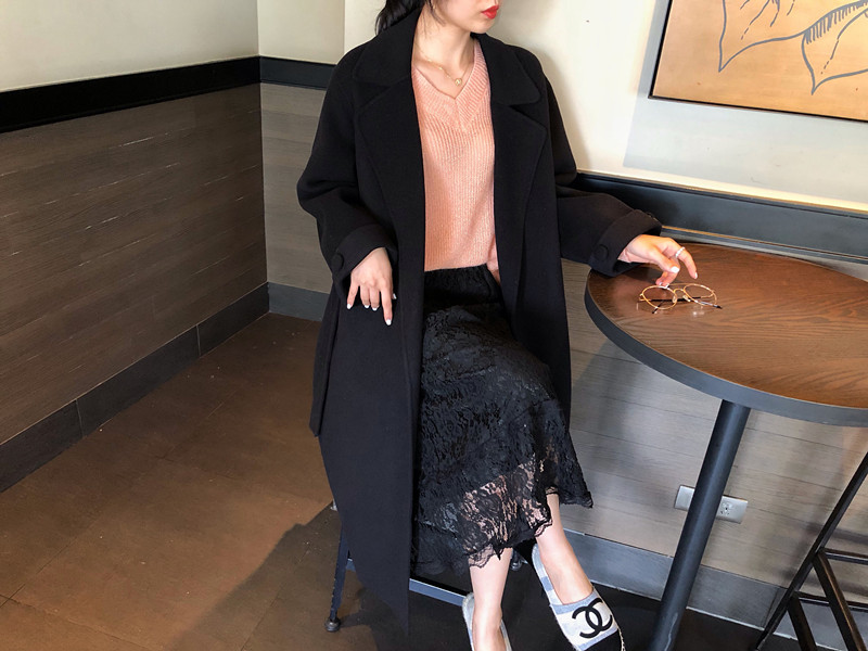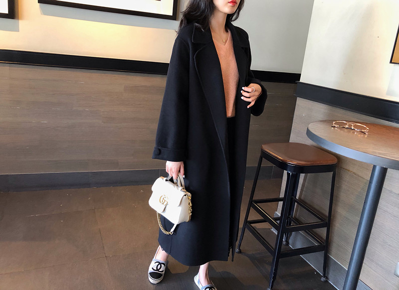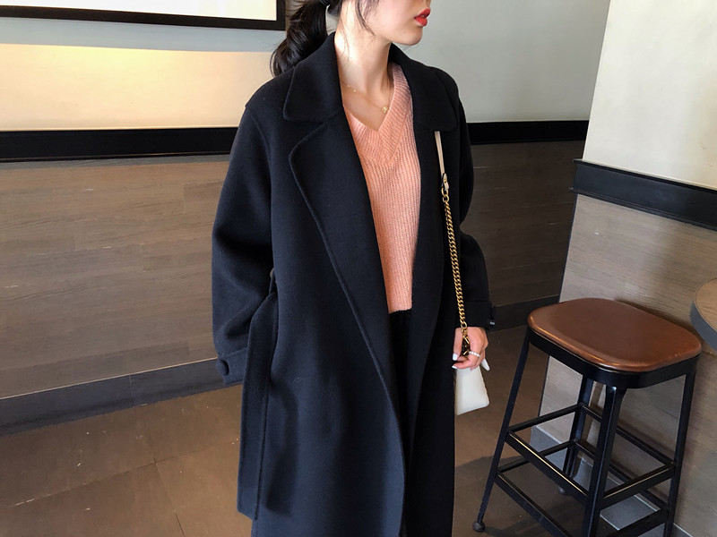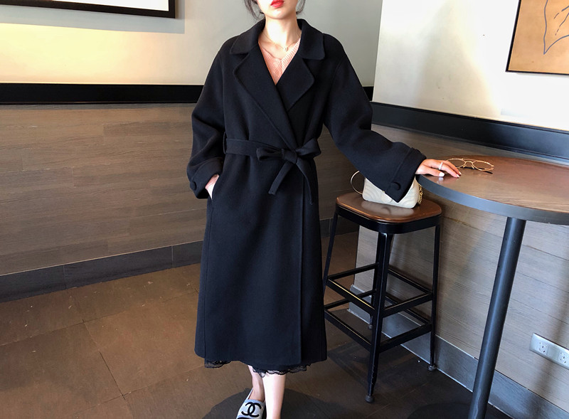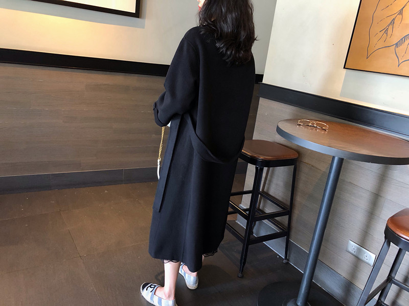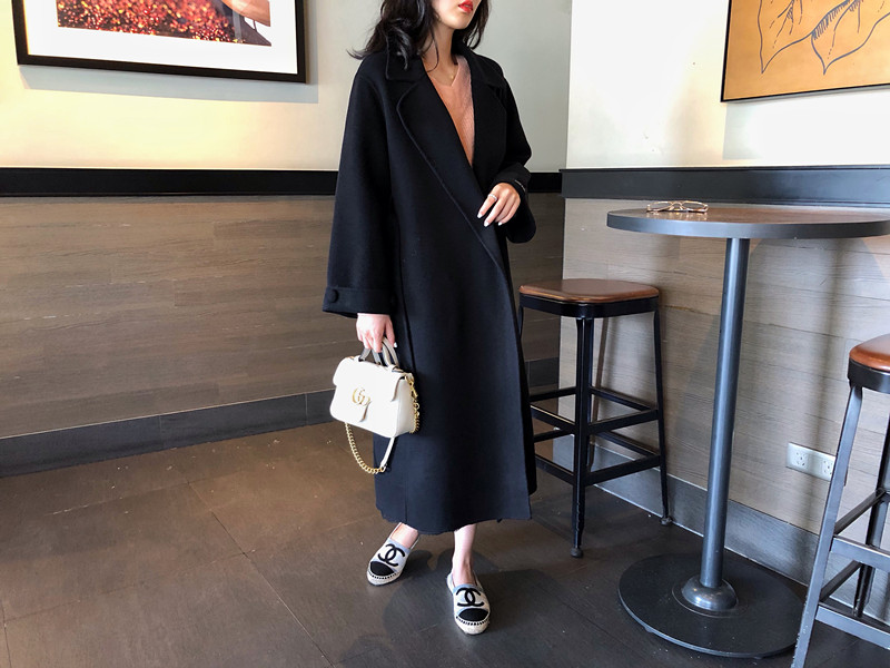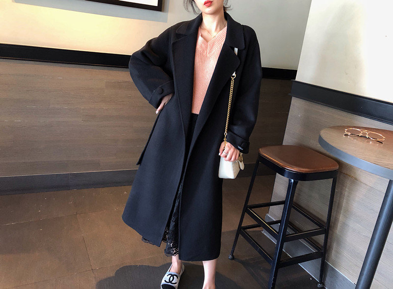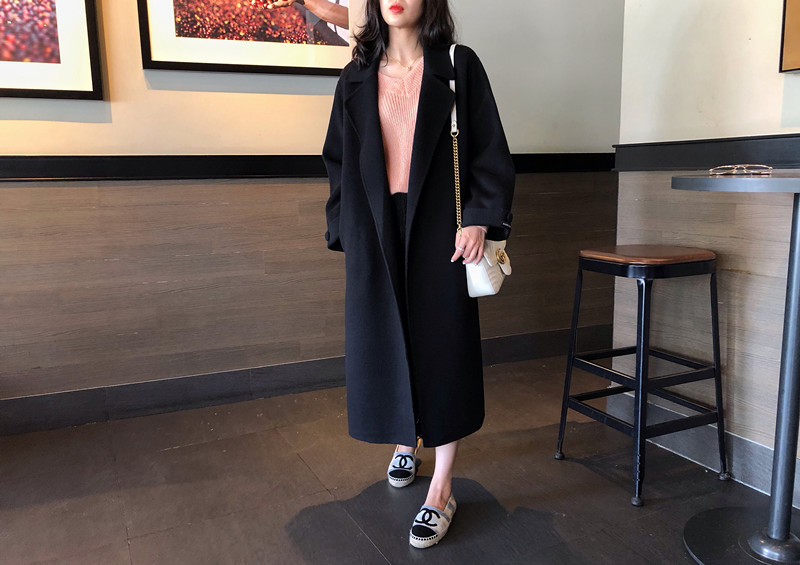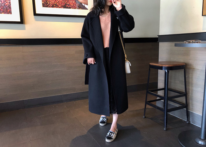 赫本風大衣女中長款高端過膝寬松雙面呢2019秋冬季零羊絨呢子外套1入