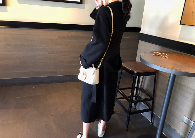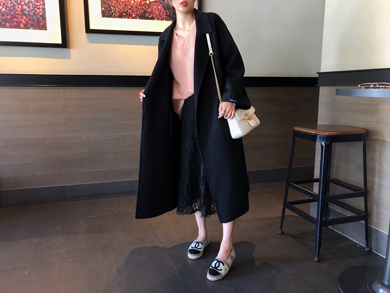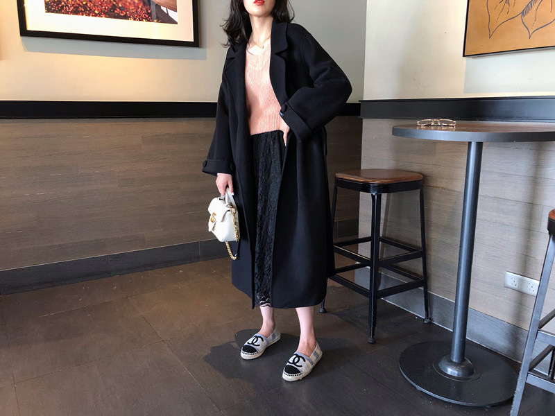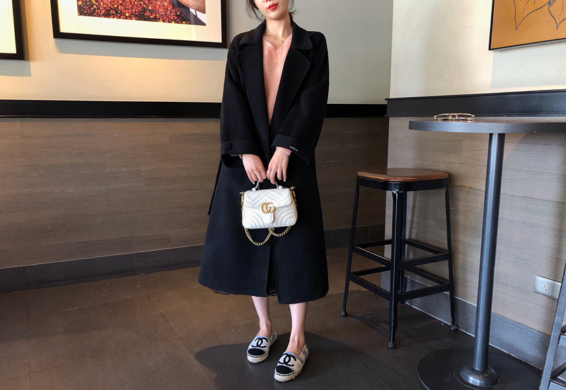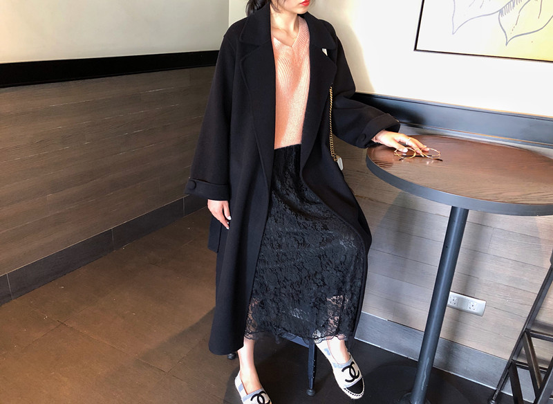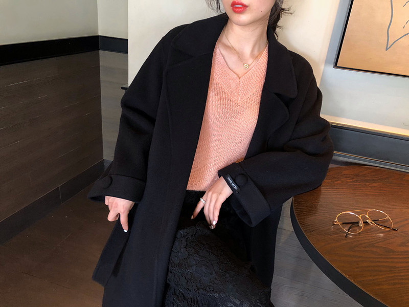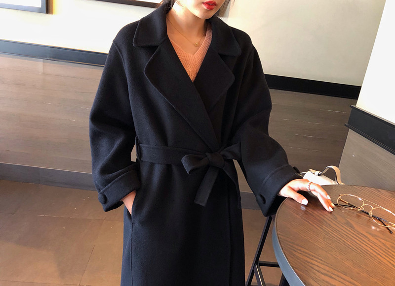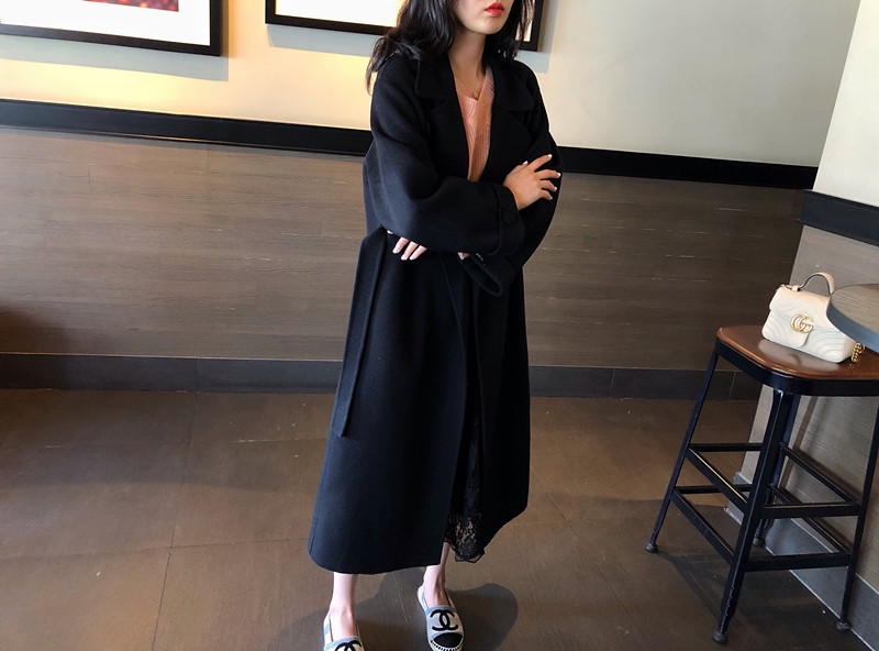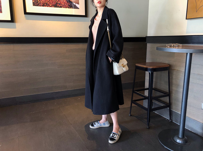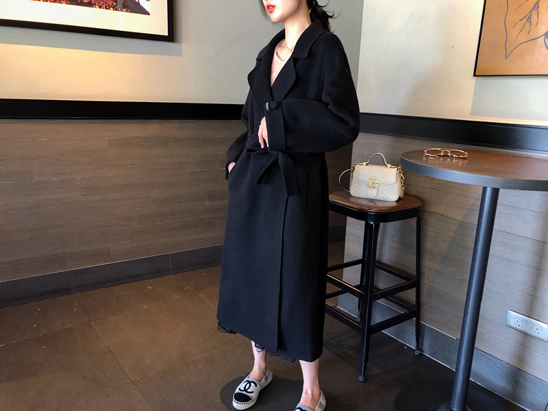 赫本風大衣女中長款高端過膝寬松雙面呢2019秋冬季零羊絨呢子外套1入