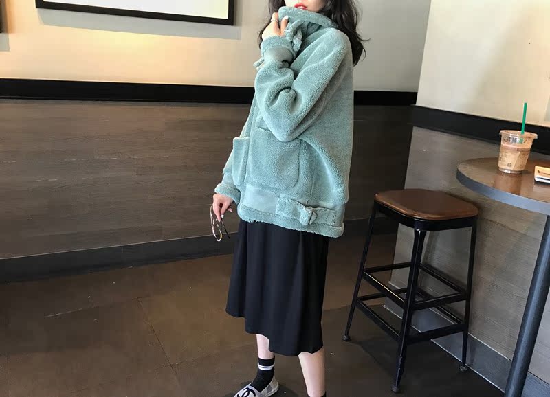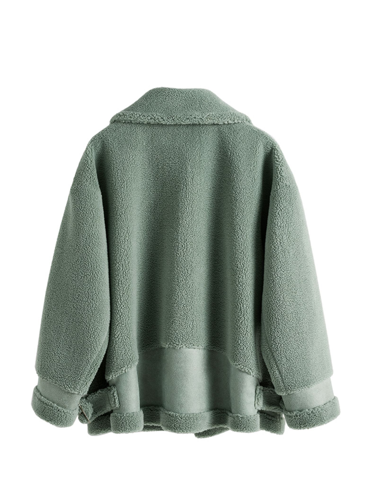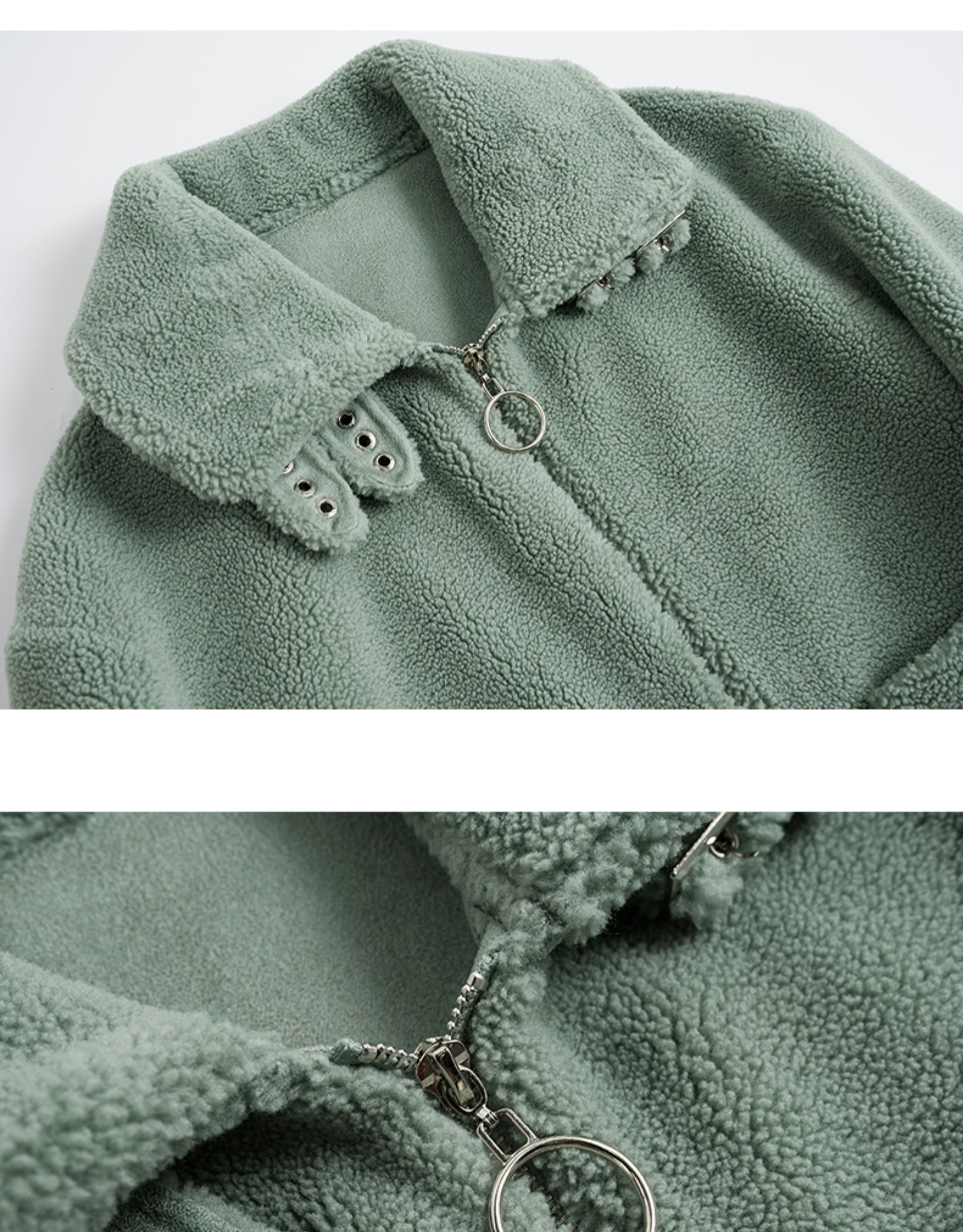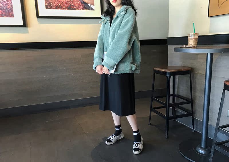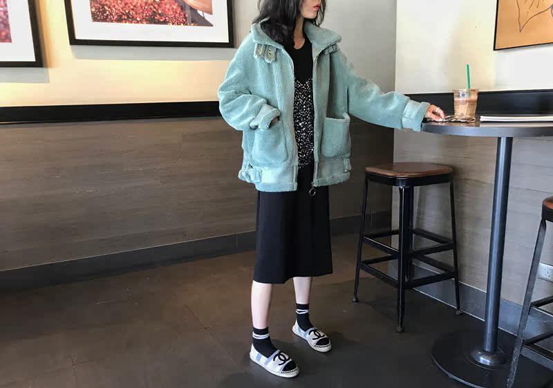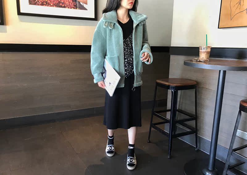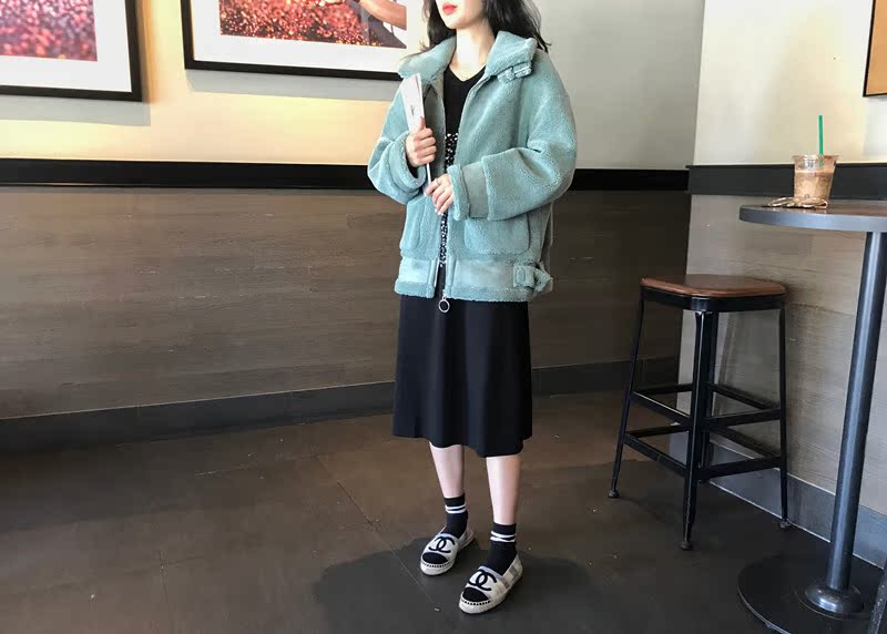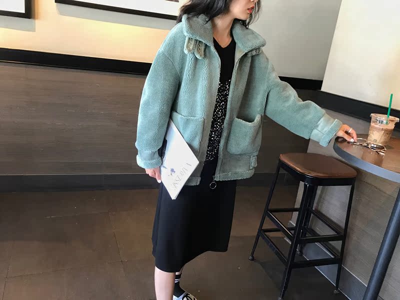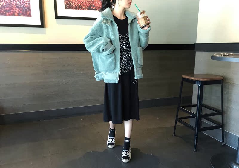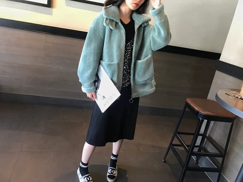 2019新款冬海寧羊剪絨大衣女時尚皮草皮毛一體短款零羊絨顆粒外套1入