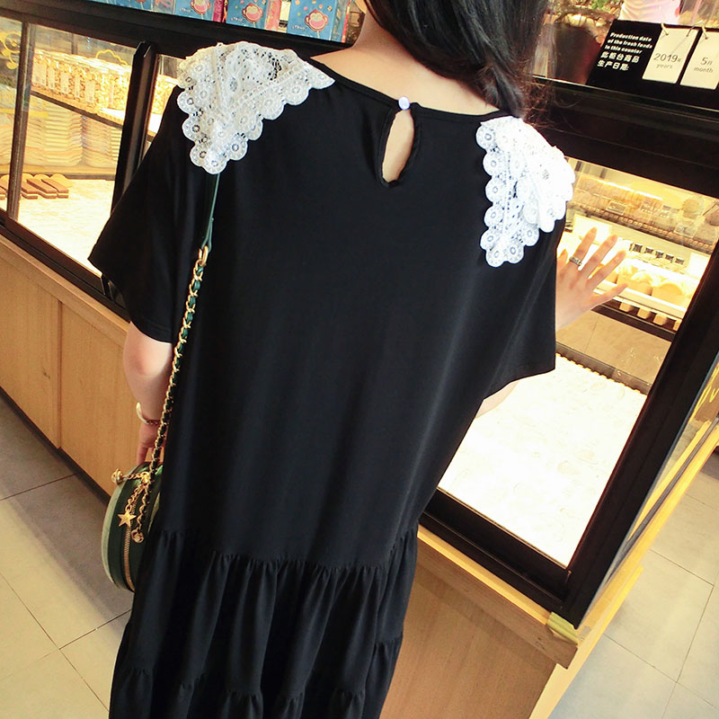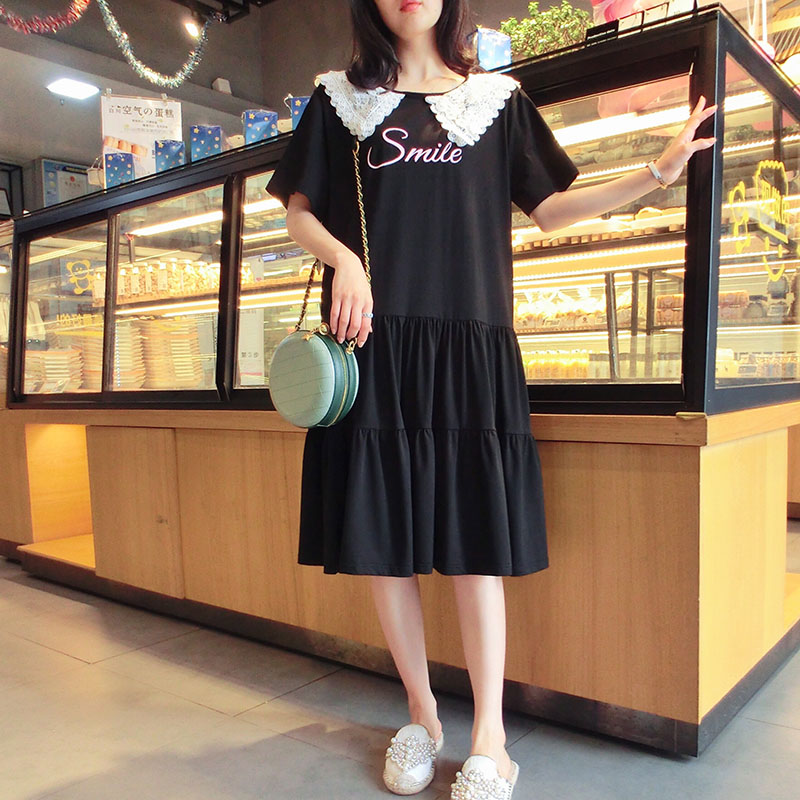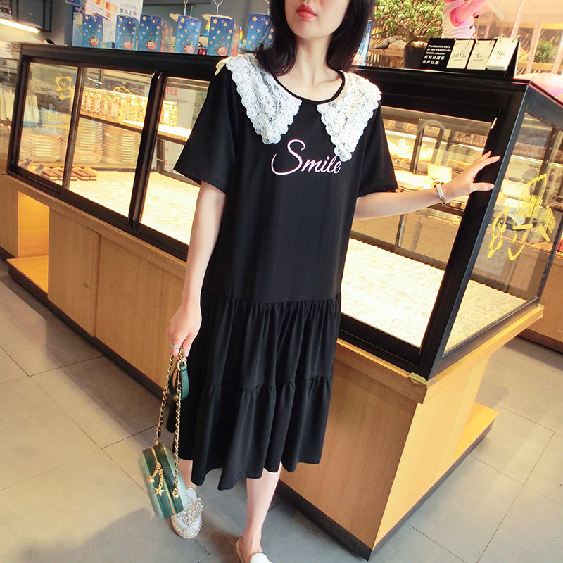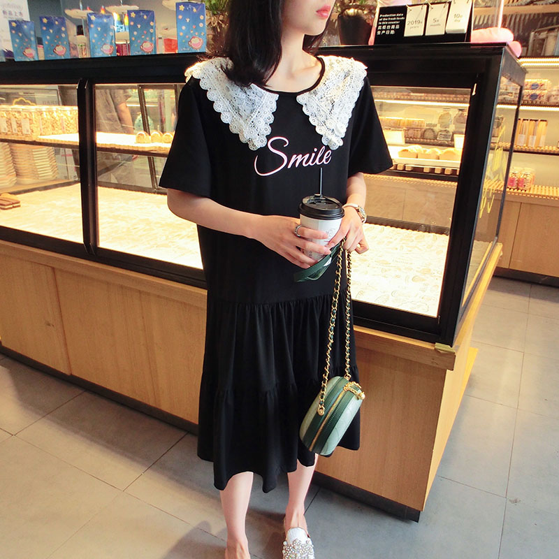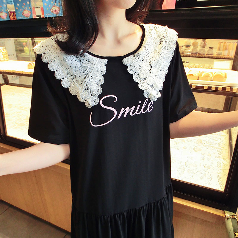 雙層蕾絲大翻領韓版2019夏季新款學院風寬松中長款連衣裙女1入