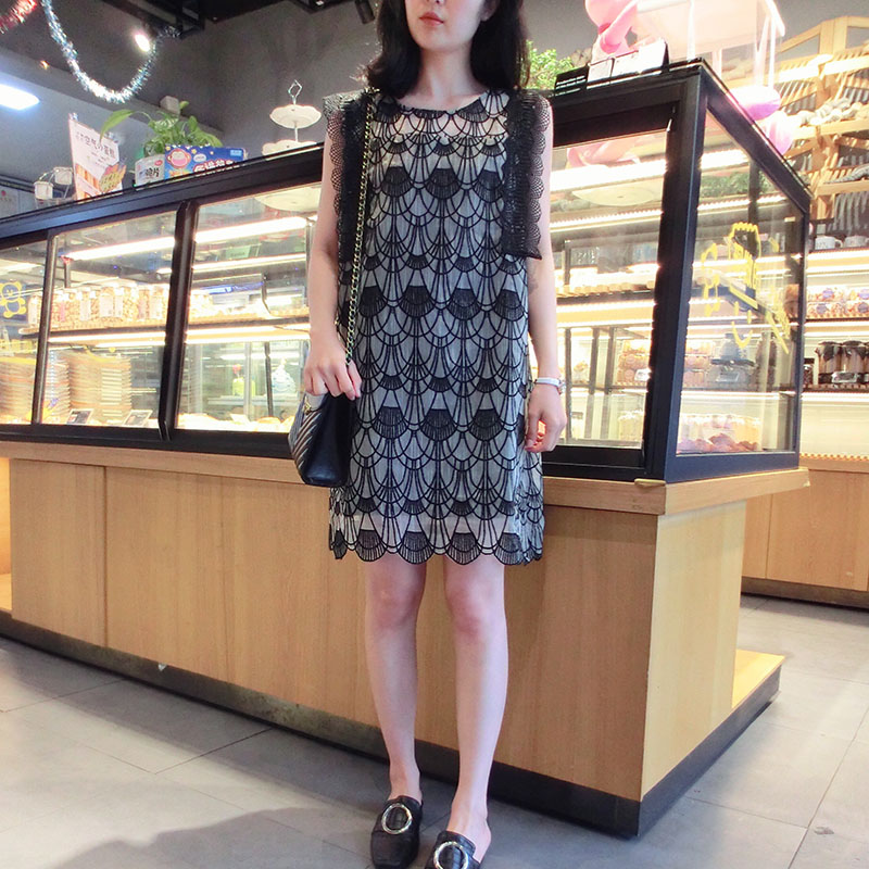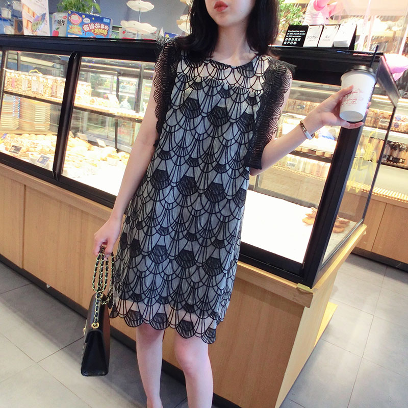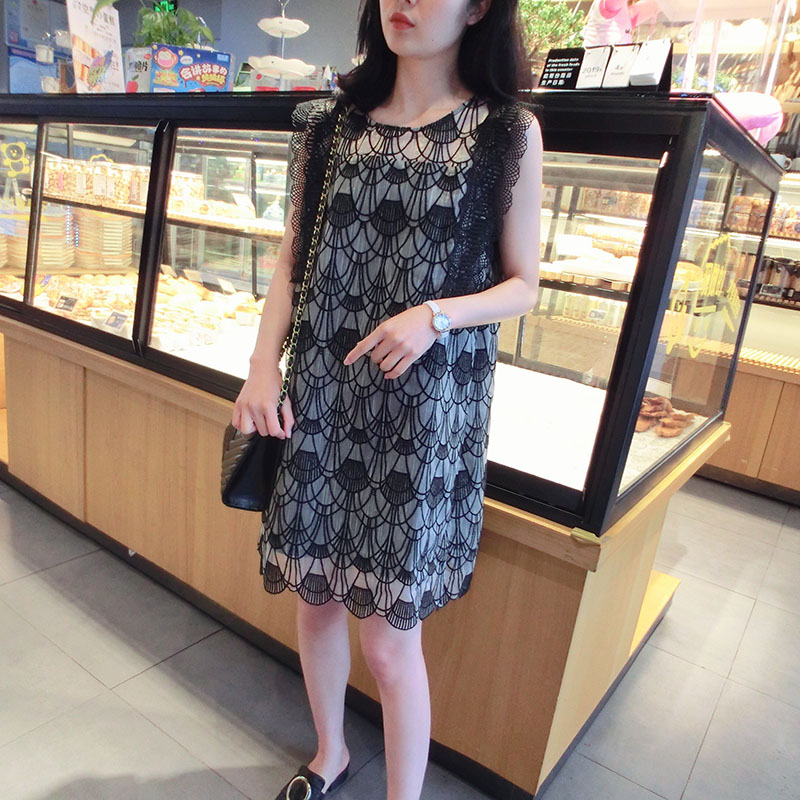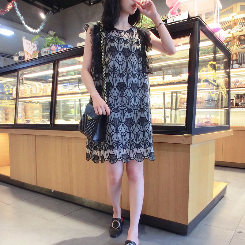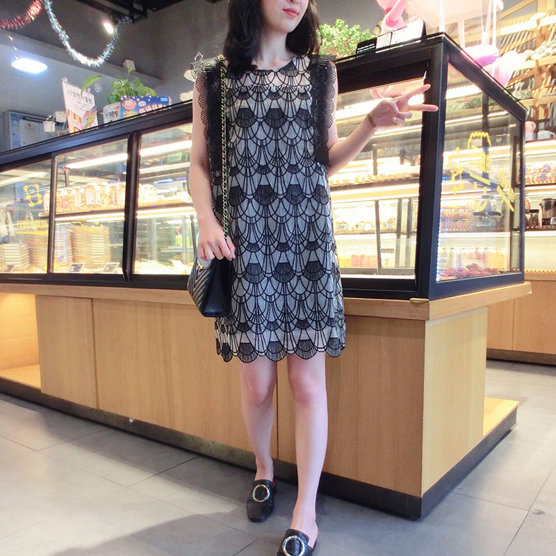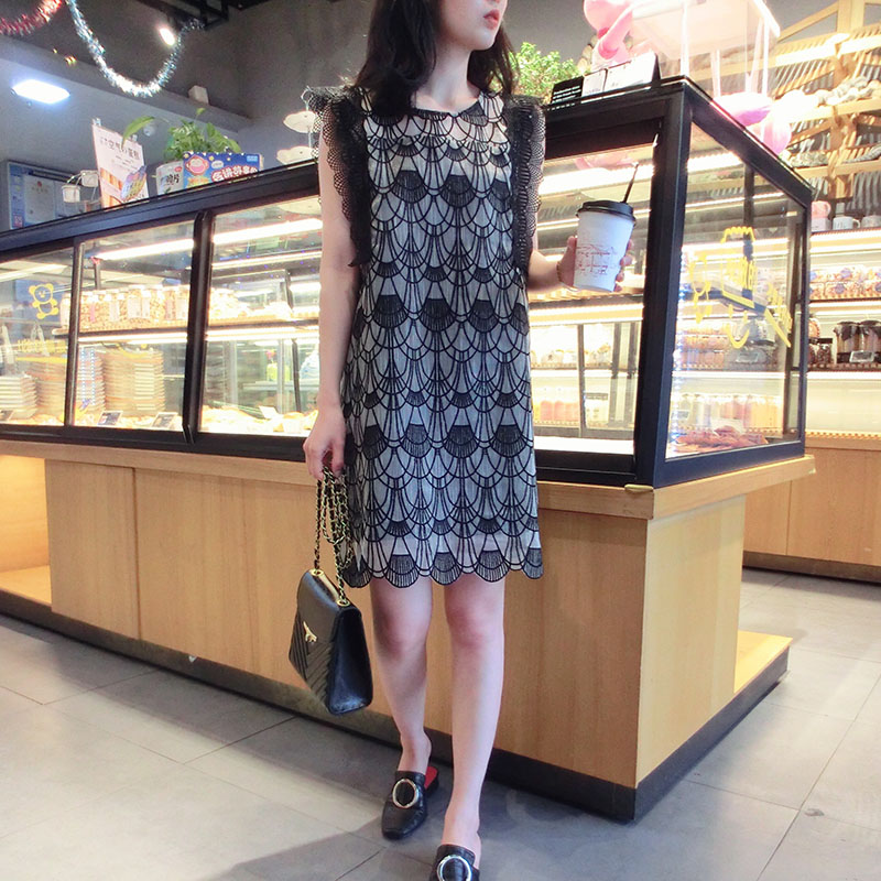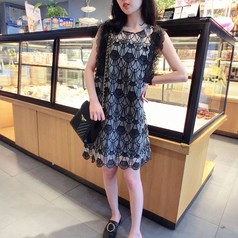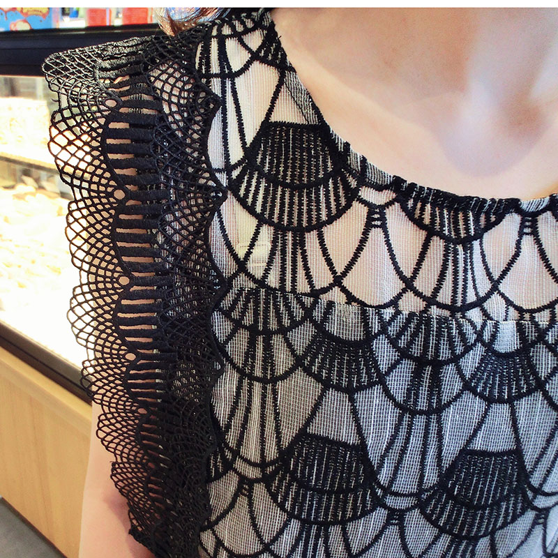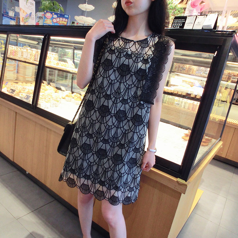 韓版2019夏季新款學院風寬松中長款顯瘦氣質無袖蕾絲花邊連衣裙女1入