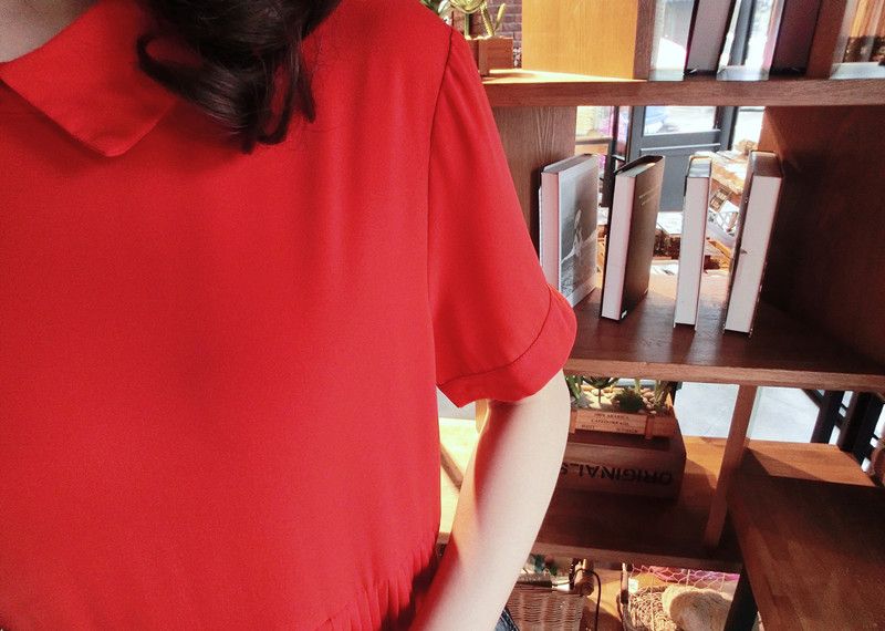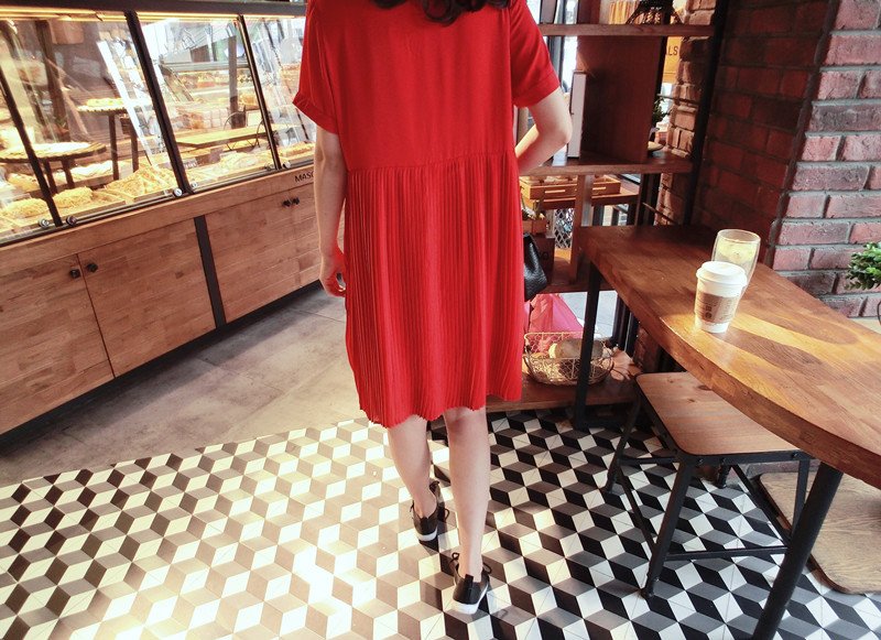 2019夏季女裝中長款韓版寬松顯瘦百褶裙高腰大碼雪紡連衣裙娃娃衫1入