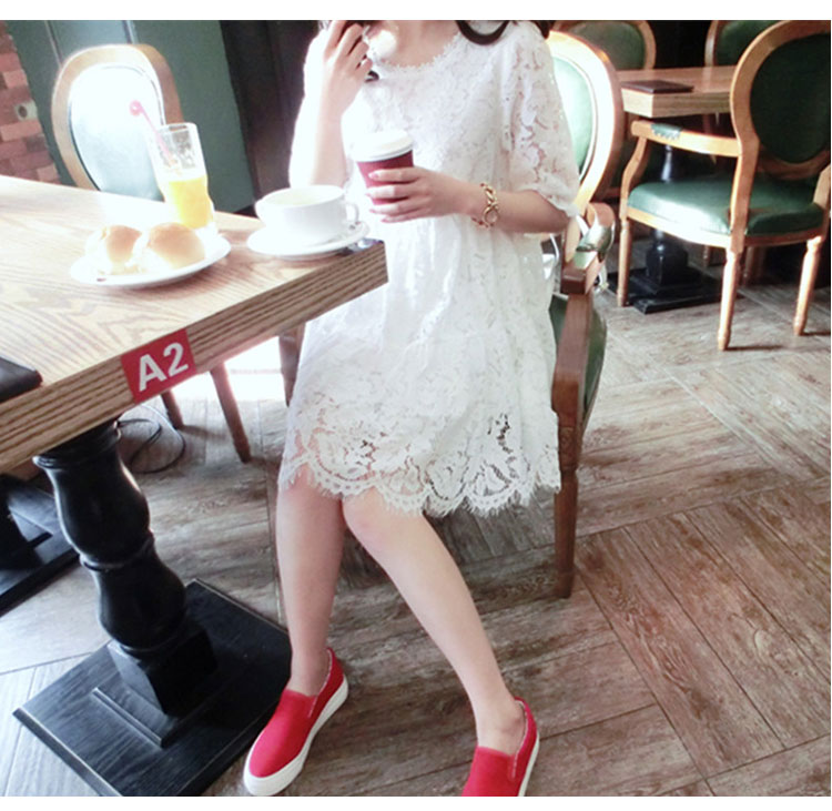 2018新款春季女裝寬松氣質顯瘦五分袖蕾絲中長款韓版連衣裙潮1入