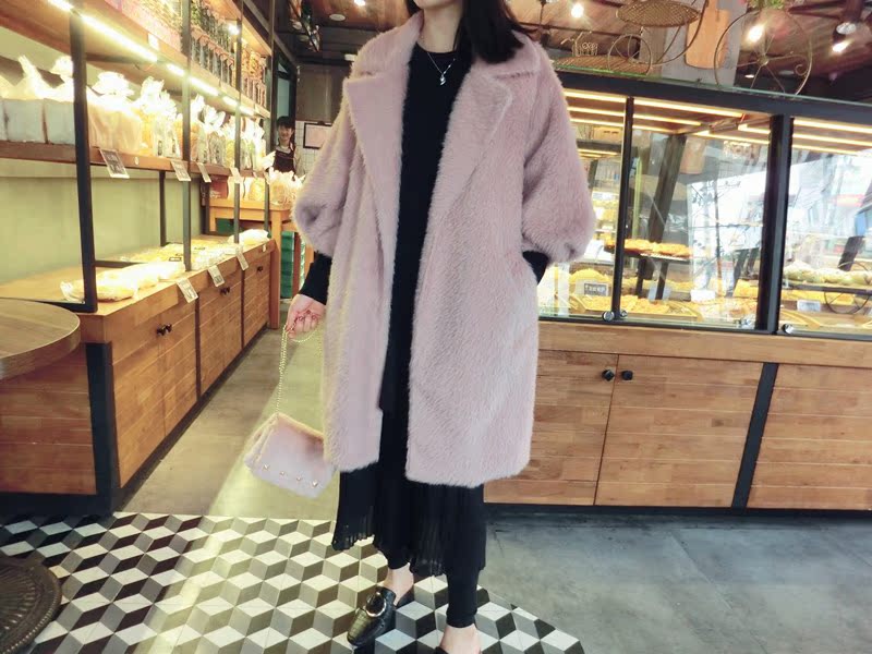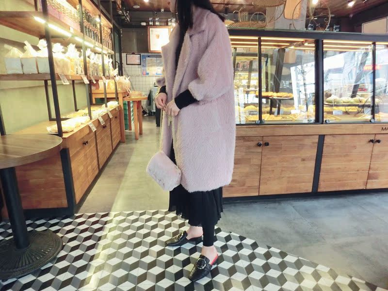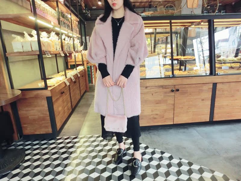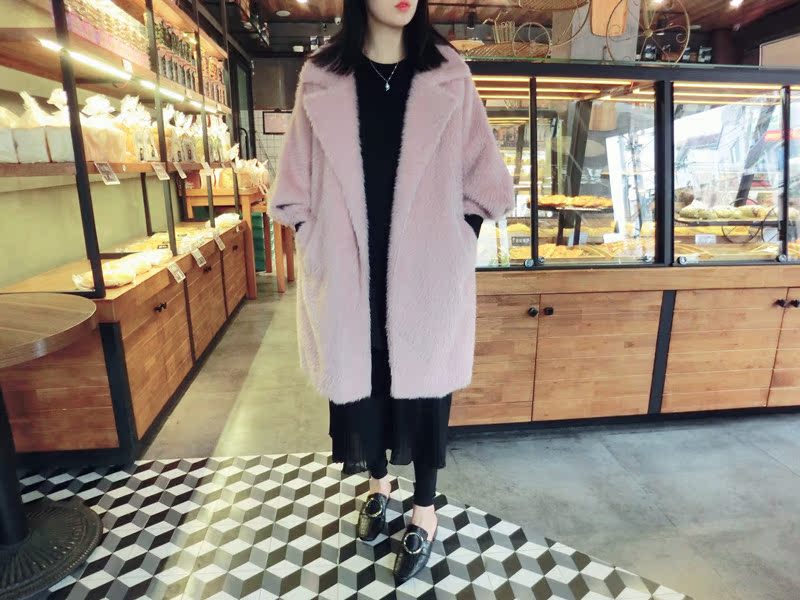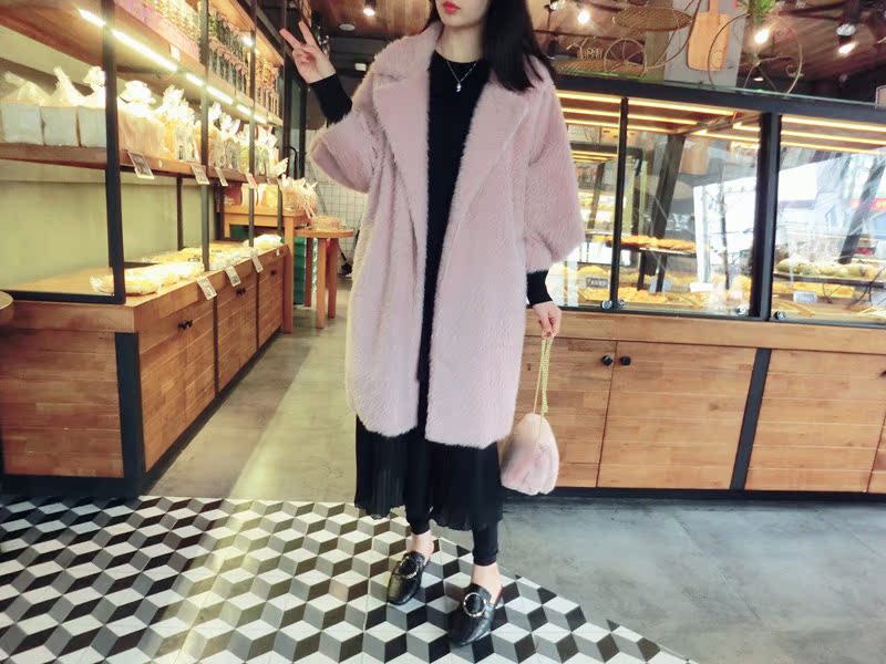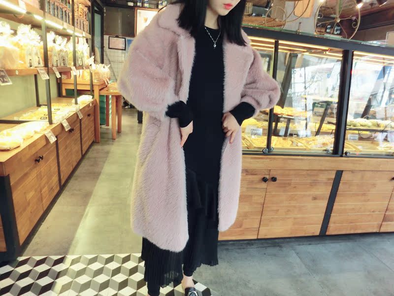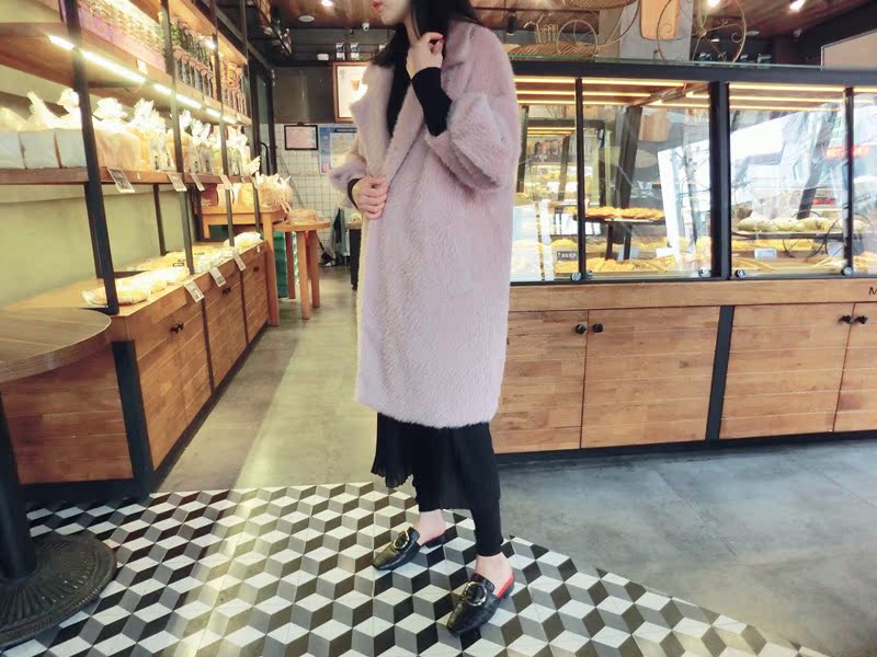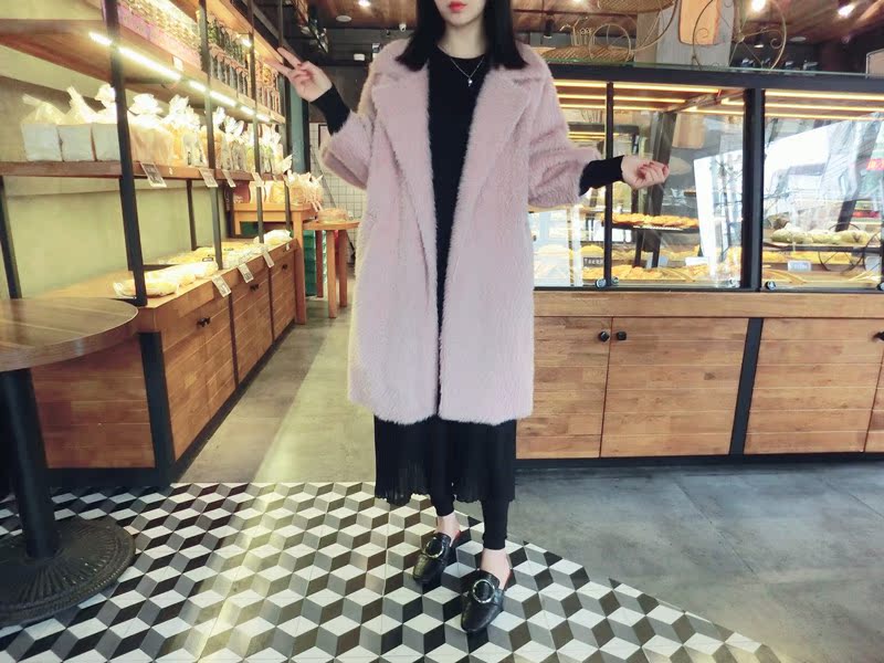 韓貨2018冬季新款中長款純色仿貂絨毛毛外套女時尚大牌1入