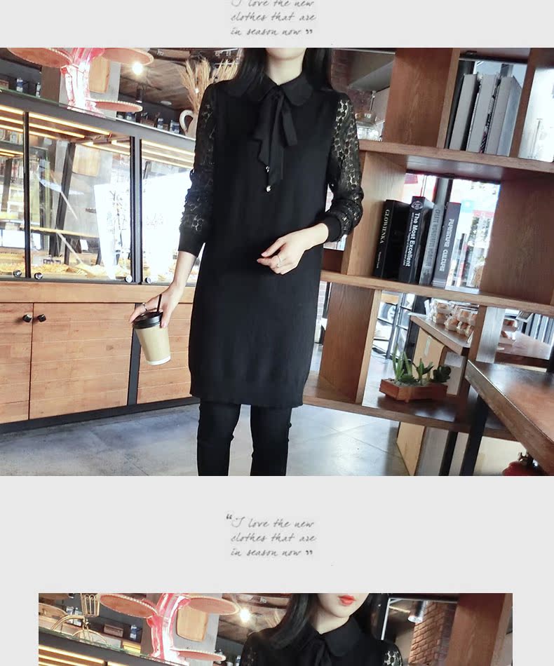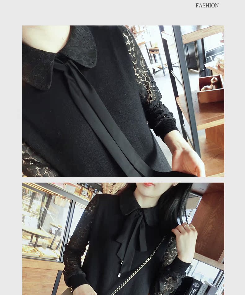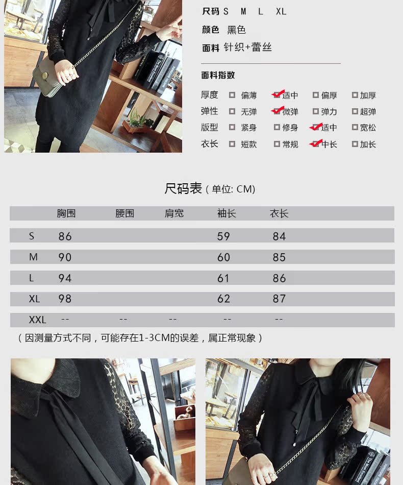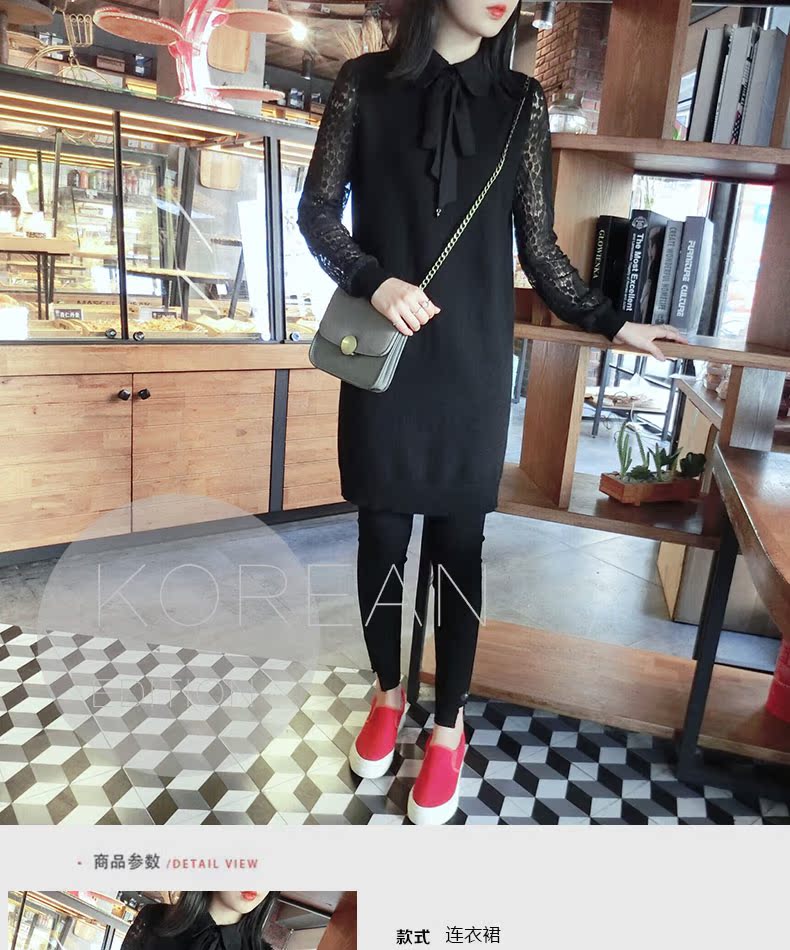 2018春季黑色拼接蕾絲打底連衣裙1入