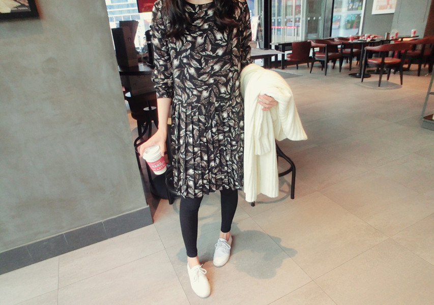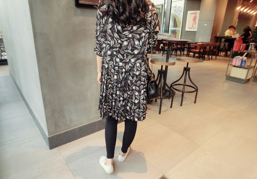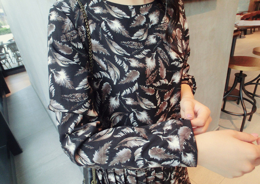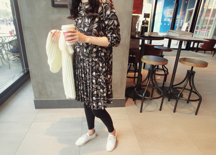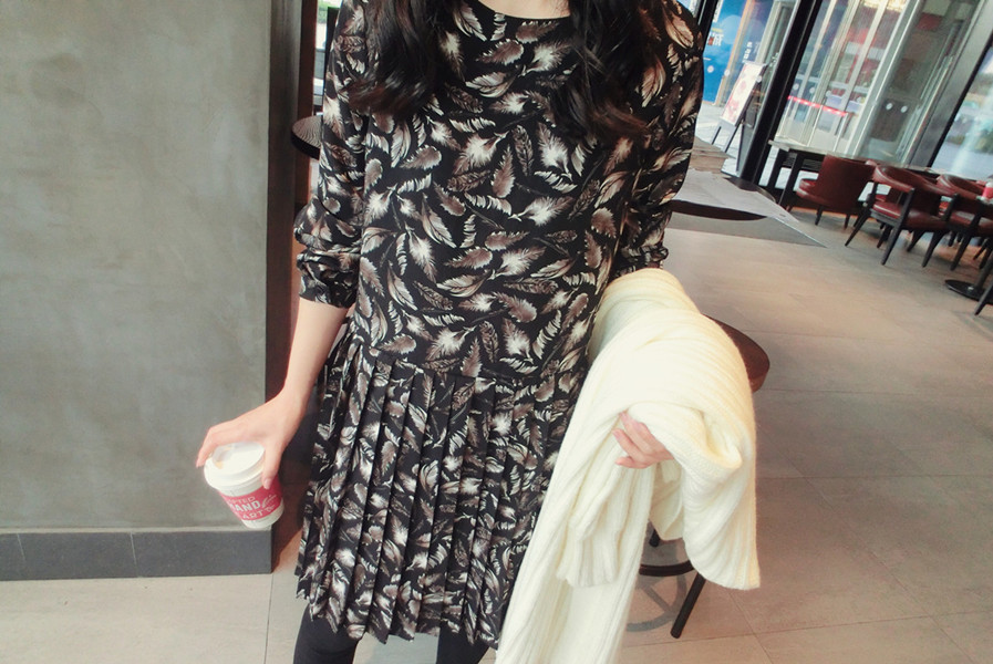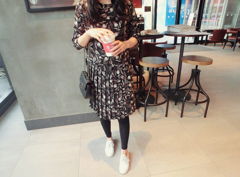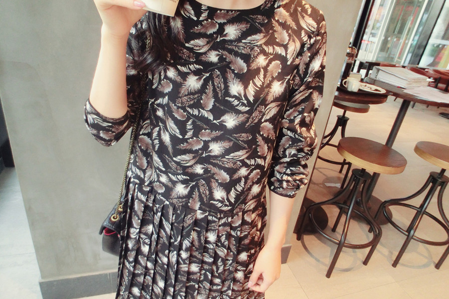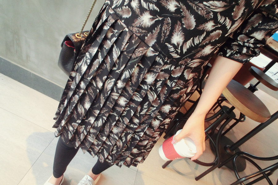 韓版中長款高腰百褶連衣裙韓版17秋季新品氣質寬松大碼打底裙潮女1入
