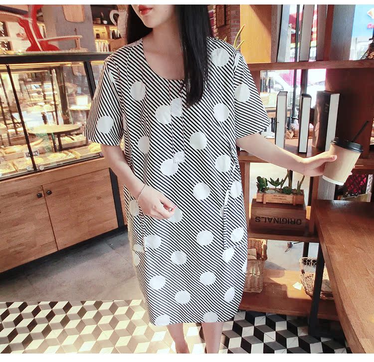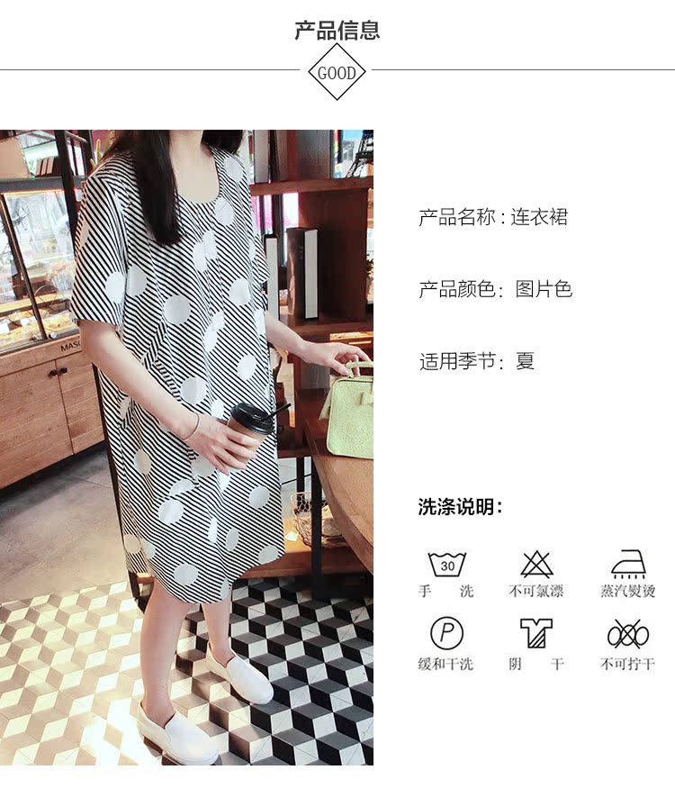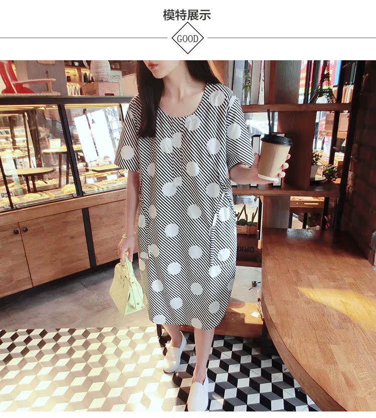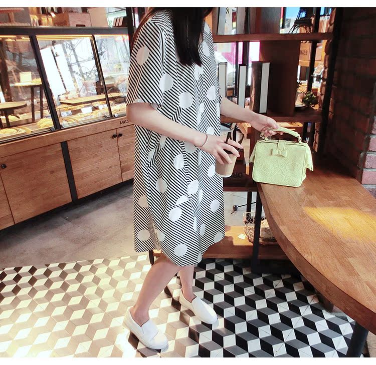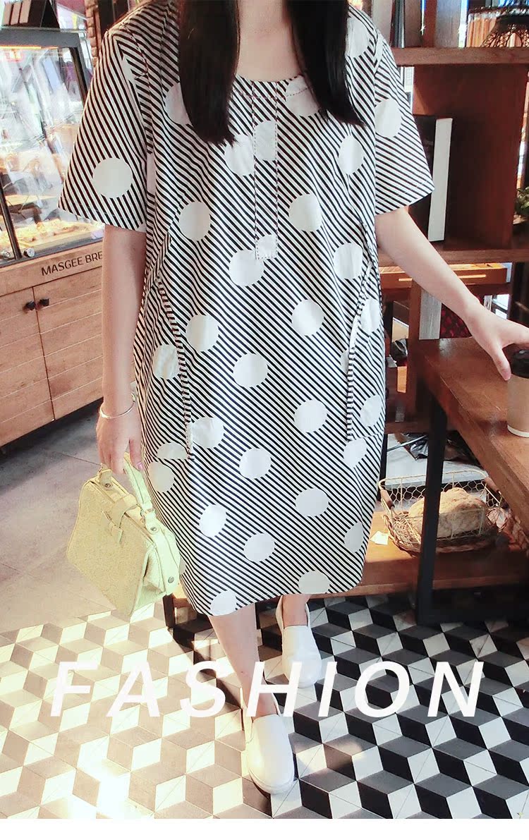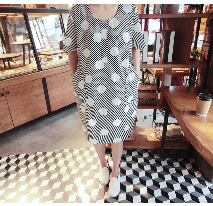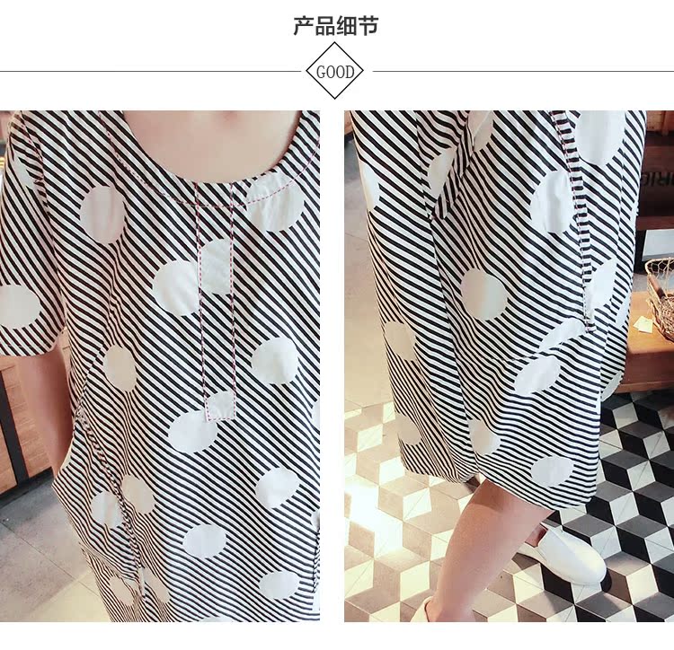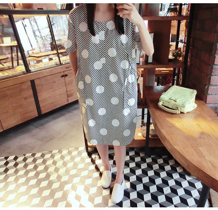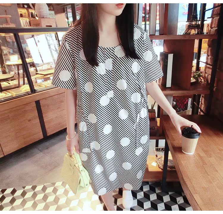 2017夏季新款清新韓版波點口袋裙子寬松顯瘦大碼短袖連衣裙女1入