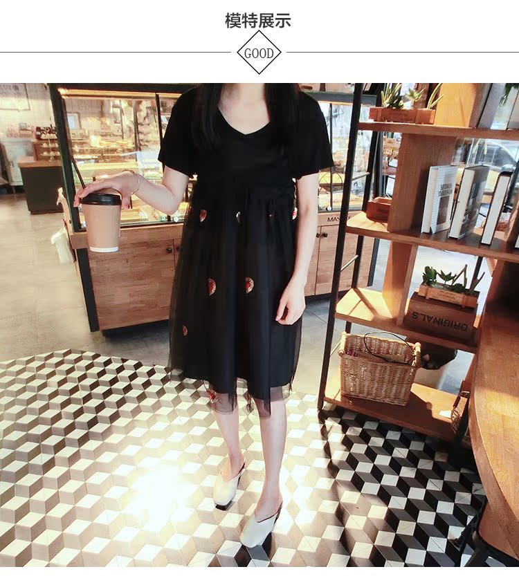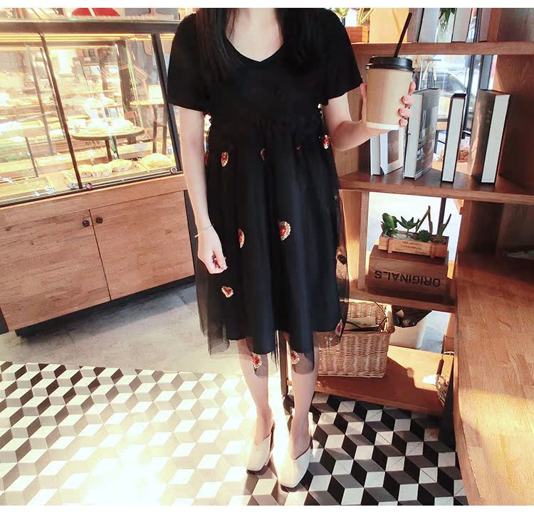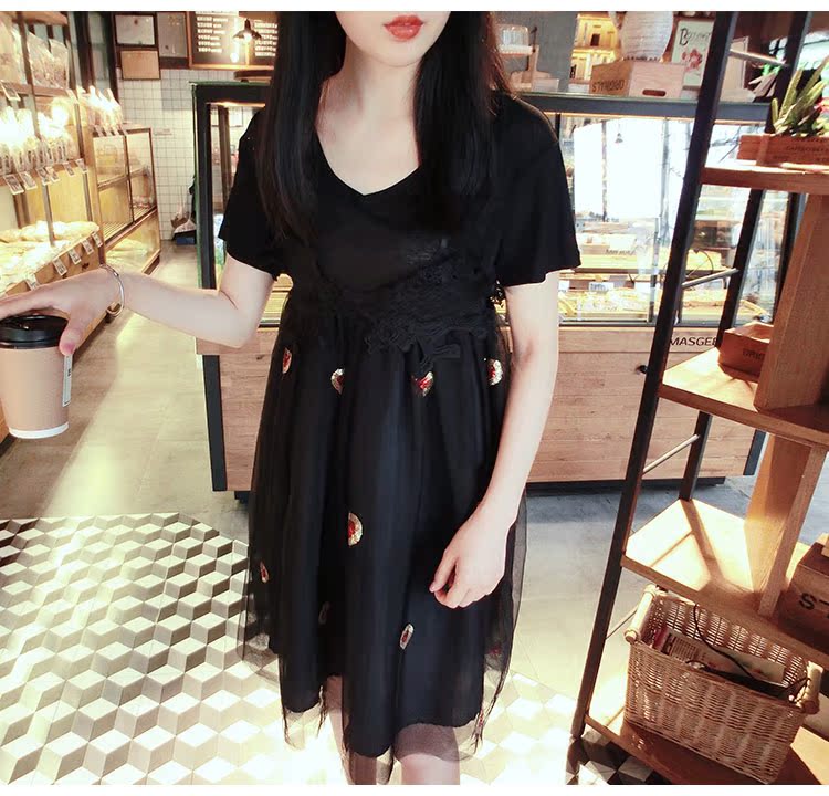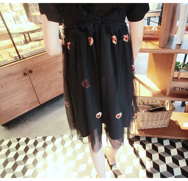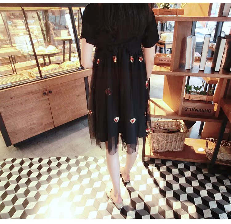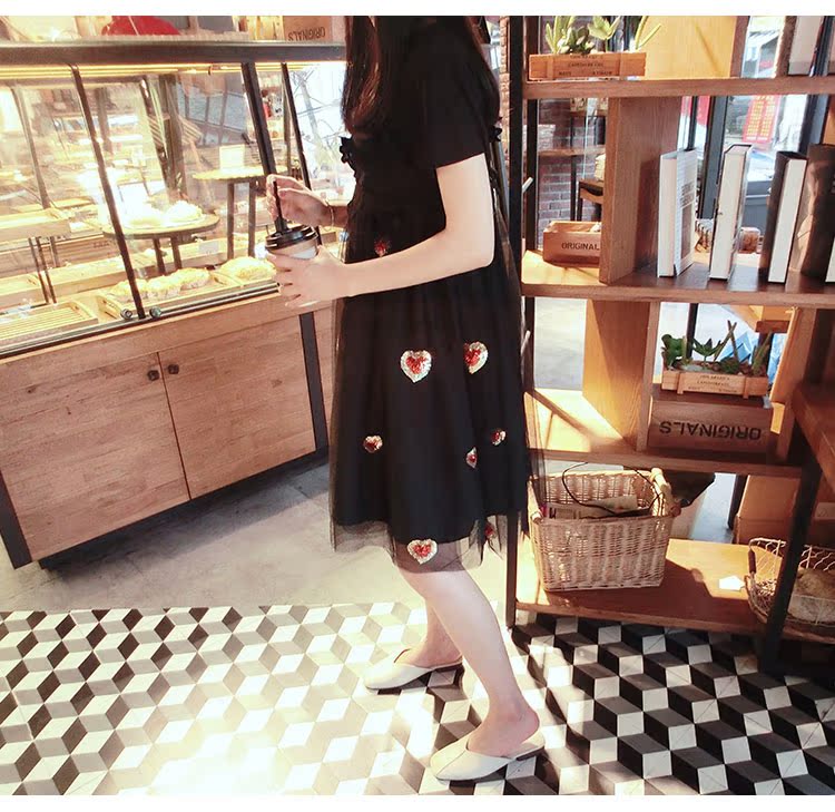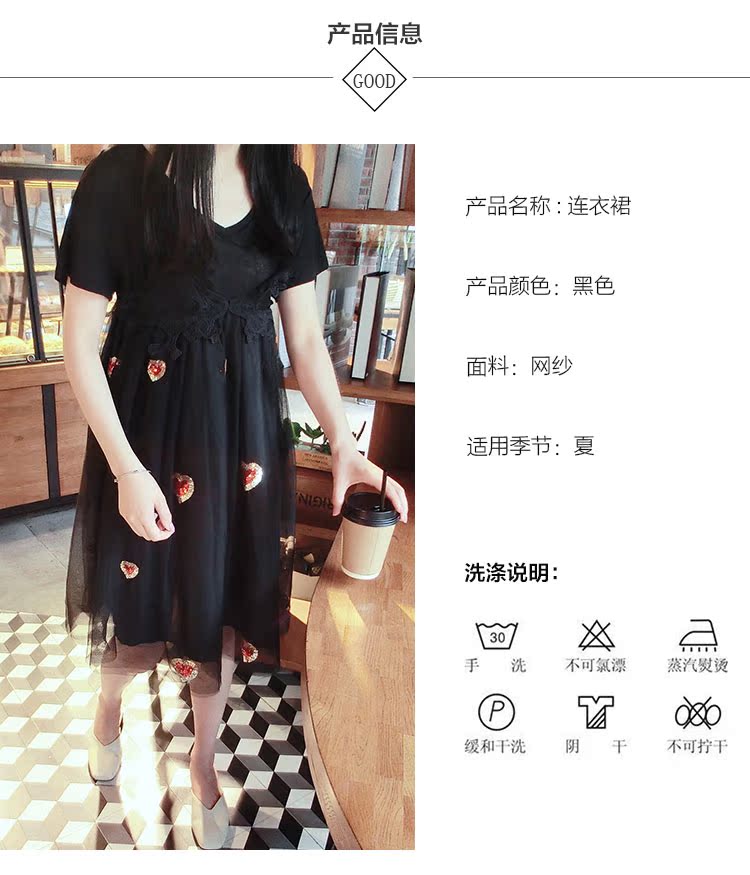 2017夏裝女裝韓版少女愛心中長款蓬蓬裙吊帶裙網紗連衣裙1入
