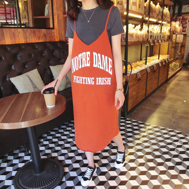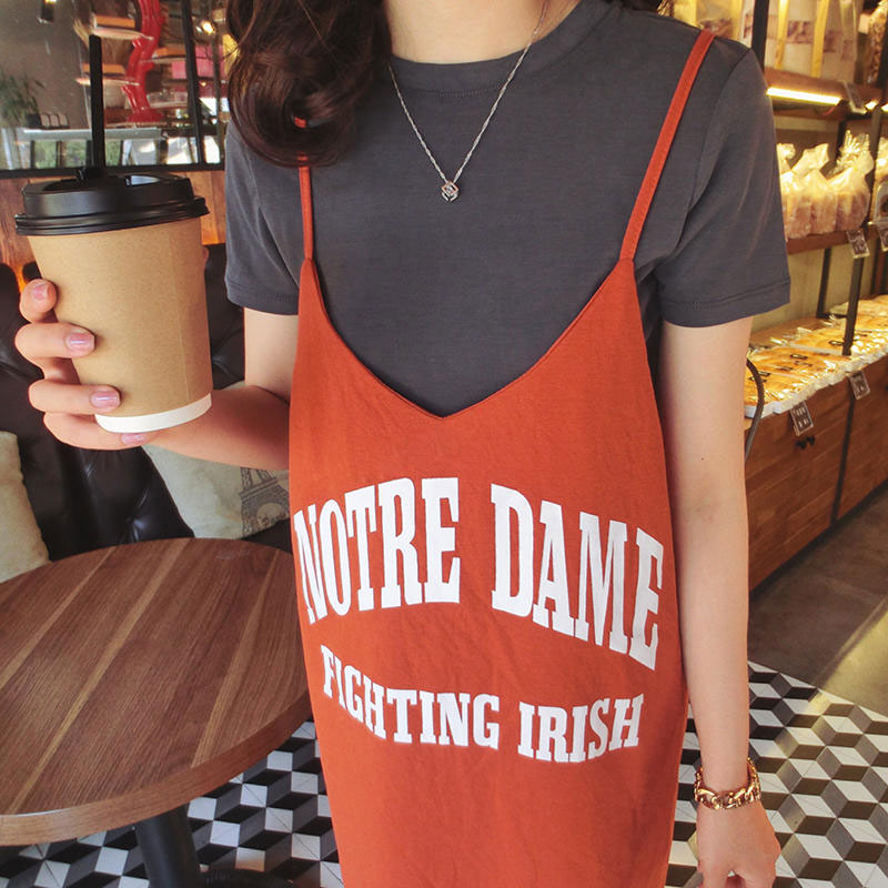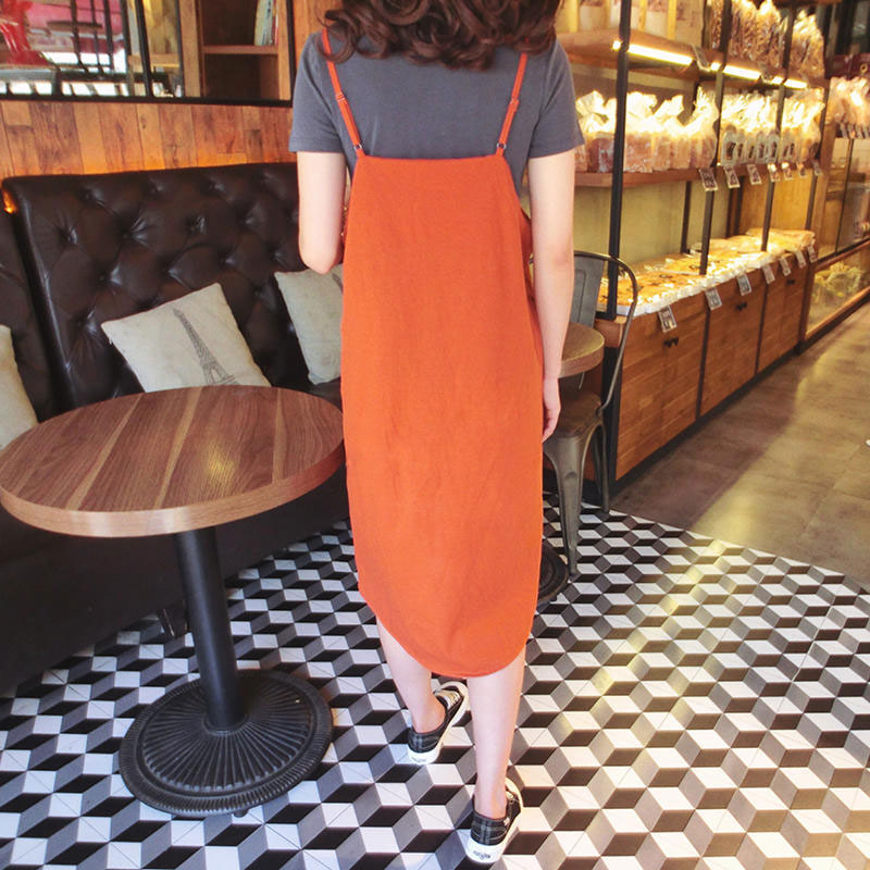 2017夏季新款V領吊帶裙中長款寬松顯瘦學生連衣裙女裝韓版套頭1入