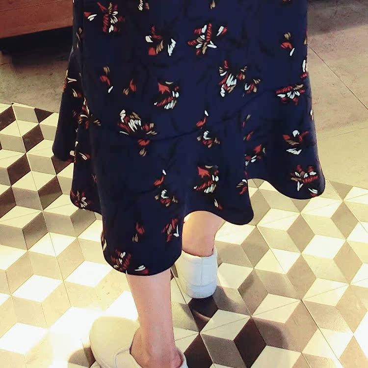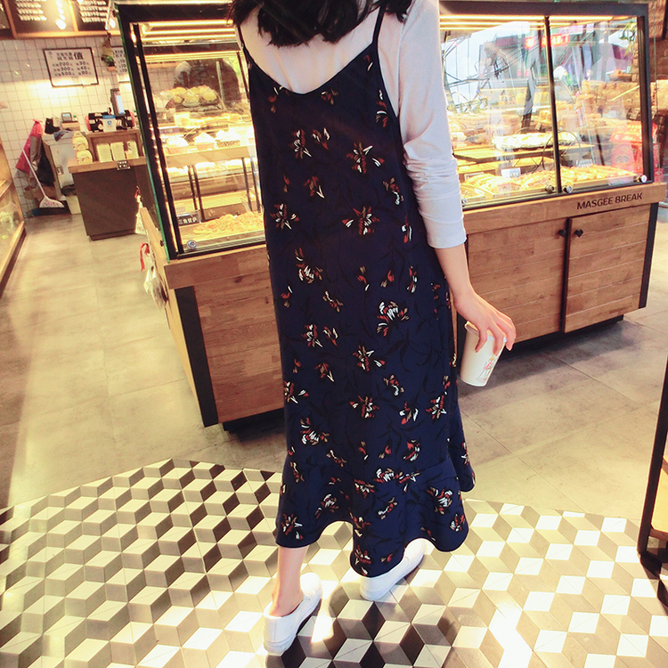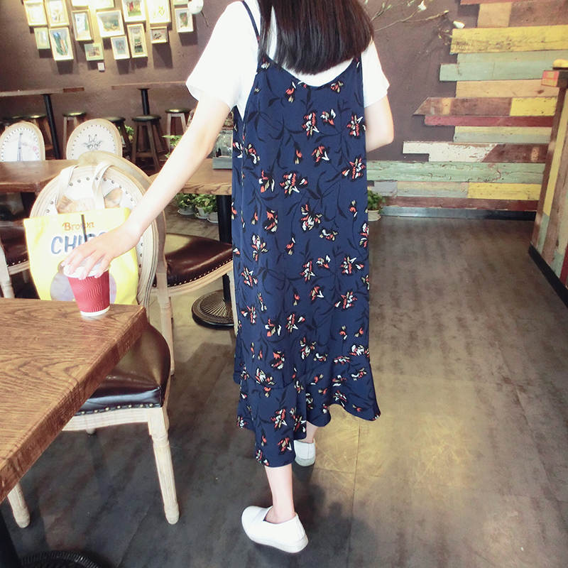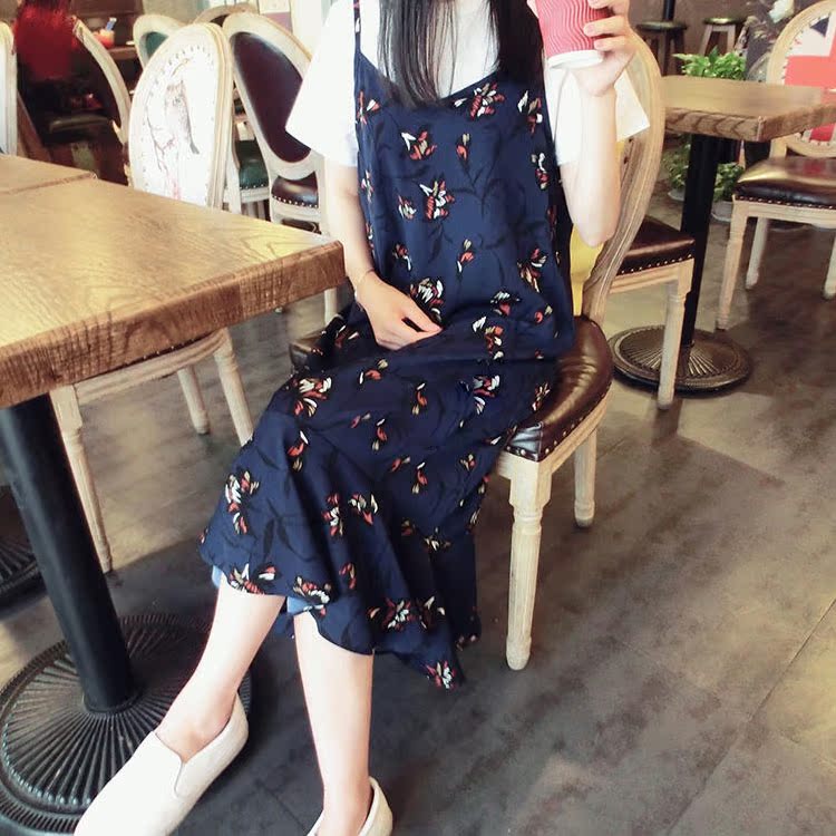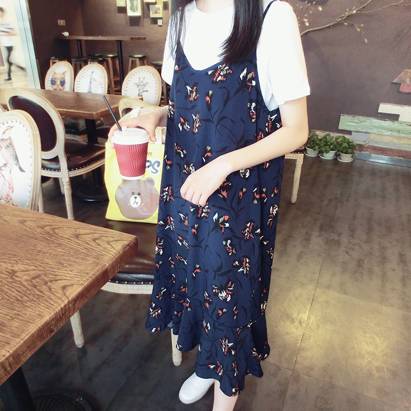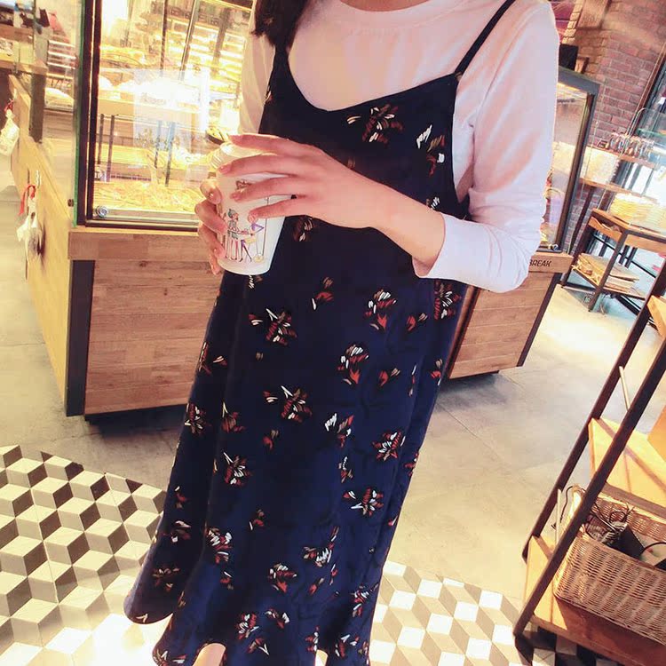 韓版2017春季新品寬松復古碎花連衣裙 東大門氣質大碼顯瘦兩件套1入