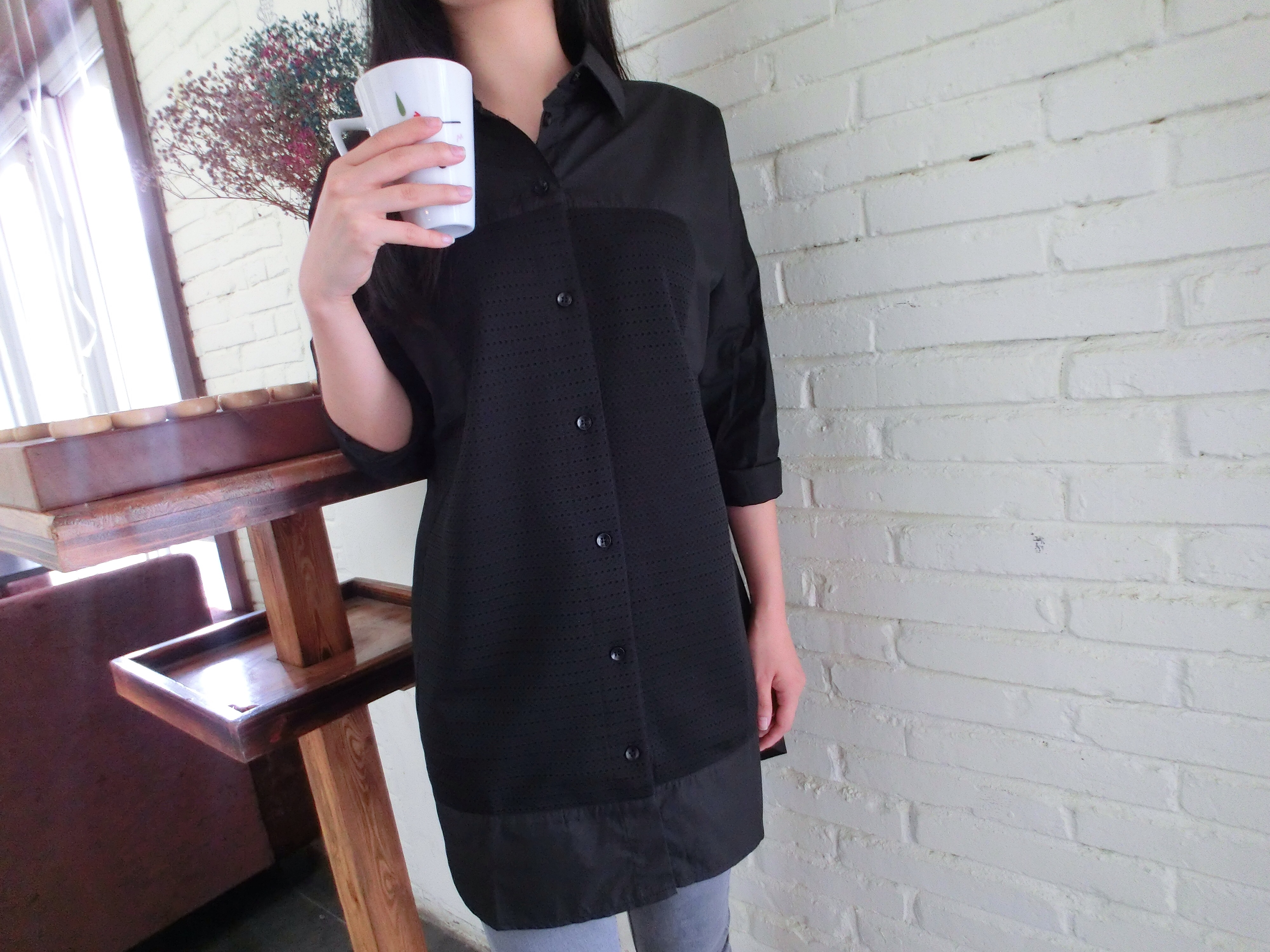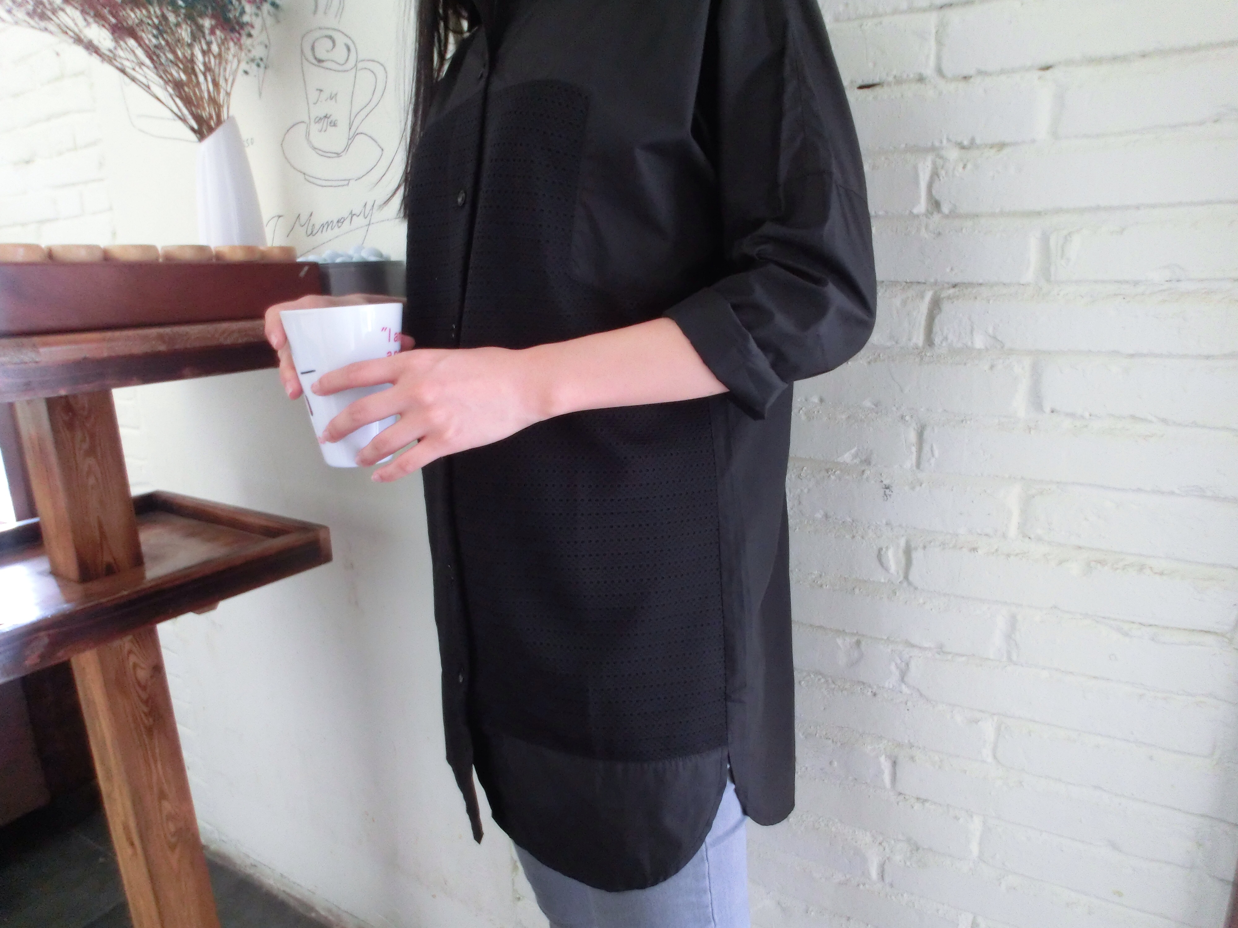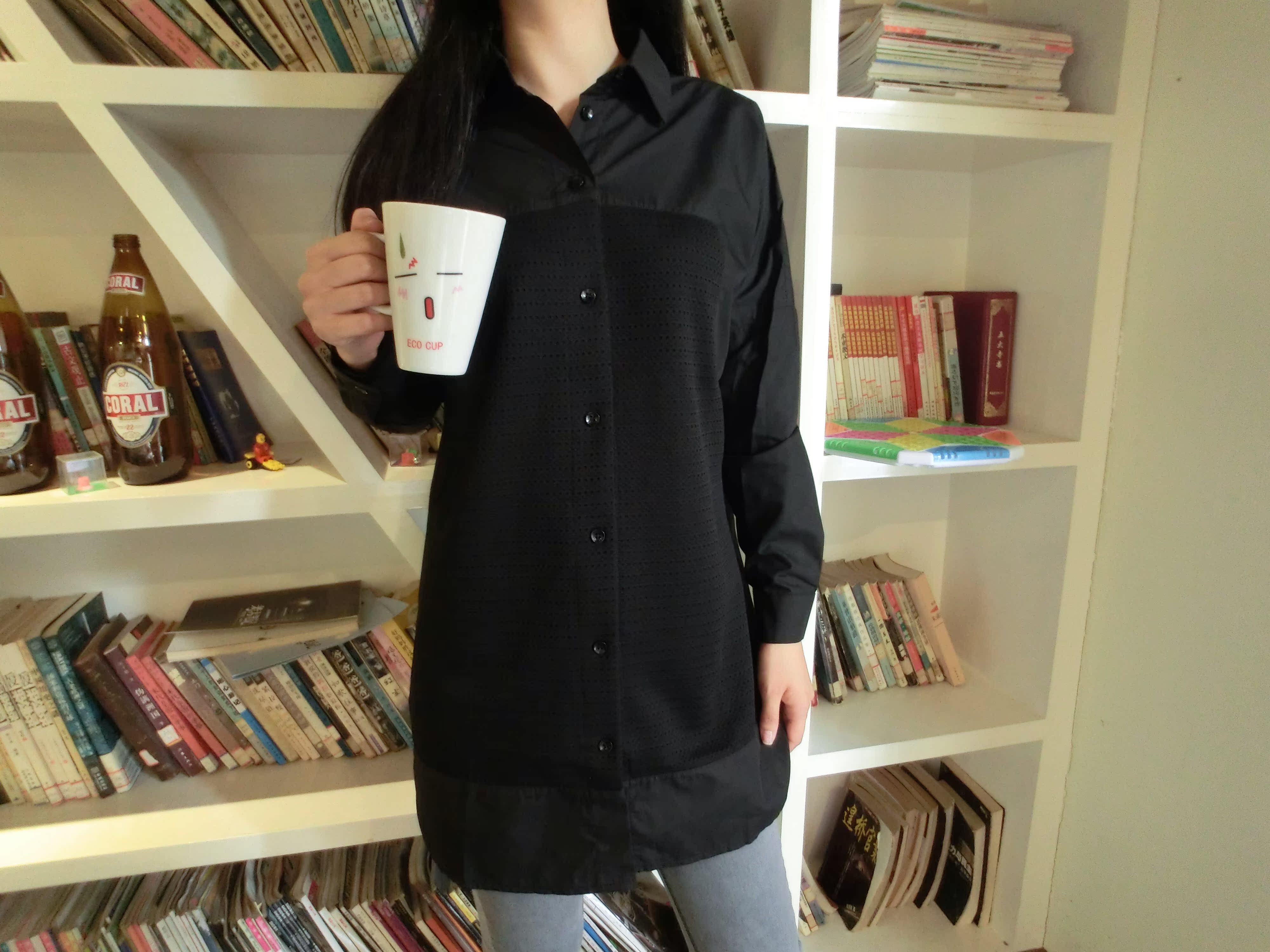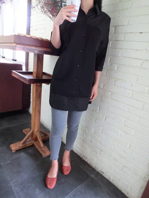 韓國2018春季季韓潮寬松大碼小清新純色襯衫裙長款休閑女襯衫1入
