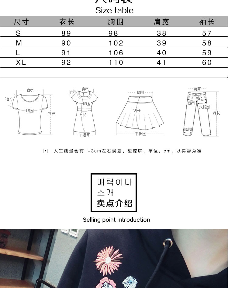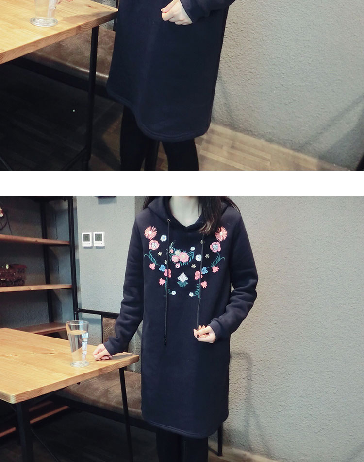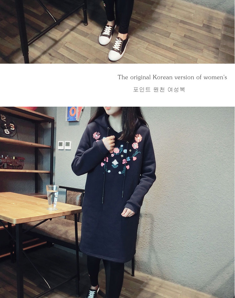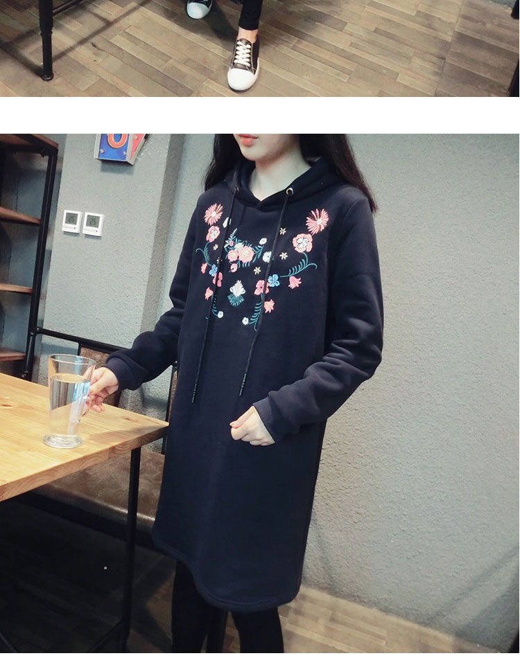 2018秋新款刺繡花連衣裙中長款衛衣裙韓版寬松顯瘦氣質連帽1入