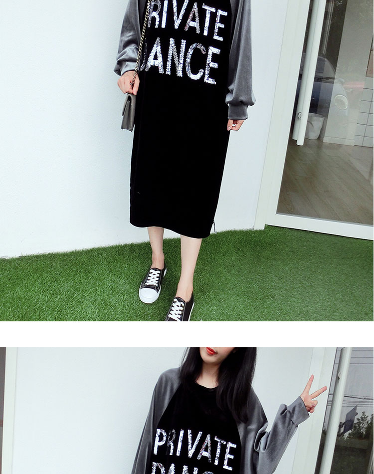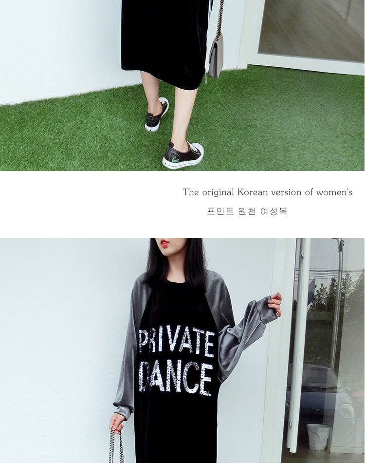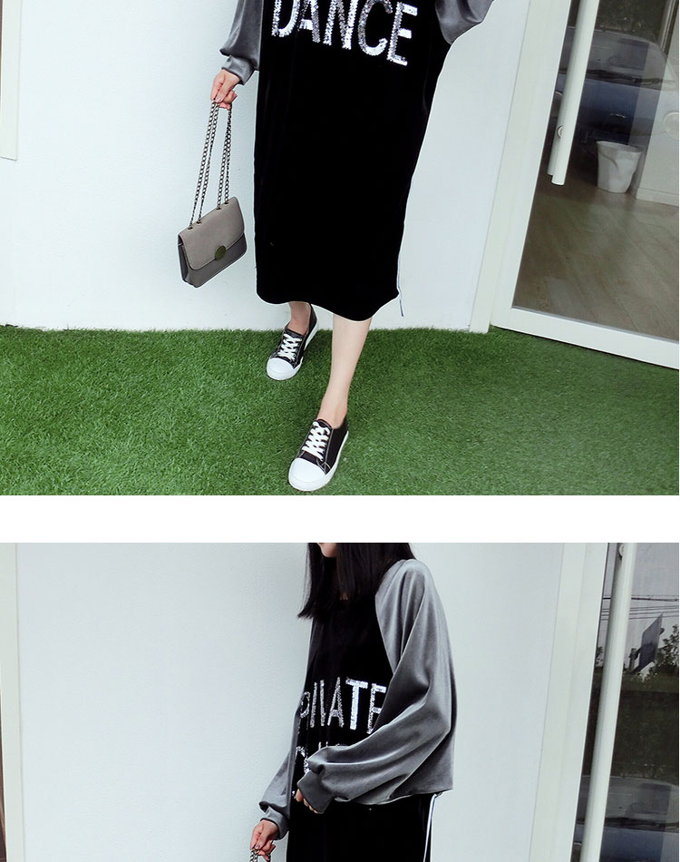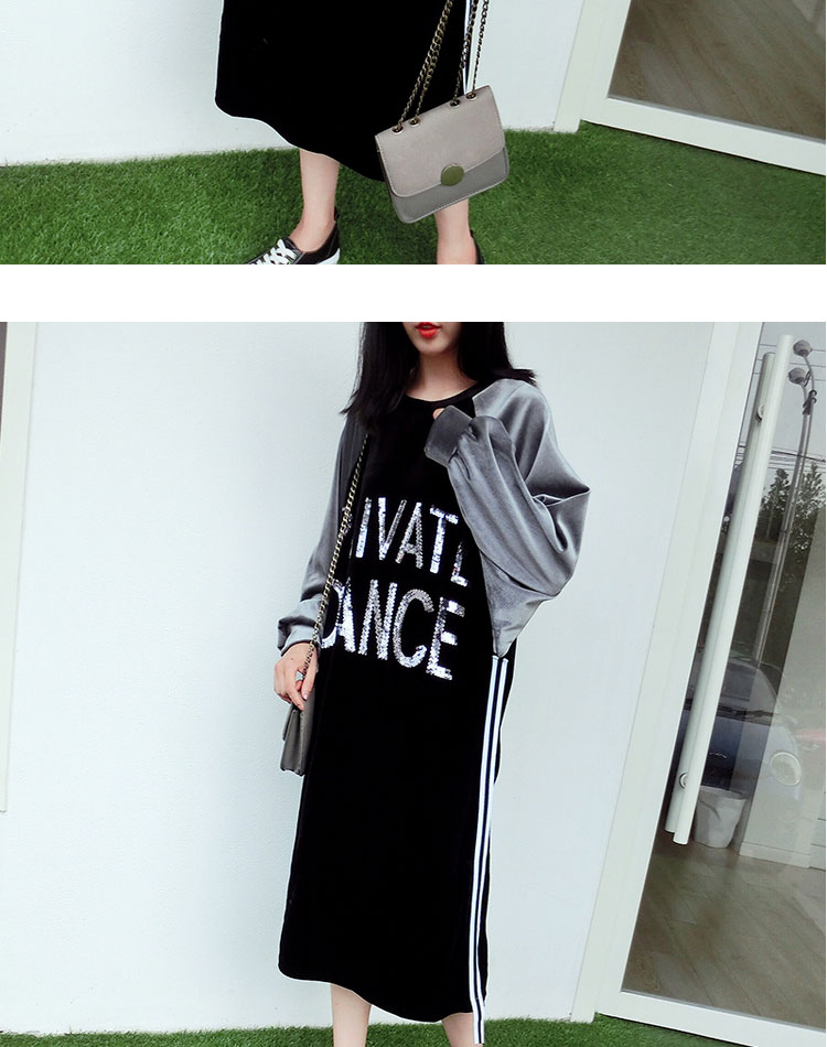 2018春季新款撞色亮片連衣裙中長款韓版字母寬松顯瘦1入