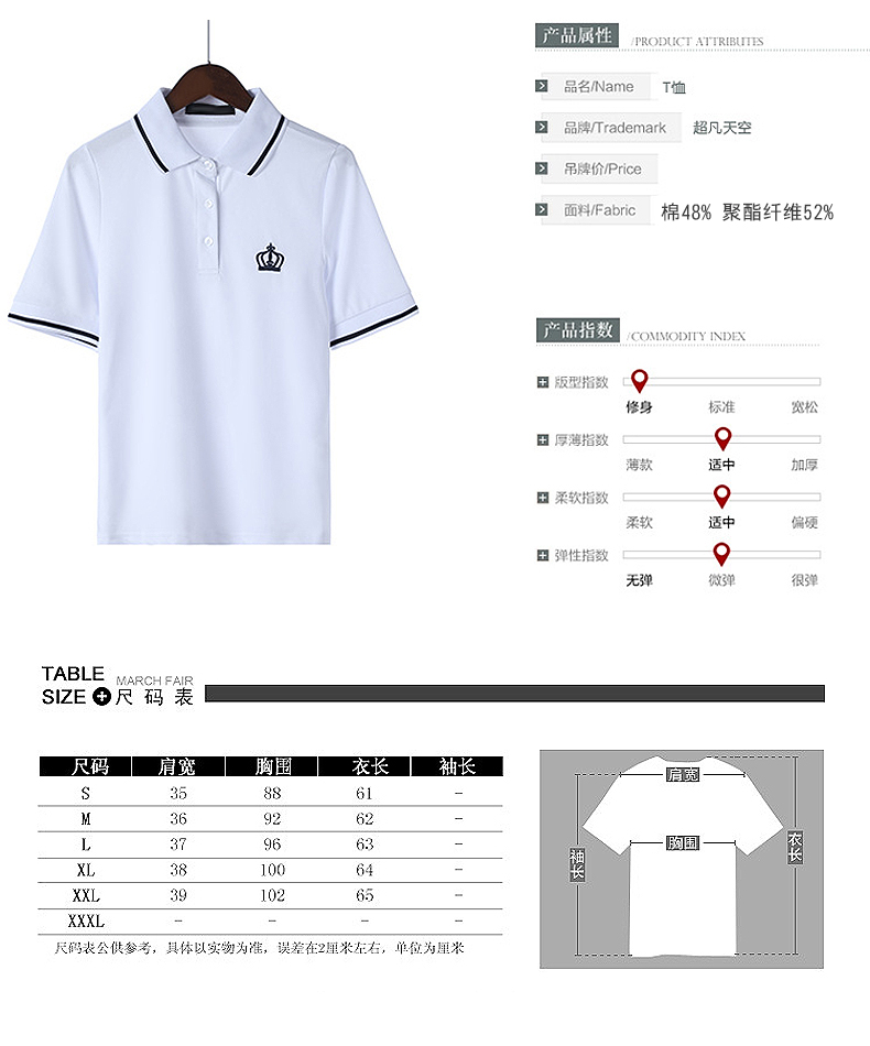ins打底工作服女白色翻領T恤短袖上衣刺繡學生團隊班服軟妹polo衫1入