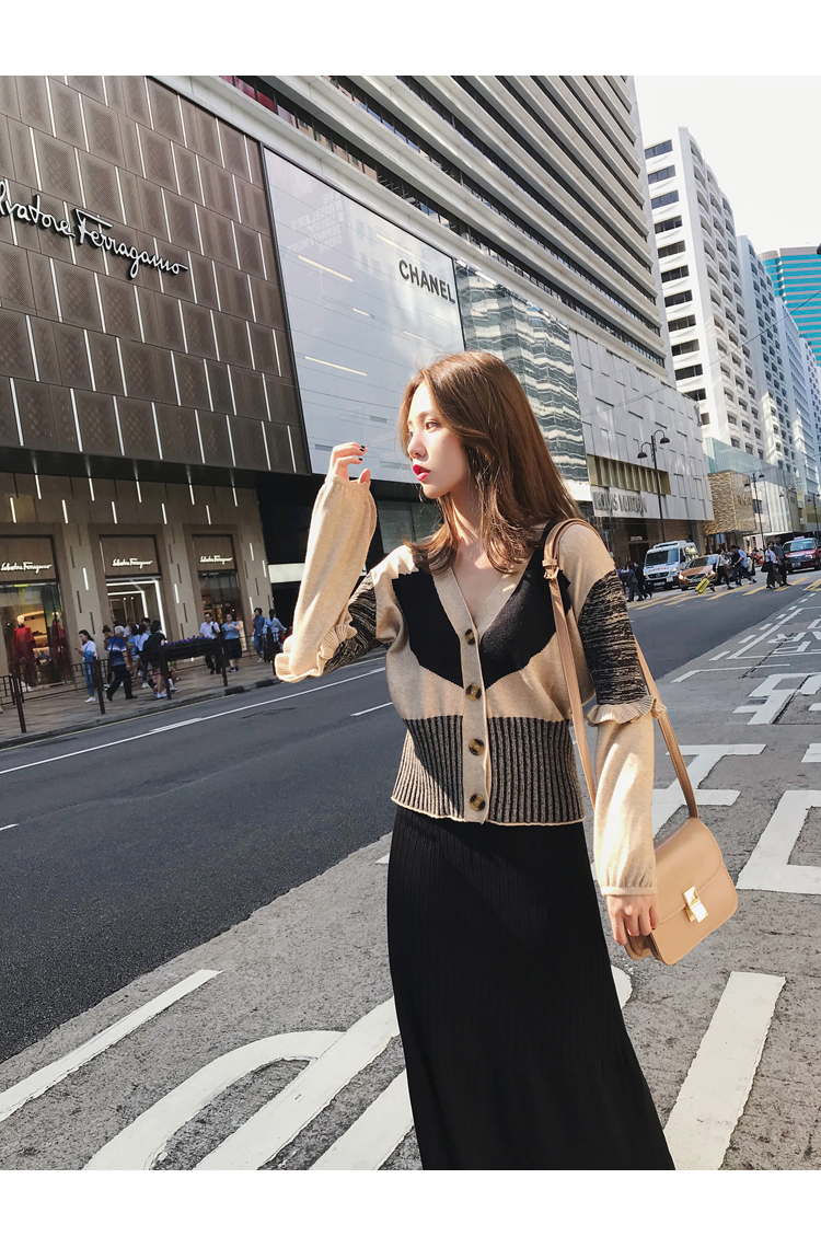 [2]秋冬2019新款網紅女神套裝裙子港味復古氣質時尚毛衣加裙子兩件套1入