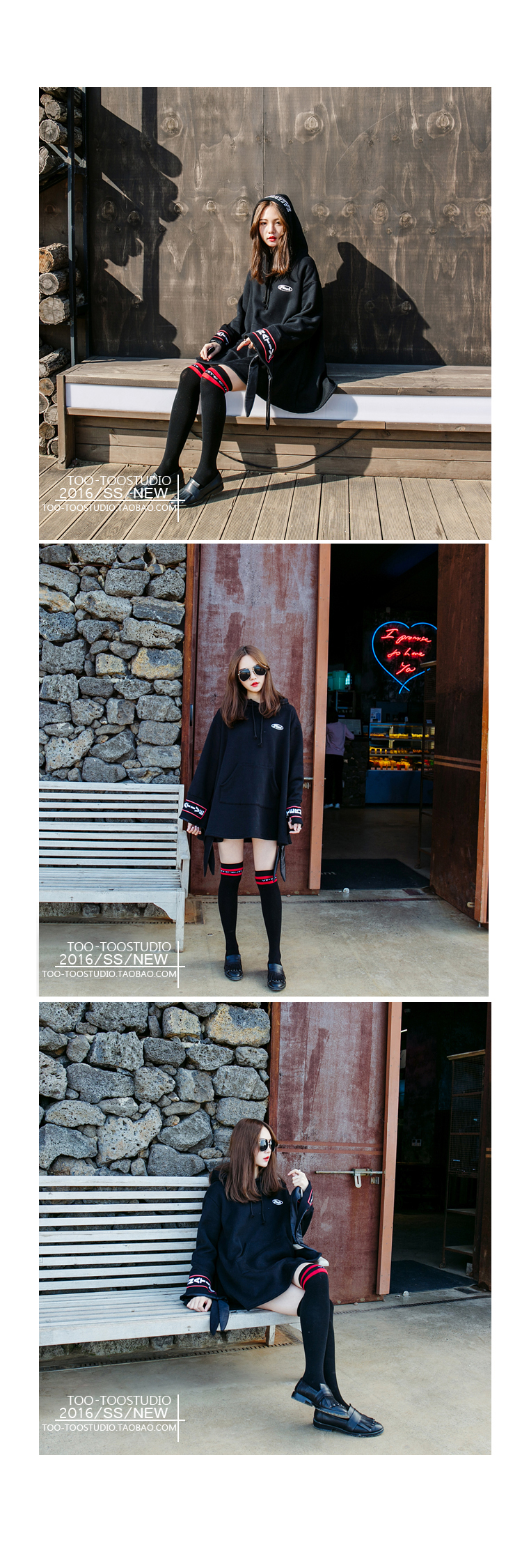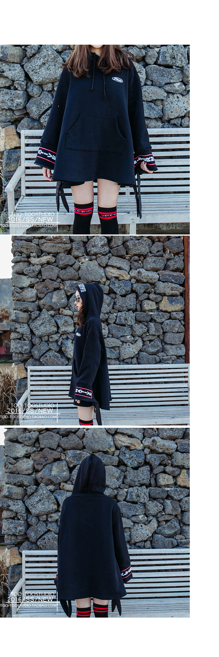 [2]松松垮垮酷超火衛衣女2019新款春秋中長款慵懶風港風學生連帽上衣1入