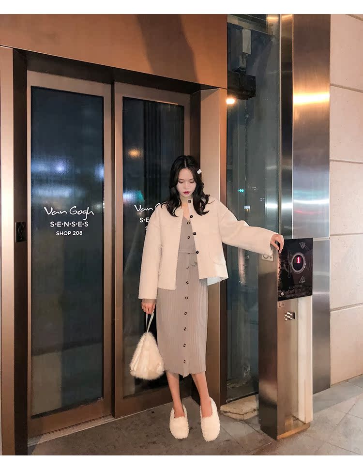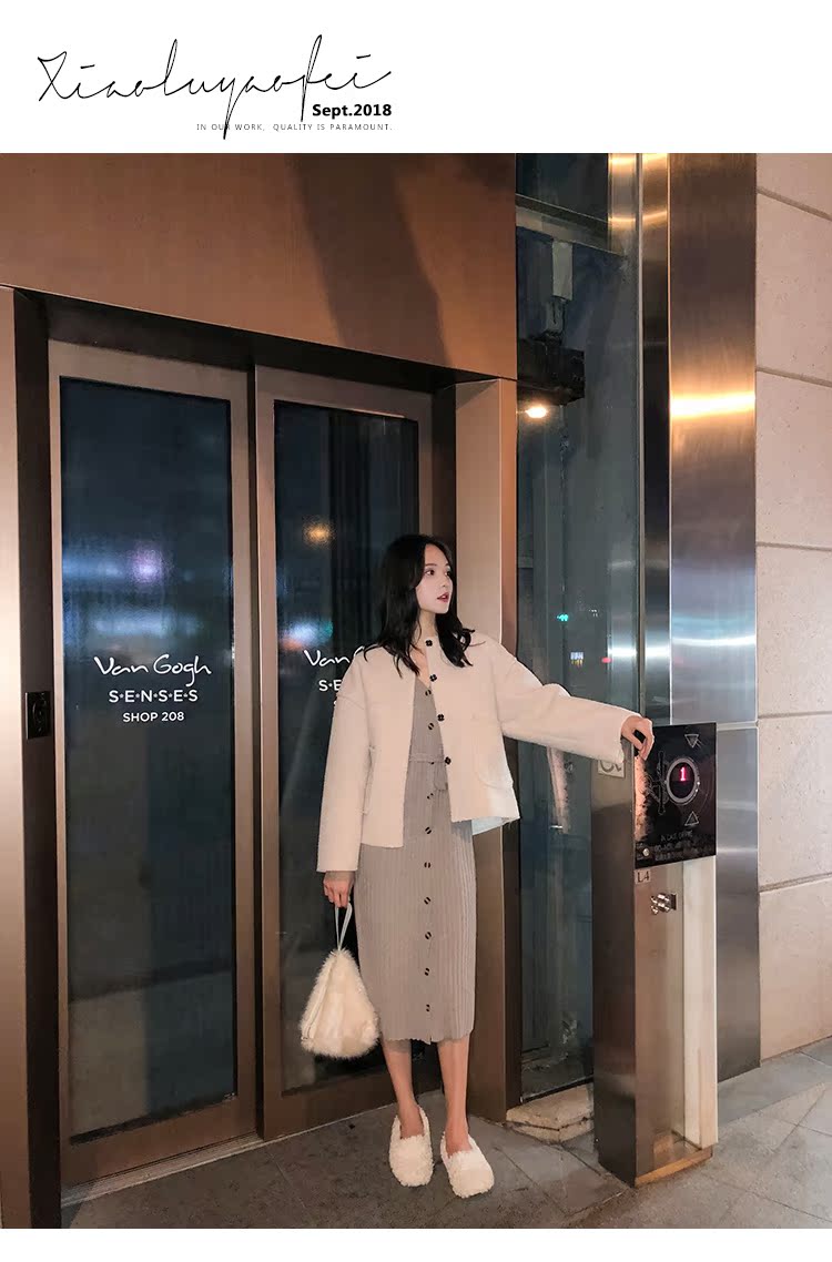 [2]法式復古針織冬裙晚秋洋氣女神范外套法國小眾連衣裙兩件套裝女冬1入