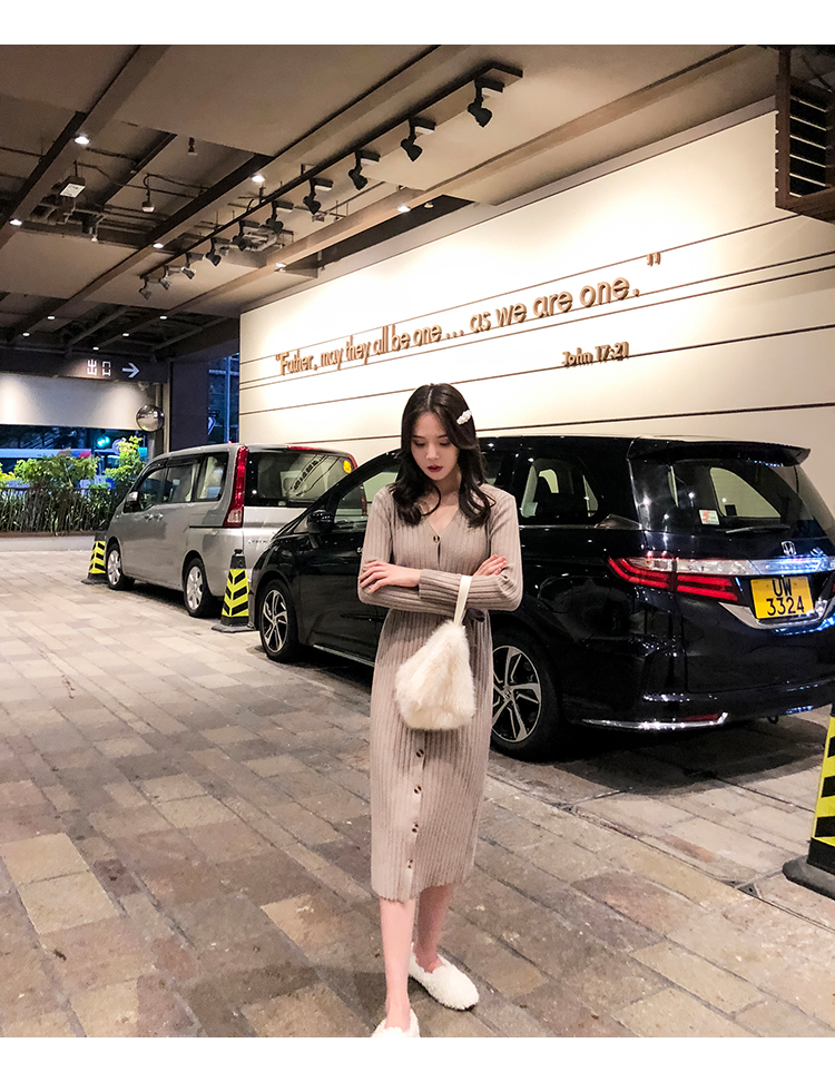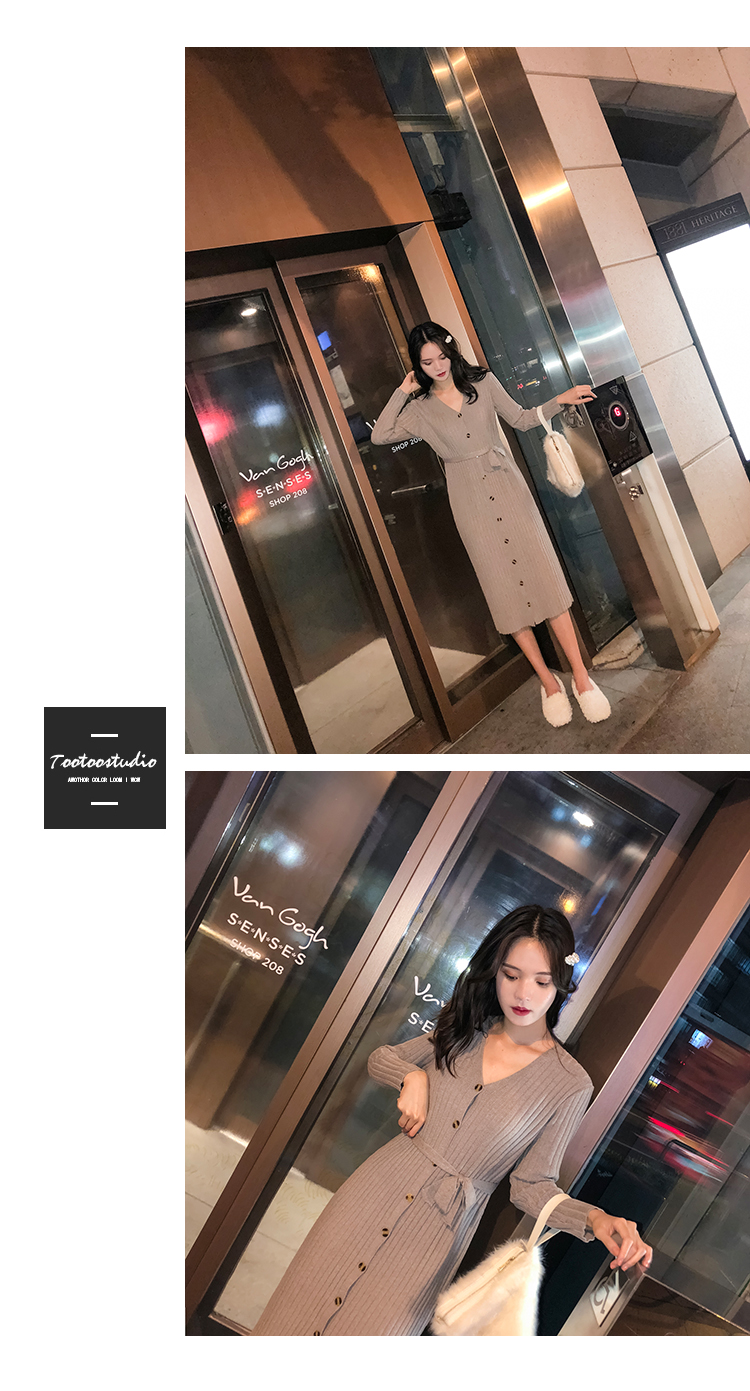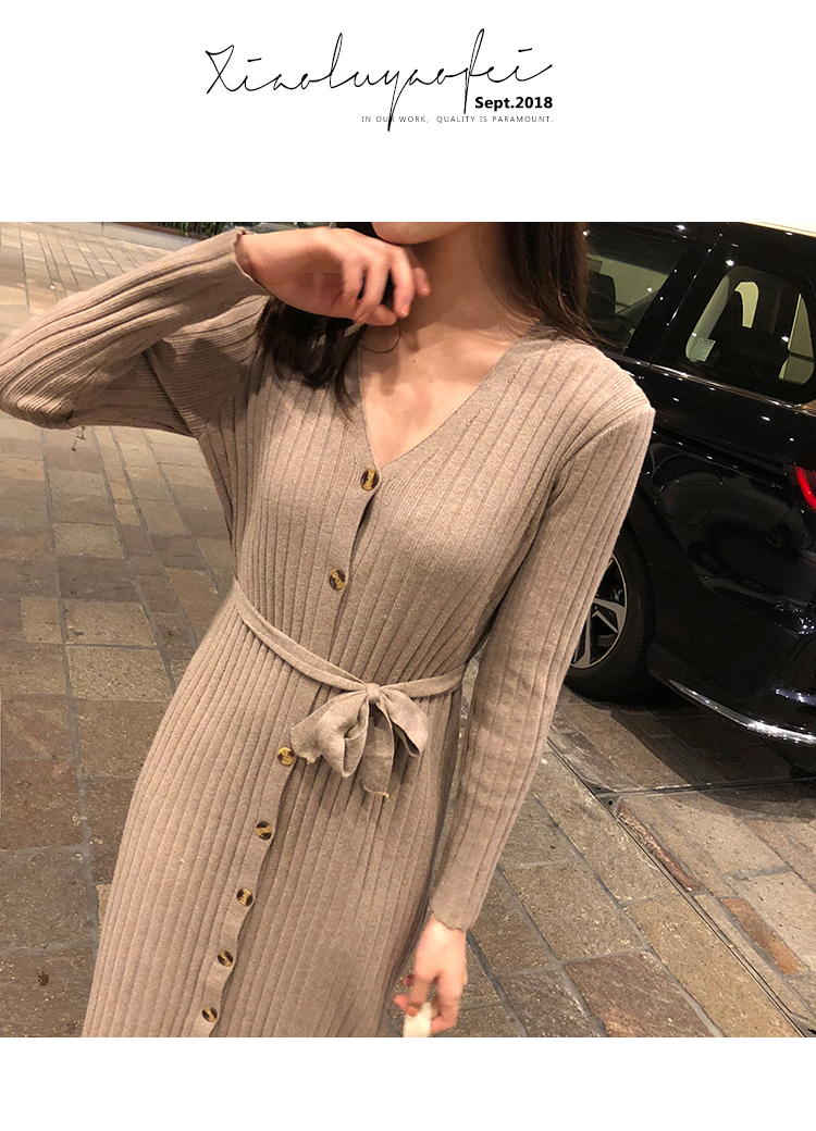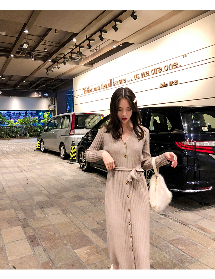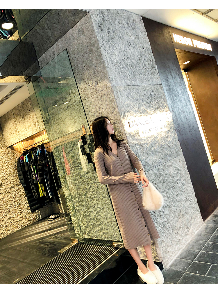 [2]秋冬女裝針織連衣裙中長款長袖裙子內搭毛衣裙打底長裙法式復古裙1入