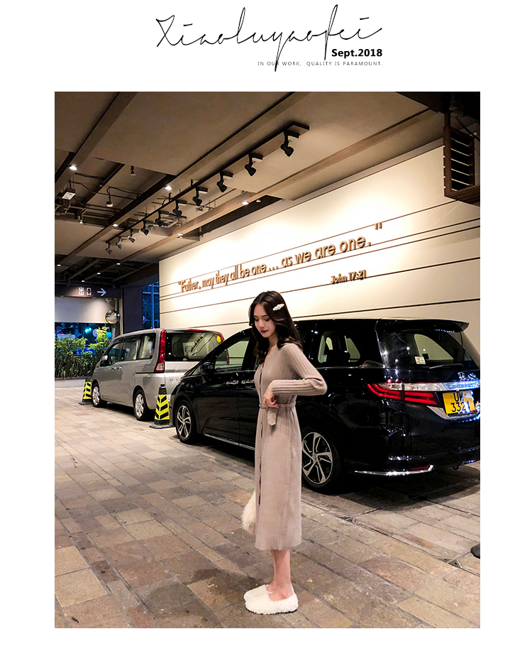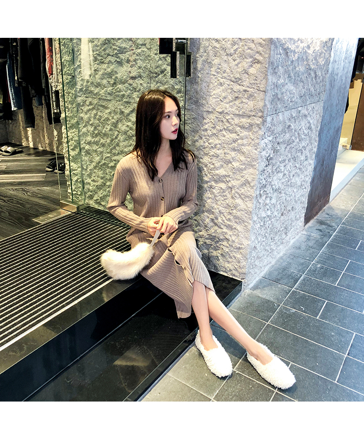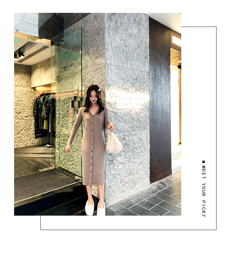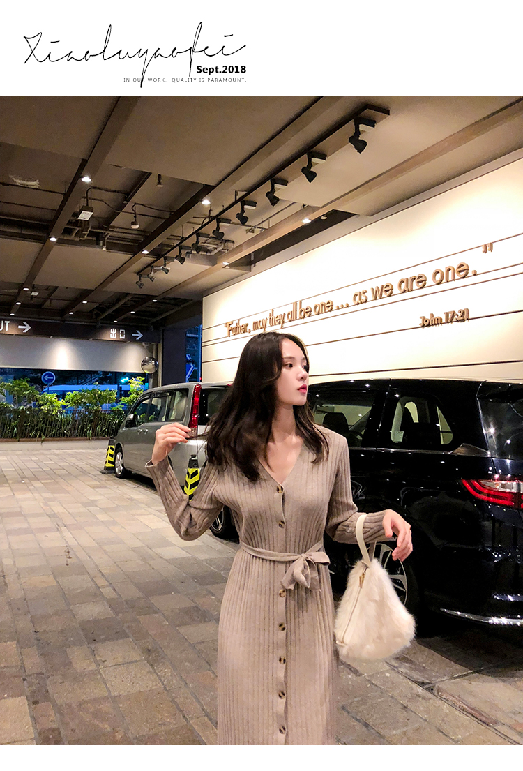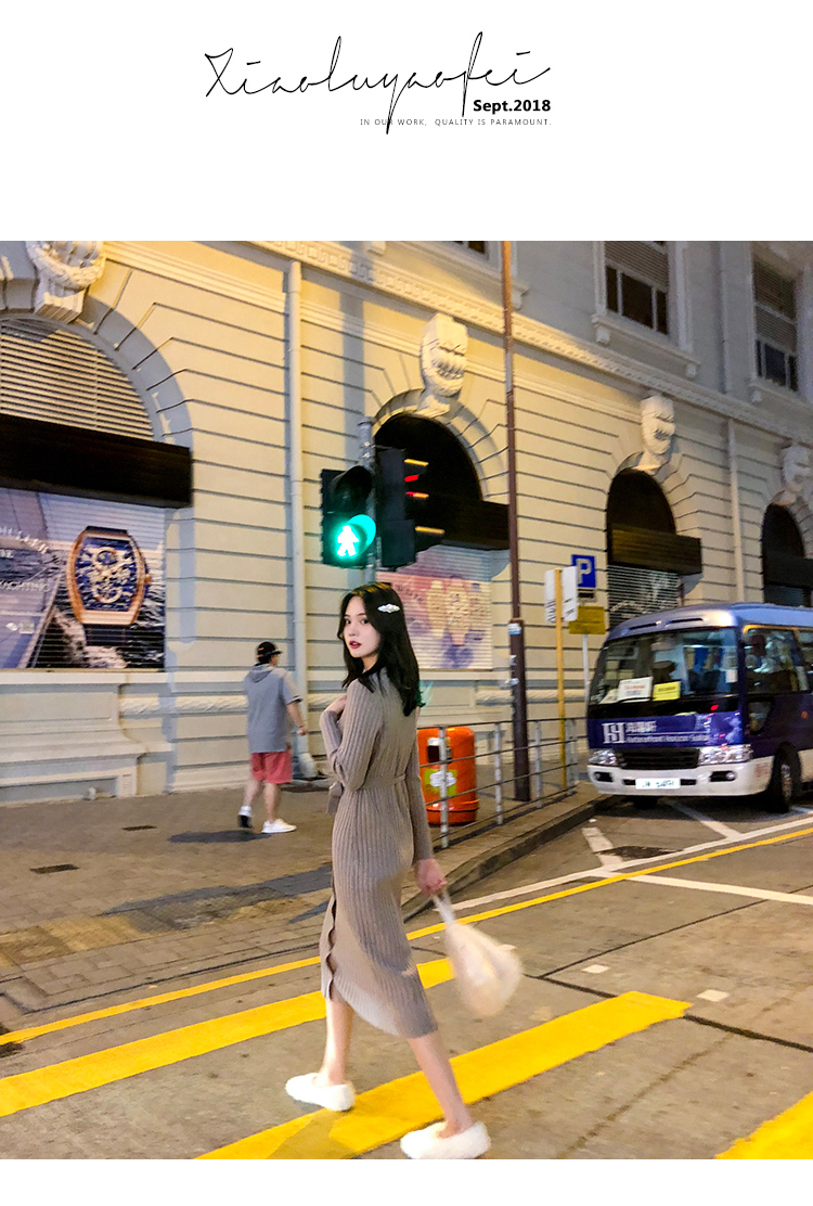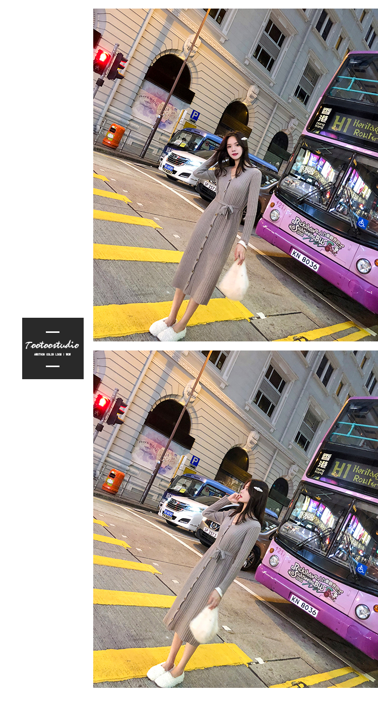 [2]秋冬女裝針織連衣裙中長款長袖裙子內搭毛衣裙打底長裙法式復古裙1入