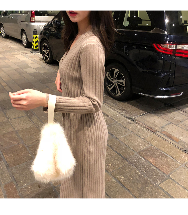 秋冬女裝針織連衣裙中長款長袖裙子內搭毛衣裙打底長裙法式復古裙1入
