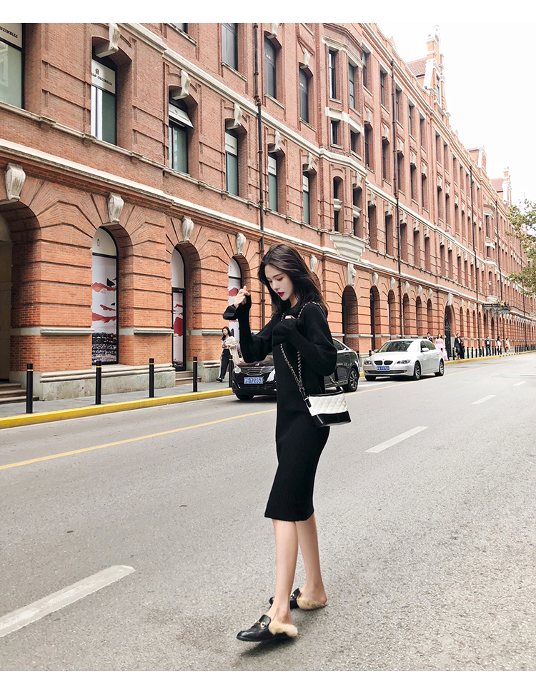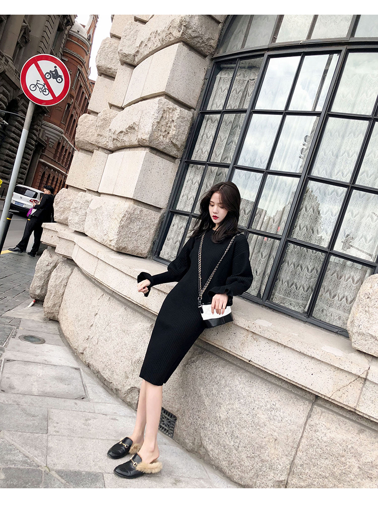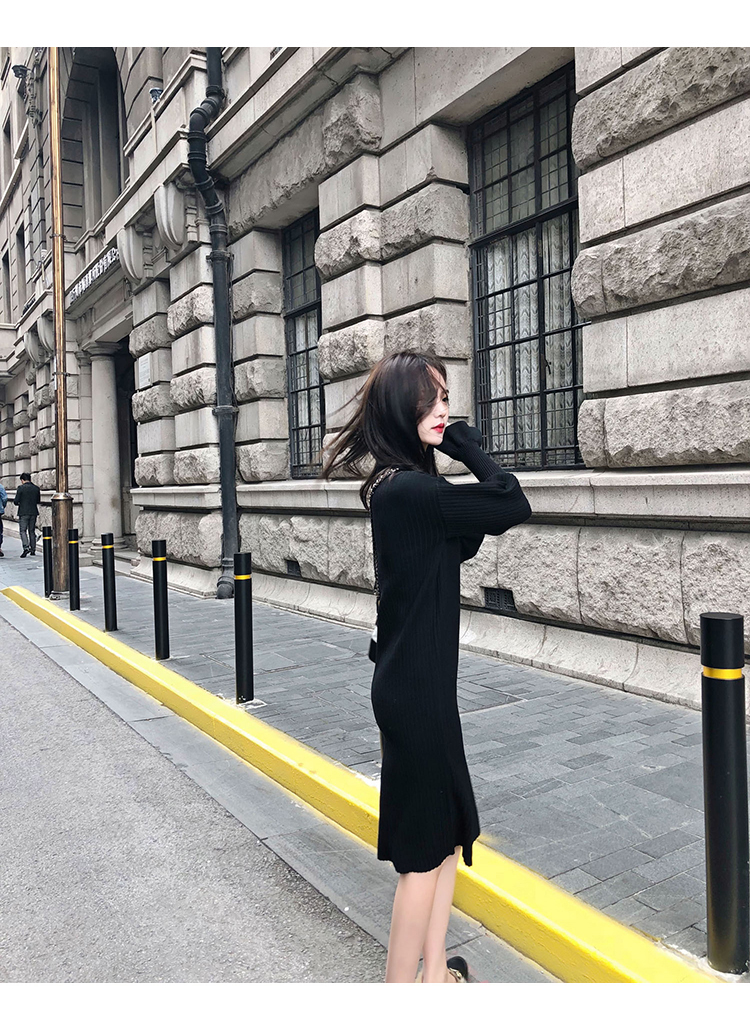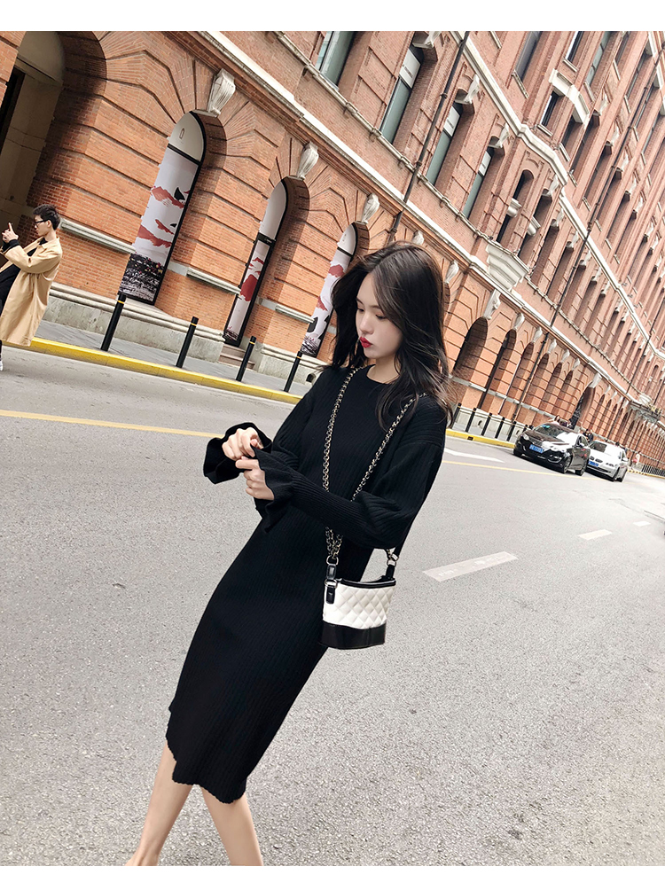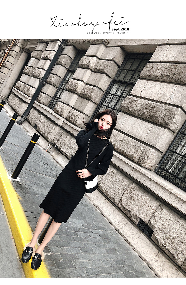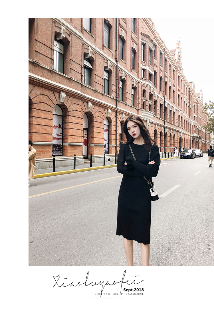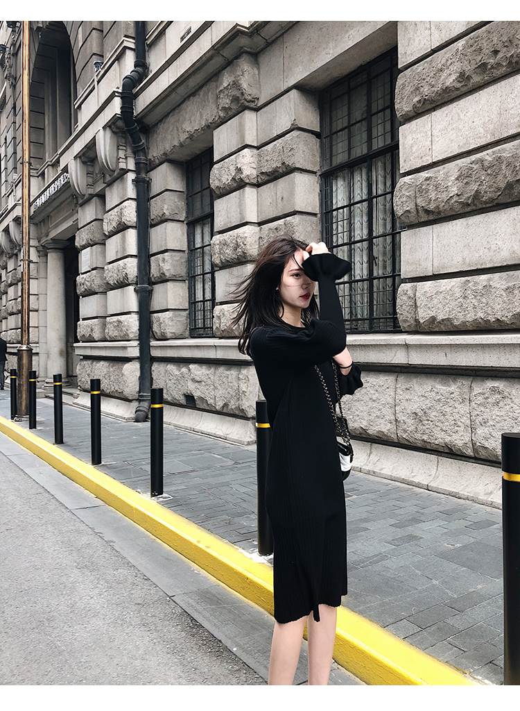 [2]秋裝2019新款桔梗裙復古法式少女裙子初戀法國小眾針織連衣裙秋冬1入
