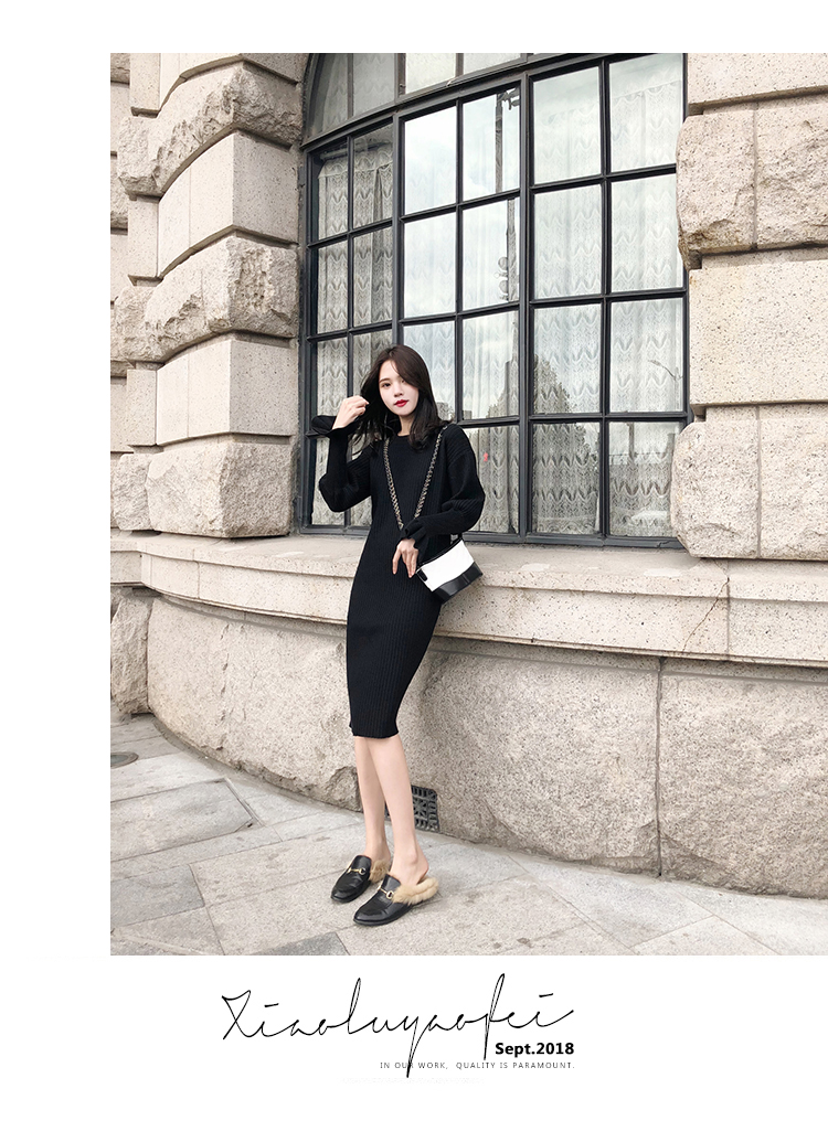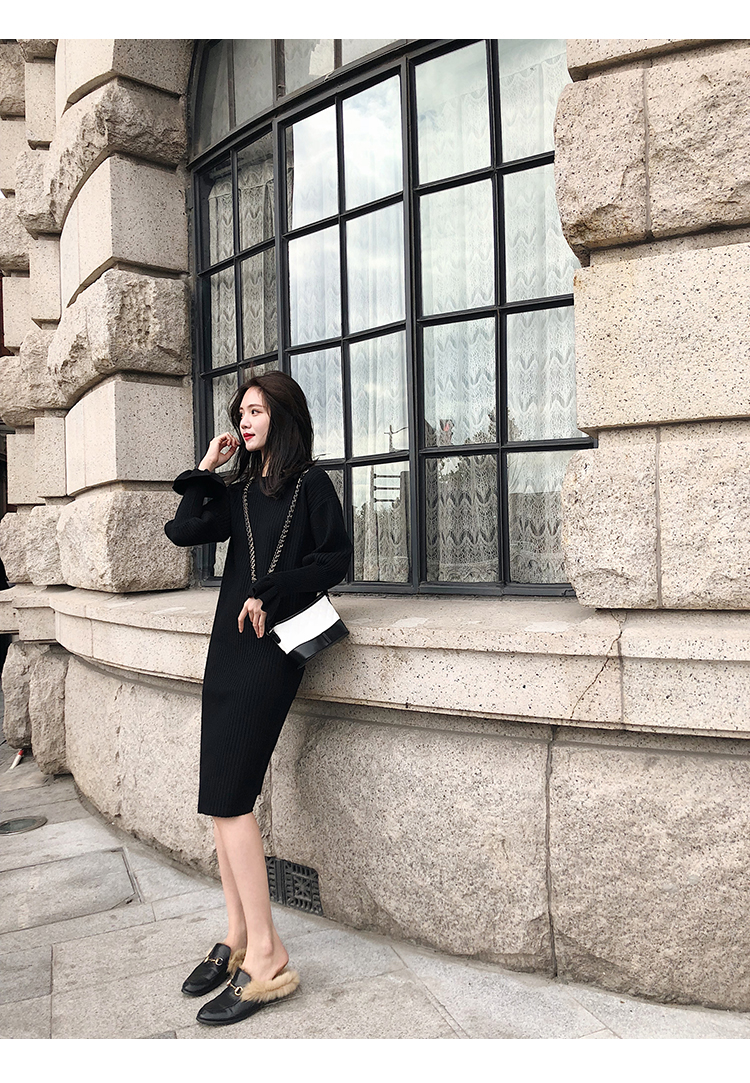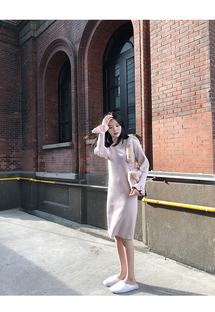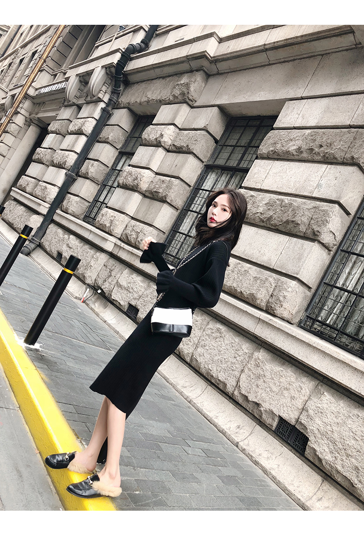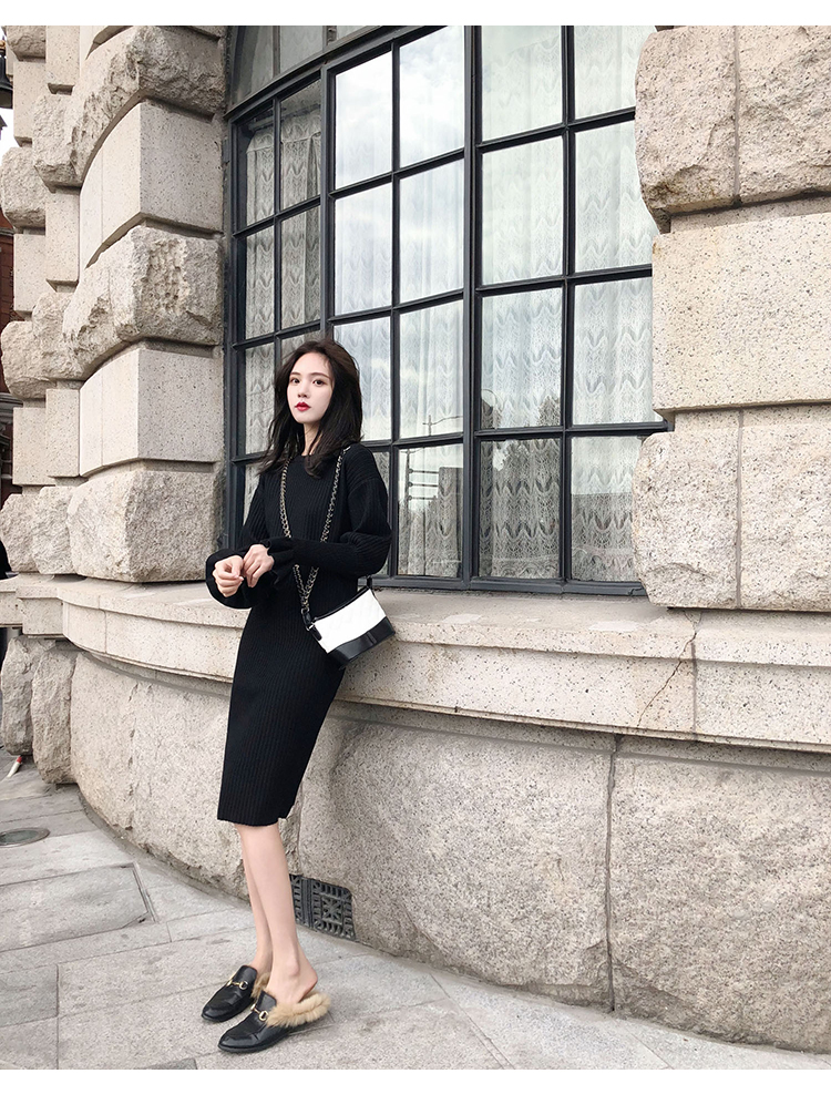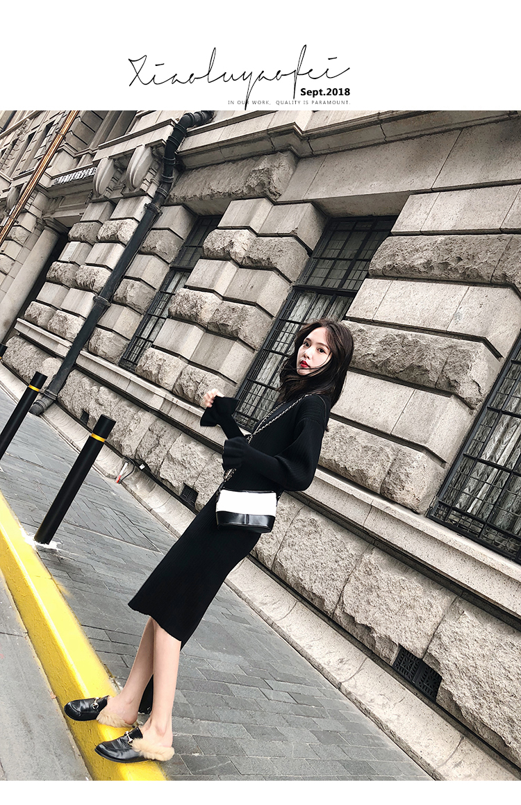 [2]秋裝2019新款桔梗裙復古法式少女裙子初戀法國小眾針織連衣裙秋冬1入