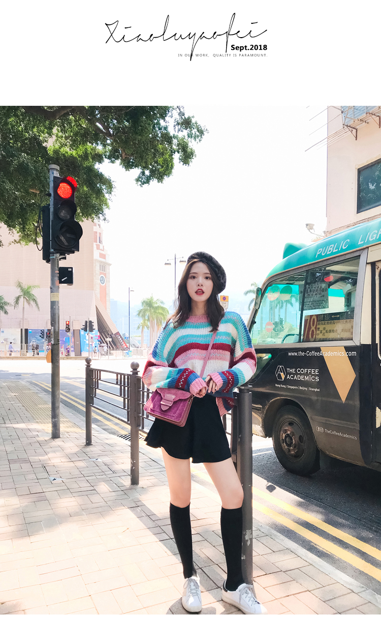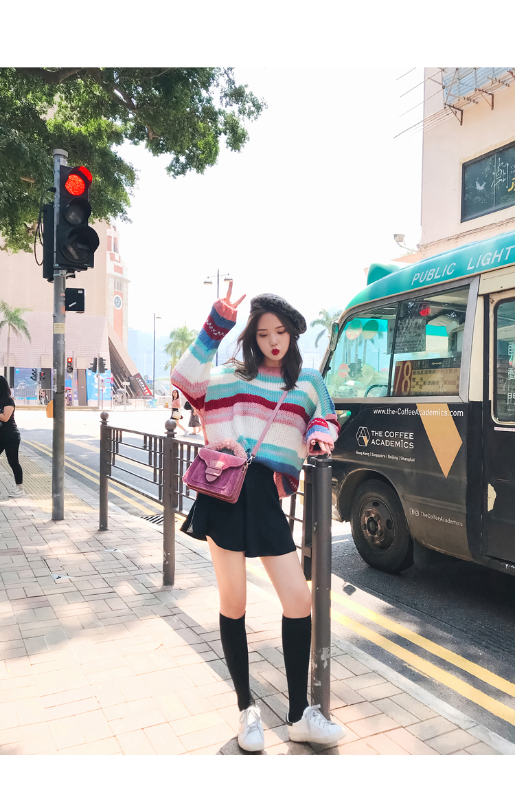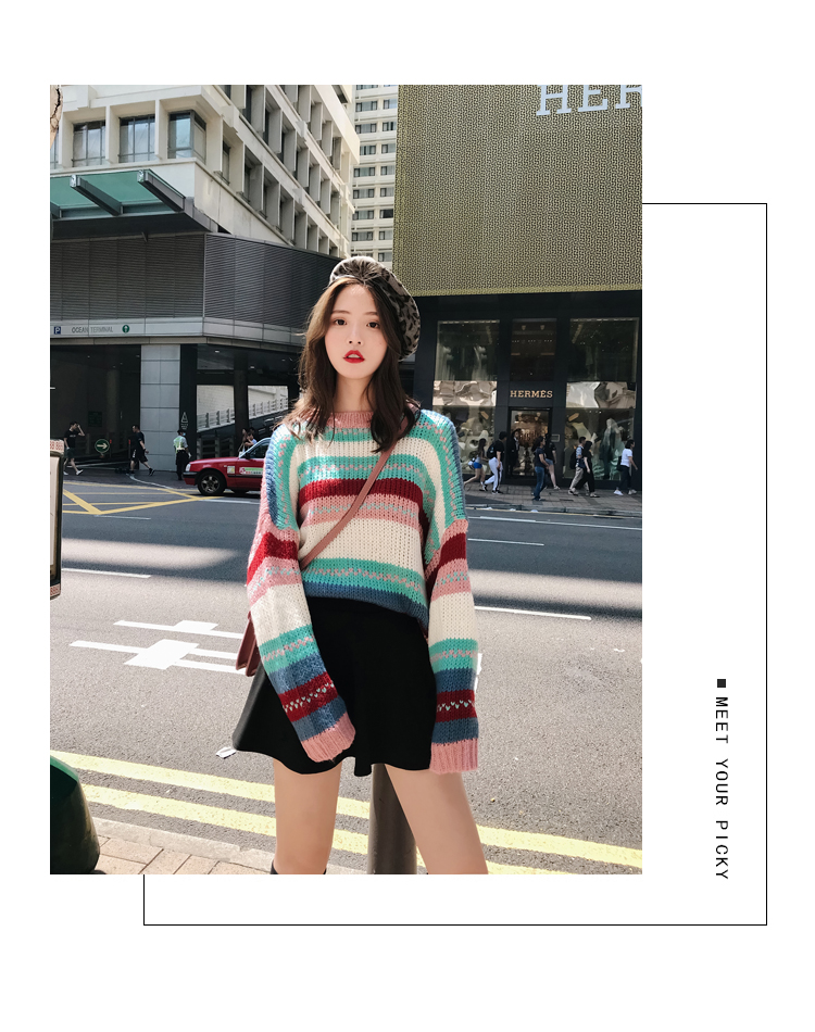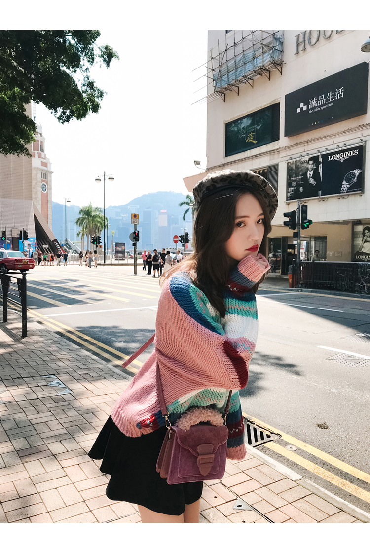 chic早秋慵懶風套頭外穿毛線衣女2019新款初秋溫柔風寬松針織上衣1入