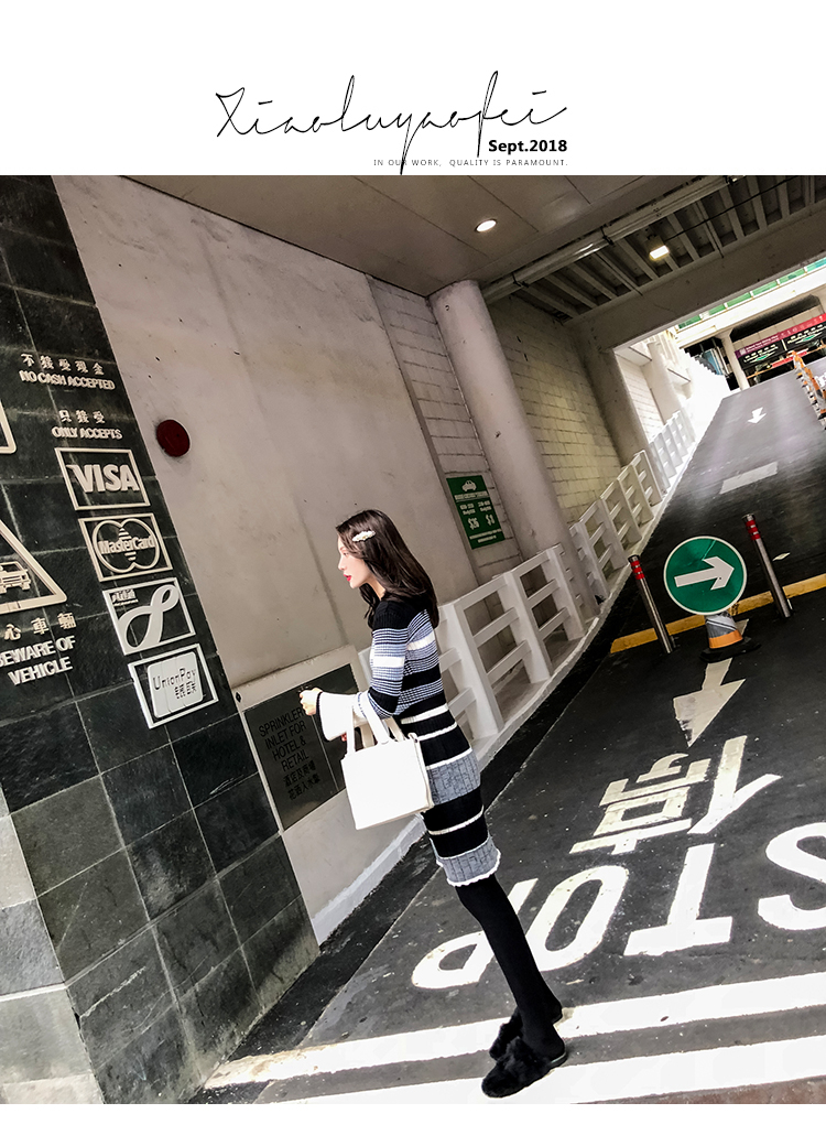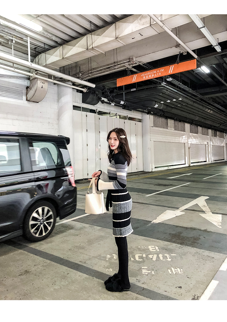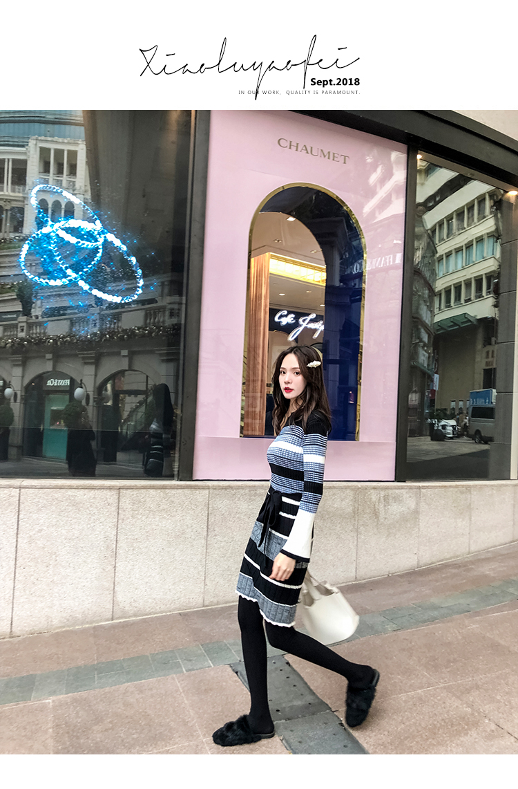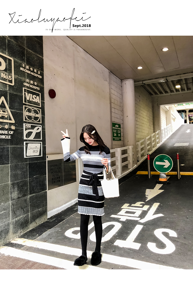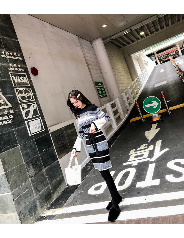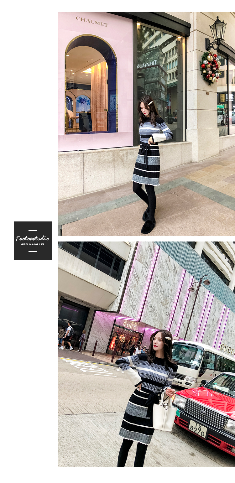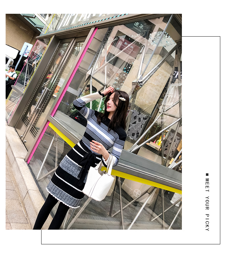 冬季連衣裙女新款韓版時尚秋冬針織毛衣內搭加厚打底裙女神范冬裙1入