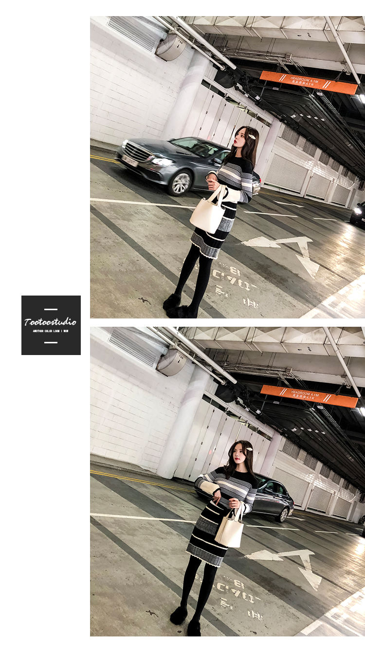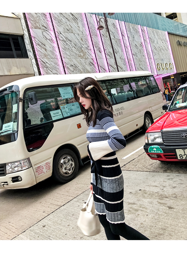 [2]冬季連衣裙女新款韓版時尚秋冬針織毛衣內搭加厚打底裙女神范冬裙1入