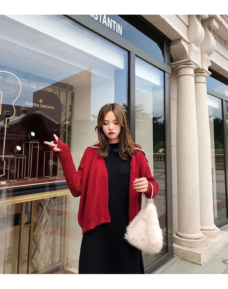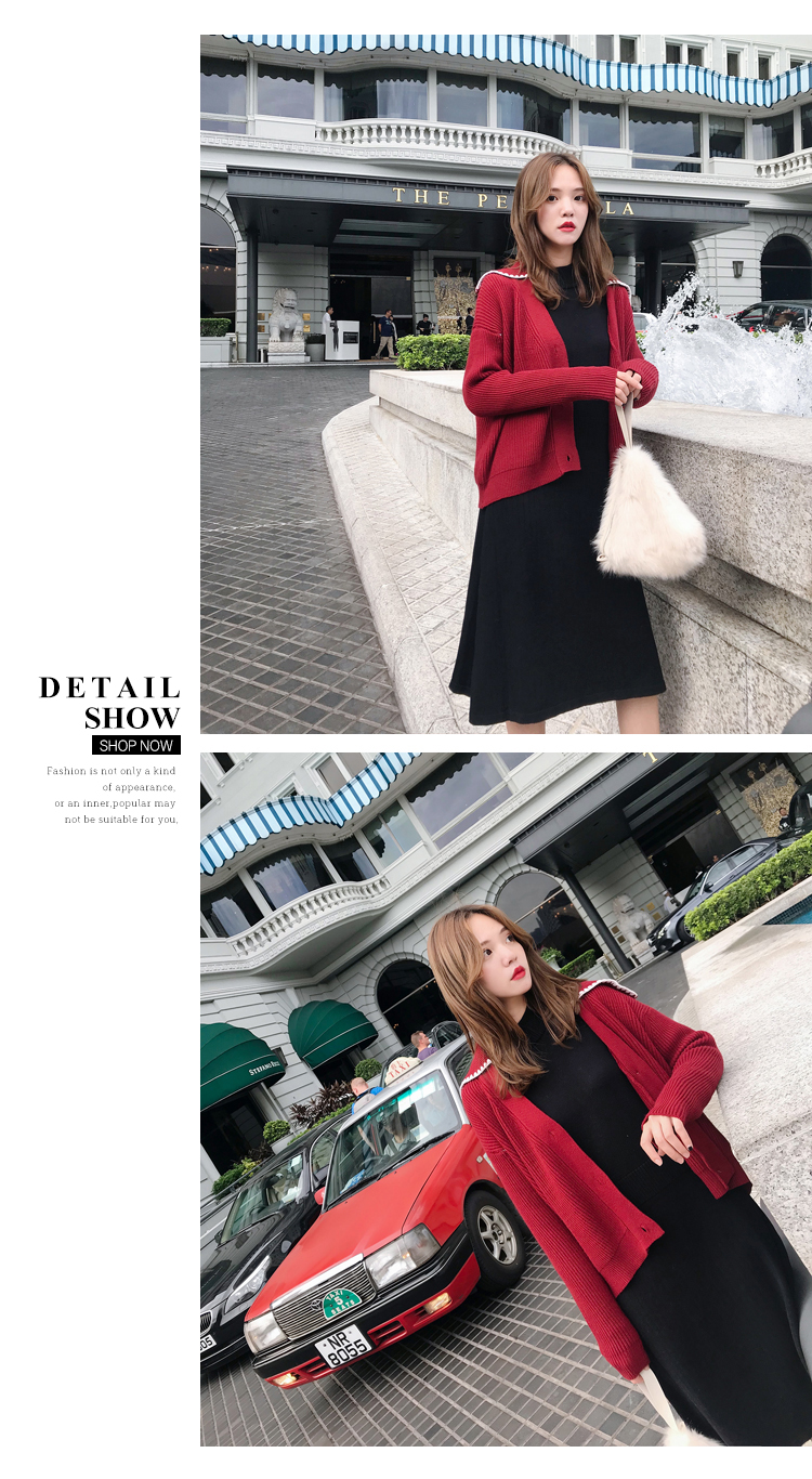 [2]冬裝2019新款網紅毛衣加連衣裙子針織女神氣質法式晚晚風兩件套裝1入