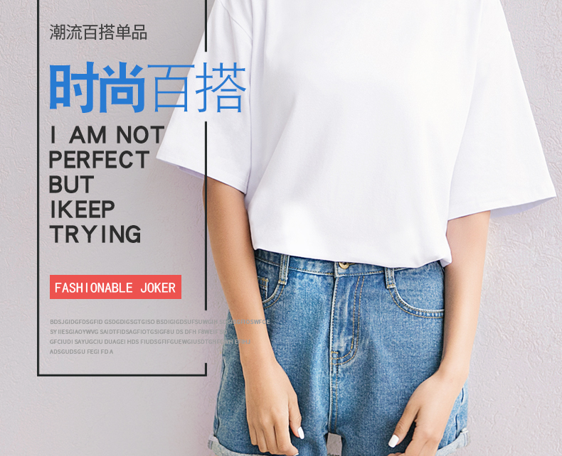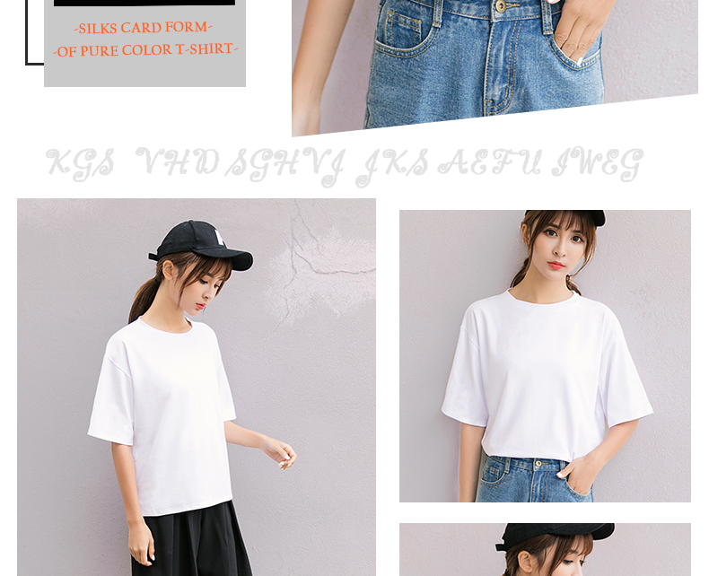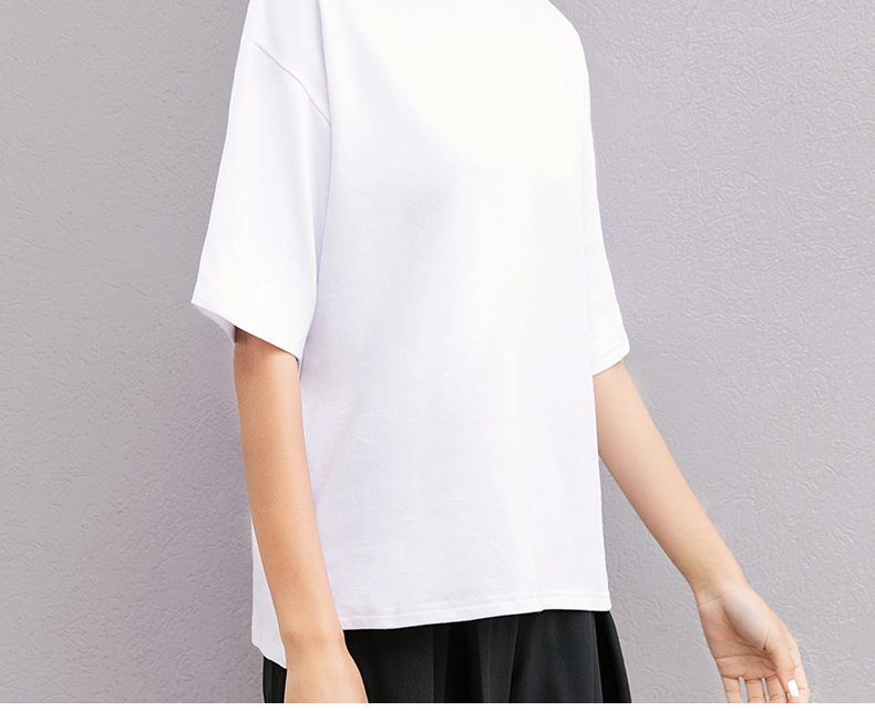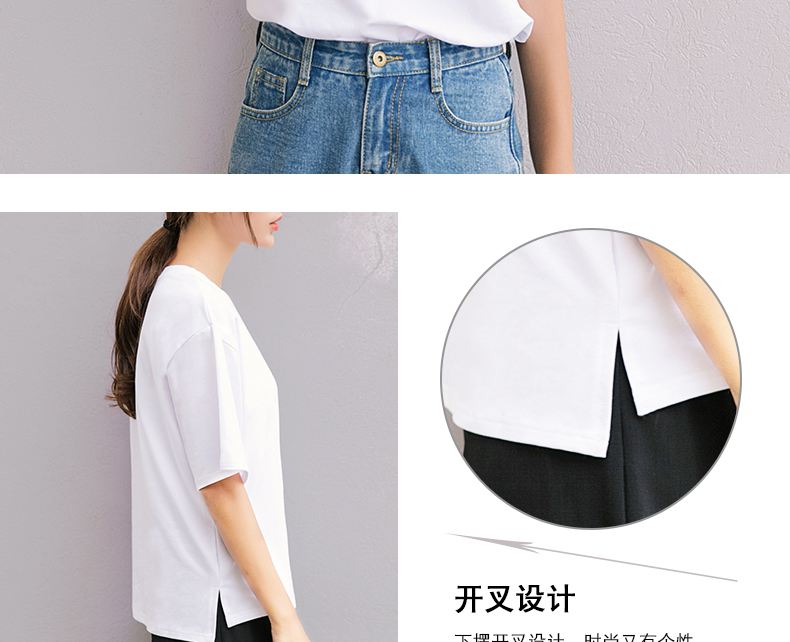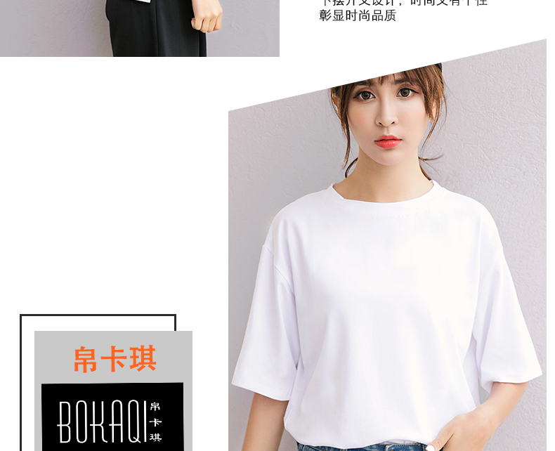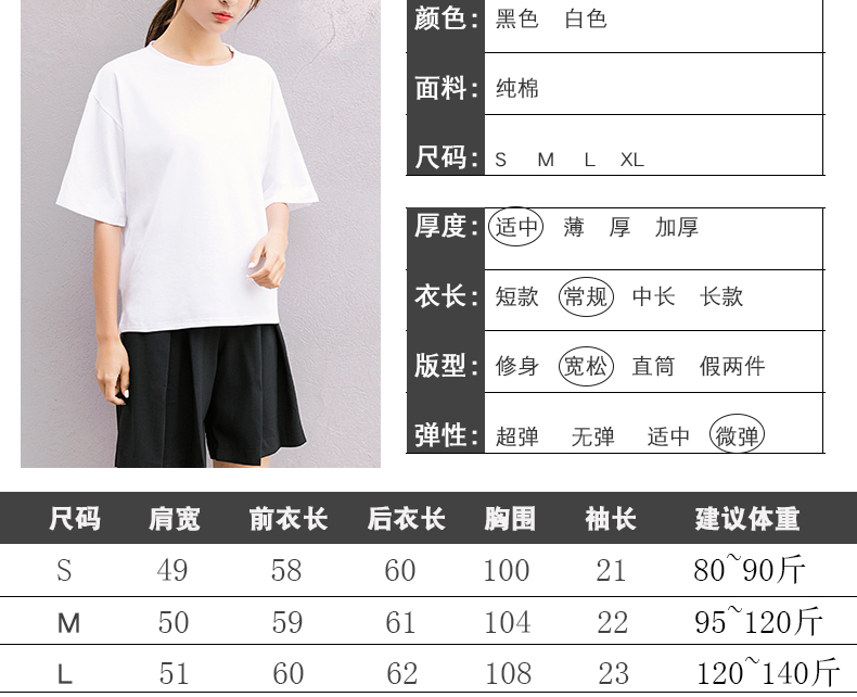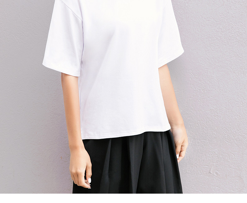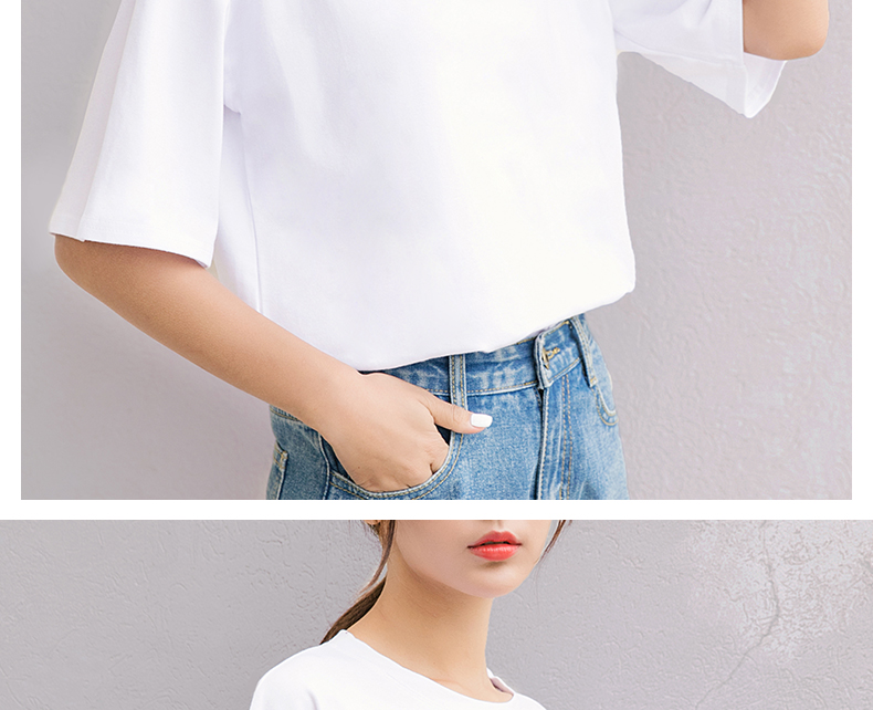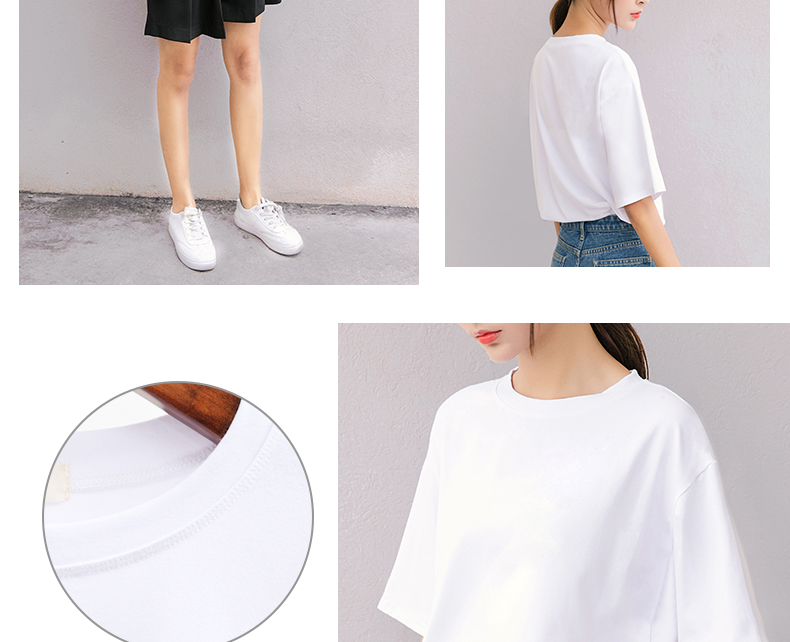 韓版女裝夏季寬松休閑半袖體恤純色上衣學生短袖百搭純棉白T恤潮1入