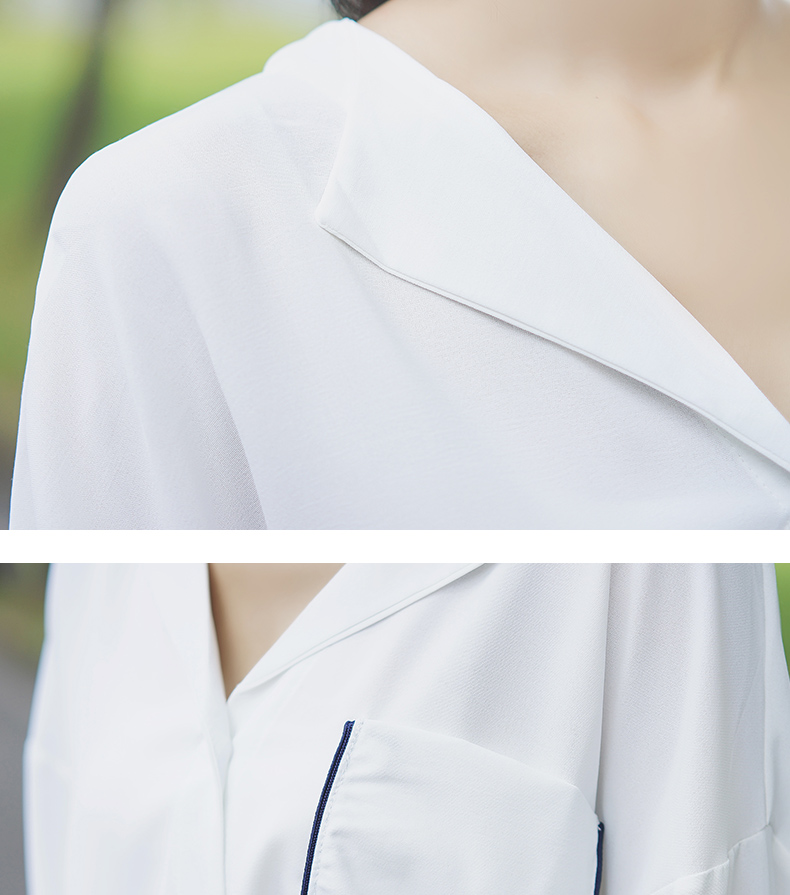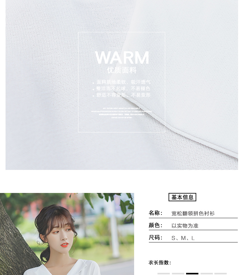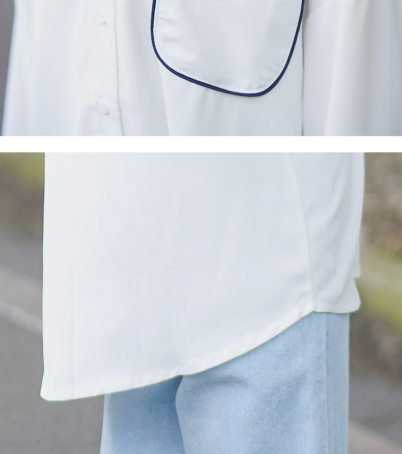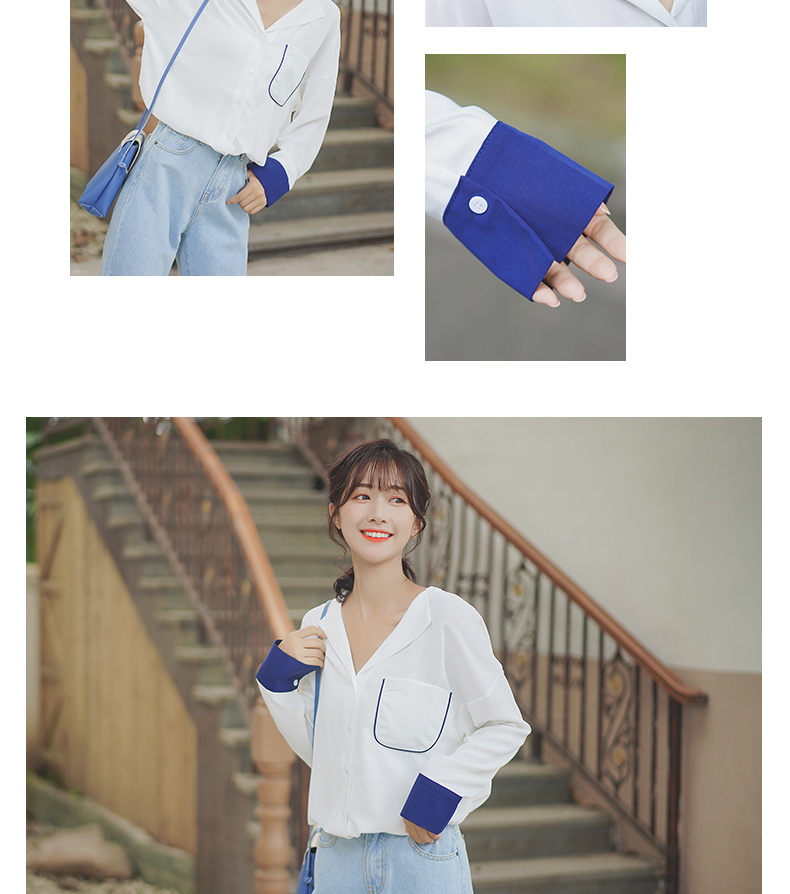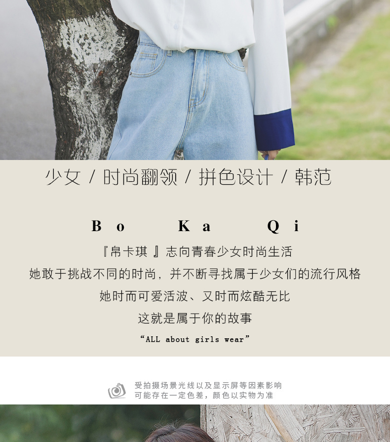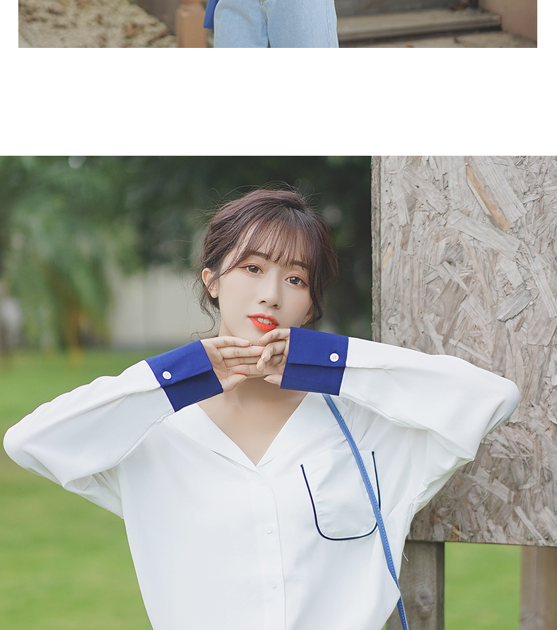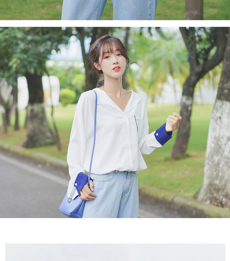 2019新款春秋韓范長袖上衣寬松百搭學生打底襯衣設計感拼色襯衫女1入